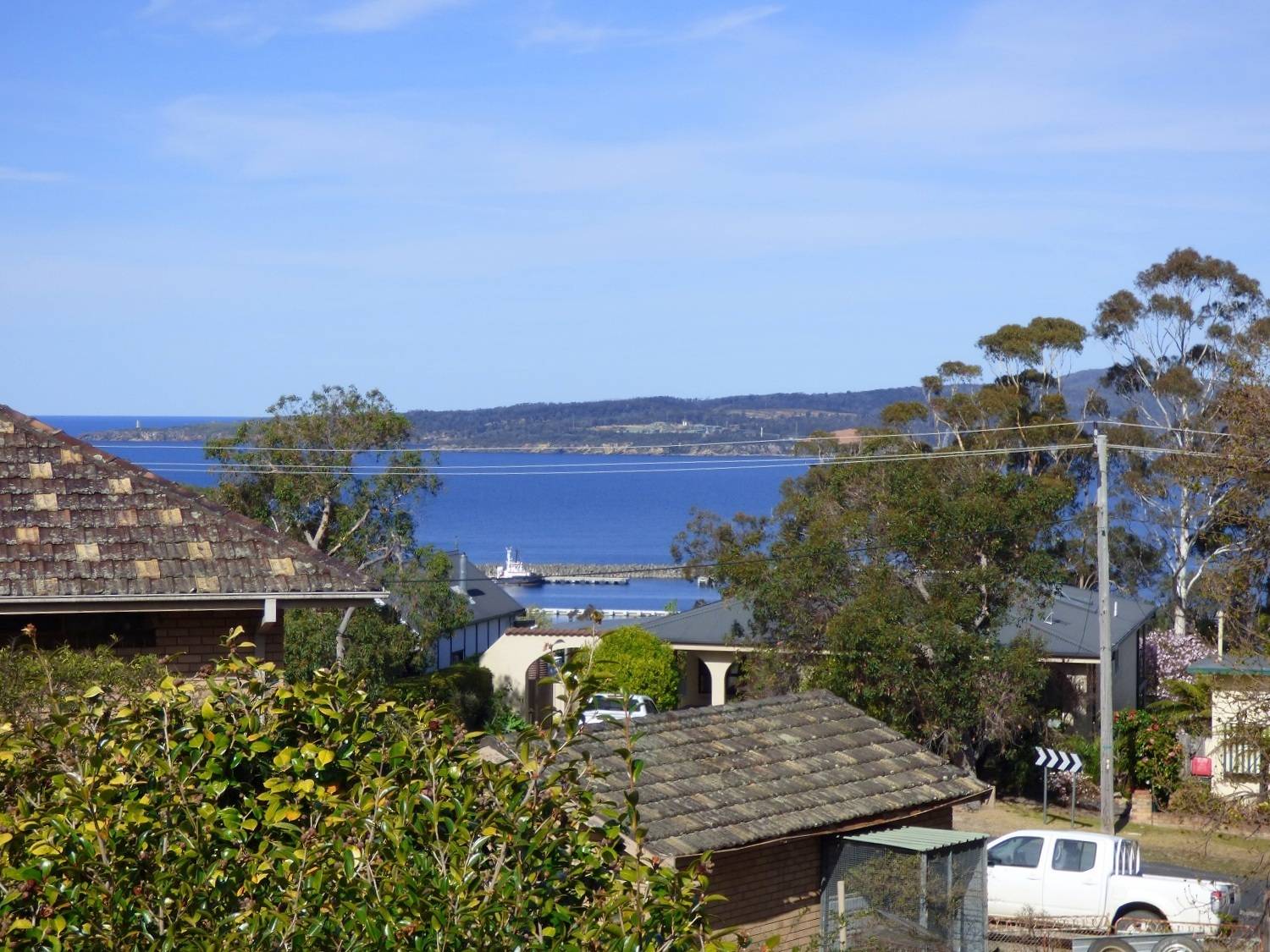 Elevated and perfectly positioned on a near level 820m2 allotment, sun-filled 4 bedroom residence uniquely boasting divine water views to both North Bay & open ocean and to the South, Snug Cove, Boyd's Tower and beyond to the great expanse of the South Pacific. Providing instant street appeal, the home is spacious and well maintained throughout and features main living/lounge out to an adjoining sun deck, family/dining (s/c heater) and adjacent kitchen complete with plenty of storage, breakfast bar and pantry flowing out to a rear, partially covered deck/bbq area perfect for watching the coming & goings of Eden’s famous fishing fleet and cruise ships. Large master bedroom BIRs (brs 1 & 3), great views from br 2 and modern bathroom inc spa bath, shower, vanity & wc. Downstairs to externally accessed 4th br/utility, laundry/bathroom facilities and triple 3 roller door garage/workshop area. Excellent, fully established surrounds including garden/store, wood shed, veggie patch etc. In a heart beat.