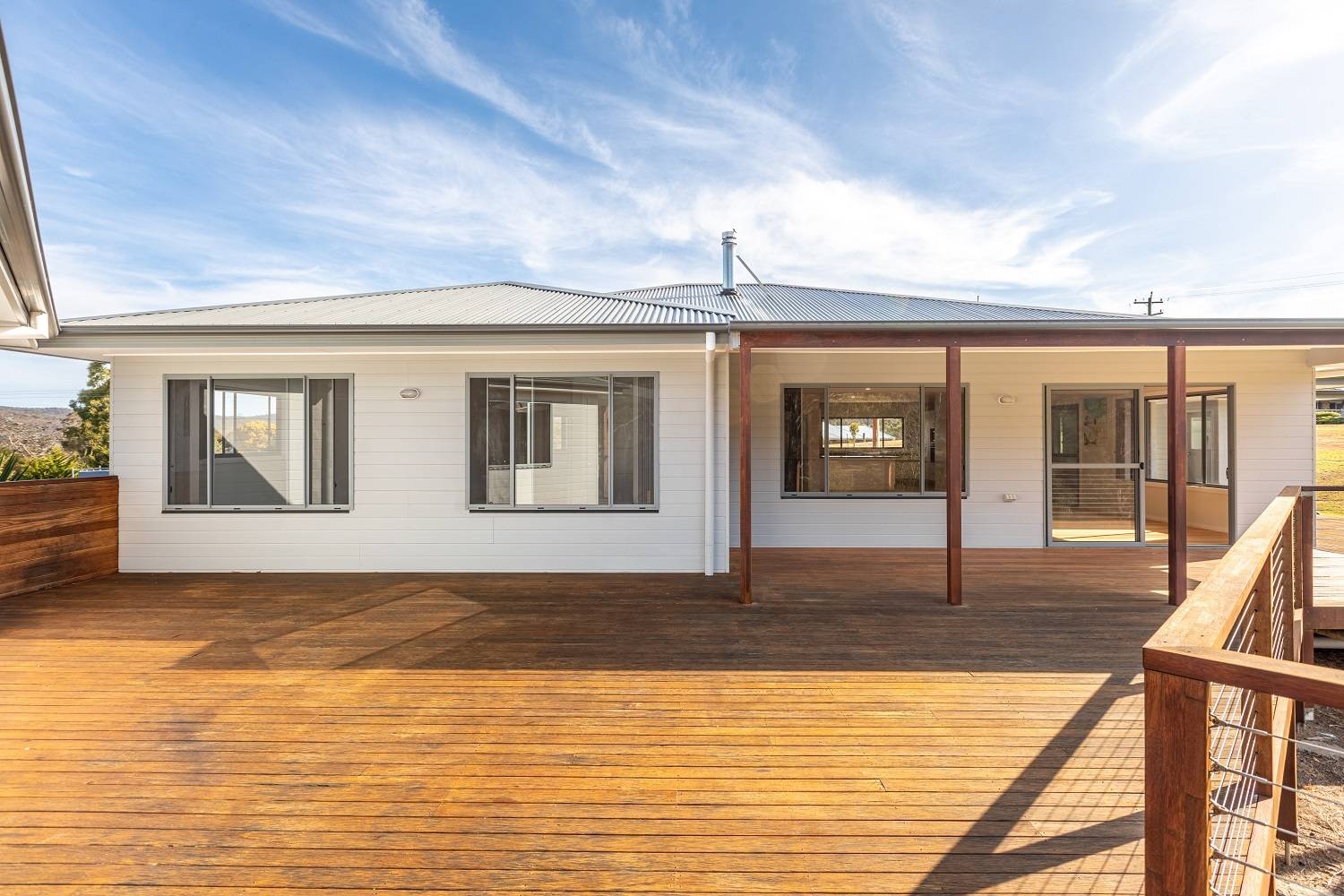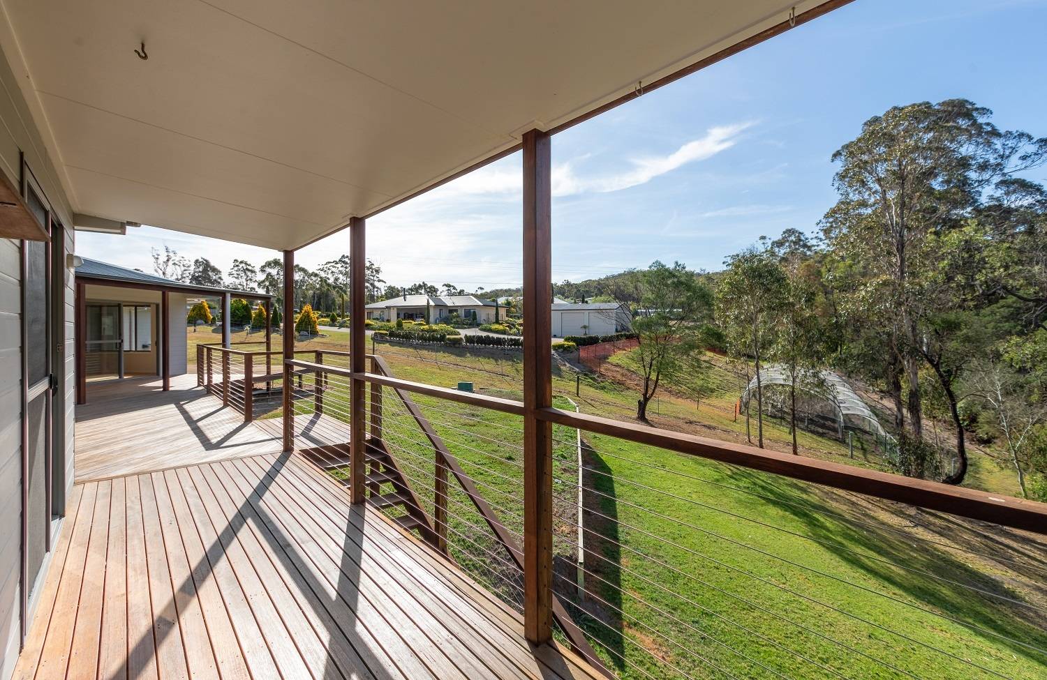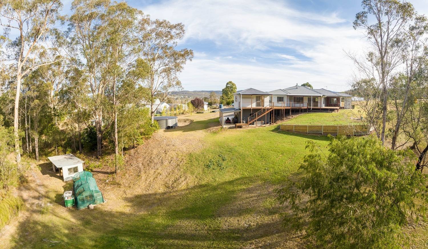 One and a half gorgeous acres, mainly cleared, with a good stand of mature eucalypts to the rear and even a small section of creek flat, complete with an outstanding 4 bedroom residence plus free-standing self contained studio/guest accommodation, sublimely positioned just touching distance (1 min drive) from vibrant Pambula village and just 4 min to the beach. Sound amazing? Read on – builders own home perfectly sited to maximize the unique allotment, cavernous open living and dining area (s/c heating & split system), gorgeous hardwood floors effortlessly flowing out to extensive decking including 2 private covered alfresco areas. Sleek fully equipped kitchen, master bedroom inc ensuite (shower, vanity& wc) & WIR, generous in size brs 2,3 & 4 each with BIRs, TV room/utility, large home office with external access, main bathroom inc shower, bath, vanity plus sep wc, laundry and adjacent 4th wc. Linked by decking from the residence is a magic self contained studio/apartment perfect for family or friends which literally floats in the tree tops. Additionally, this cracking property provides a double under roof direct house access carport, double l/u garage plus adjoining skillion perfect for boat/caravan etc, even a farm/wood shed with a rear access track. Totally on Toallo – Available for immediate inspections.