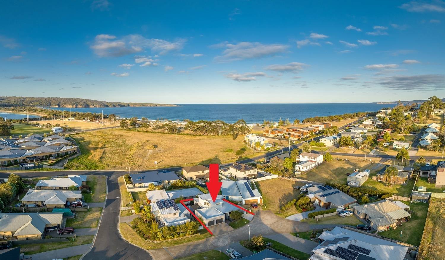 A modern classic, plenty of street appeal, tucked away in a quiet cul de sac just a long cast from the gentle break and the powder white sands of award winning Aslings Beach, Curalo estuary boardwalk, and coastal parkland (300m). Quality 3 bedroom freehold designer home which cleverly maximises light and space. Generous open living & dining area with a striking Corian bench topped kitchen at centre stage, the whole space seamlessly flows out to a huge decked courtyard area to enjoy life. Master suite with slider out to a private paved courtyard for chill time, excellent ensuite/2 way bathroom, (WIR) and oversized double, easy access lock up garage making the whole downstairs area perfect for effortless living. Upstairs to 2 additional bedrooms, BIRs (water snapshots) and main bathroom (shower, vanity, bath & wc). With the emphasis on low maintenance, the surrounds are fully established & fenced including a paved area perfect for boat/caravan etc. Quality is timeless – Inspections are a must!