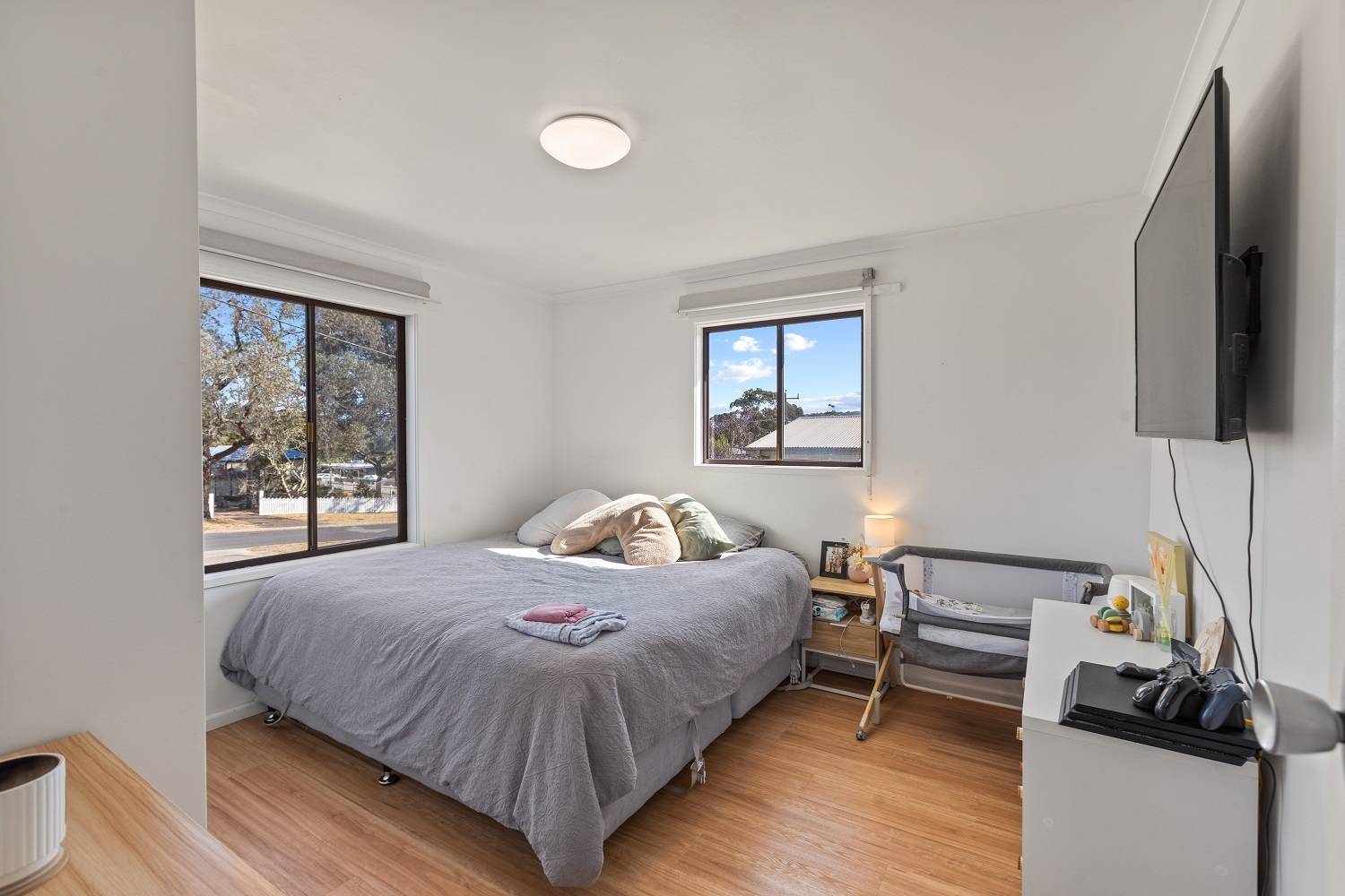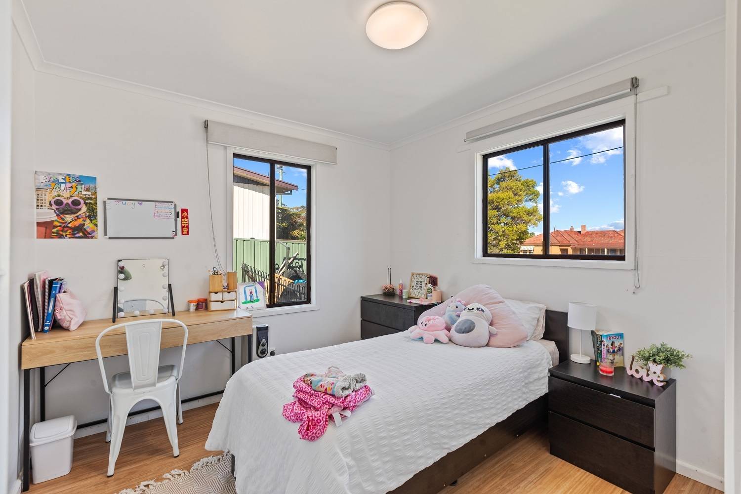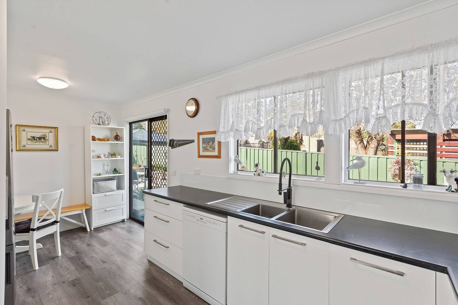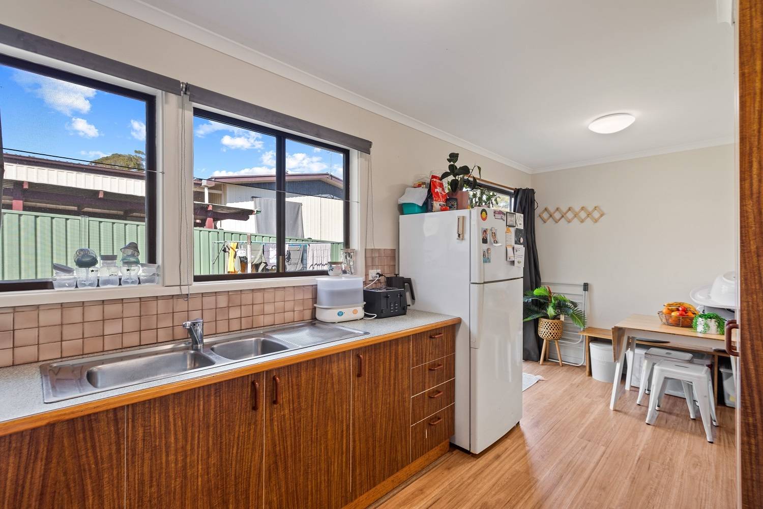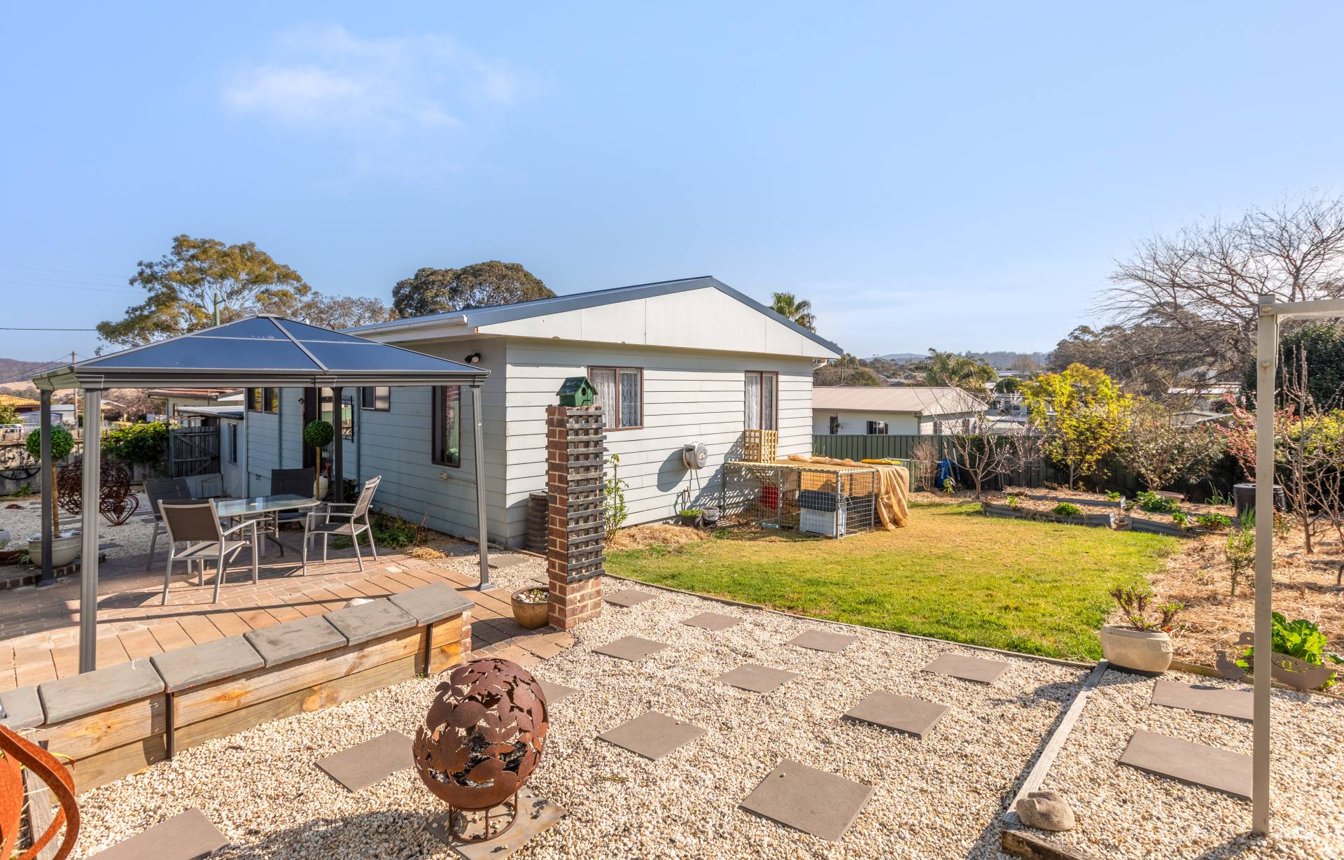 Right in the heart of Pambula, large (984m2) elevated block, big wide street, lane to the rear and not one but 2 dwellings, each with 2 bedrooms (BIRs), generous living (split system) out to front under roof patio, kitchen, adjacent dining out to private yards, practical bathroom  and under cover parking with laundry/store. Wait, there’s more! Unit 2 has been completely renovated internally to as new condition, with huge private yard including paved gazebo/courtyard area, raised veggie gardens, fruit trees and l/u garden/store shed. Unit 1 is spic and span throughout and currently tenanted (good returns), private yard and plenty of off street parking. Owner occupier, investor, downsizer or astute purchaser – the choice is clear.
