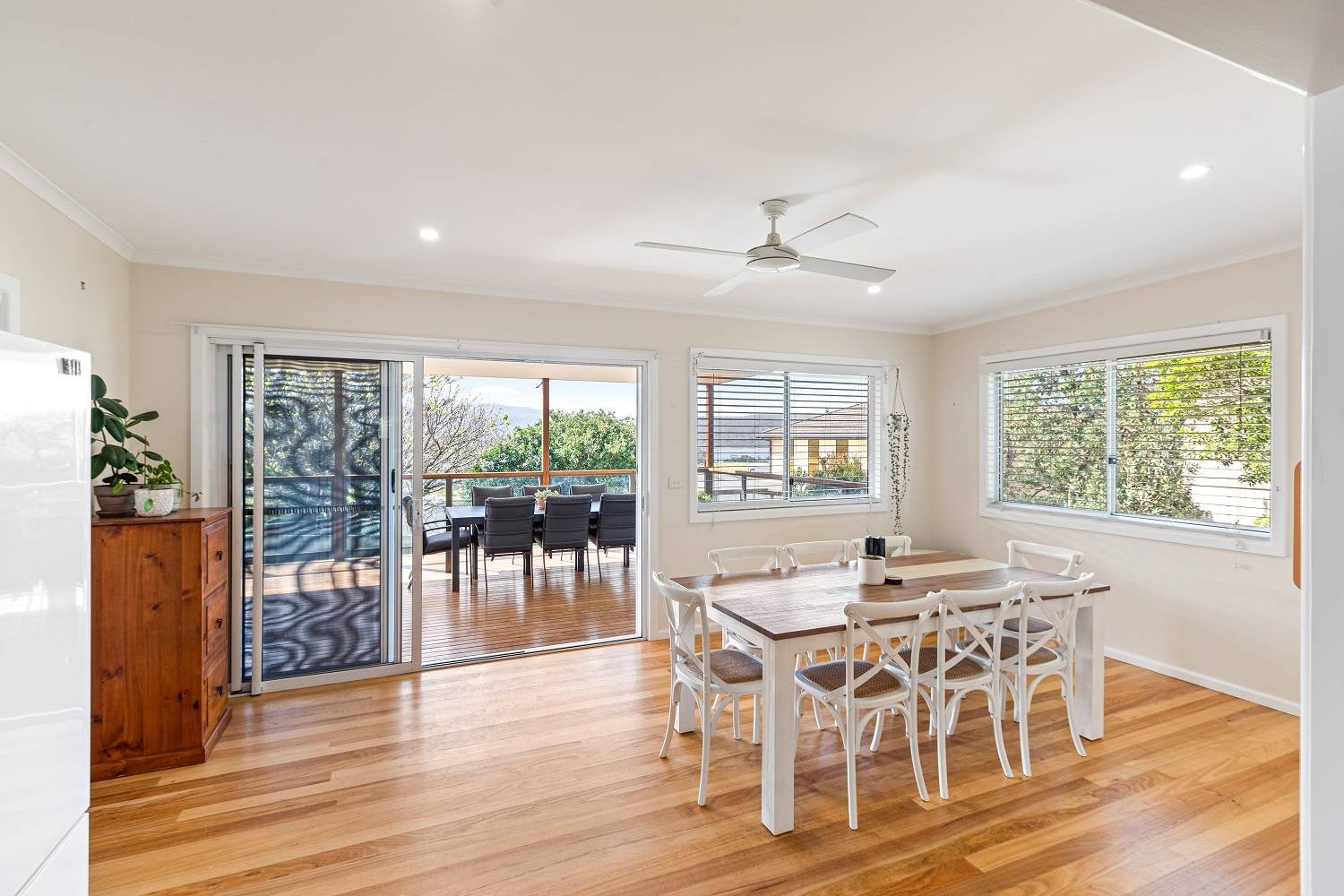 Be captivated by the seductive murmur of breaking waves (50m) from this sublimely positioned 3 bedroom residence just metres (20m) from coastal parkland, walking/cycle path meandering down (200m) to the iridescent blue and soft white sands of Aslings Beach yet only 2 blocks from Eden's vibrant main street. Boasting space and modern amenity throughout the home features classic hardwood floors and 9ft ceilings and comprises generous main living room (s/c & split system) with easy living soft close kitchen to enjoy, the whole space effortlessly flows through to a light saturated family/dining room then out to a huge covered deck/alfresco living area to revel in the sweet salt air, northern views of Lake Curalo + leafy snap shots of the bay. Generous bedrooms each with BIR’s designer bathroom (freestanding bath, shower, vanity + wc) fully integrated laundry plus 2nd wc. Complete with established surrounds including garage/workshop adjacent carport both easily accessed from the convenient service lane. Perfectly yours.