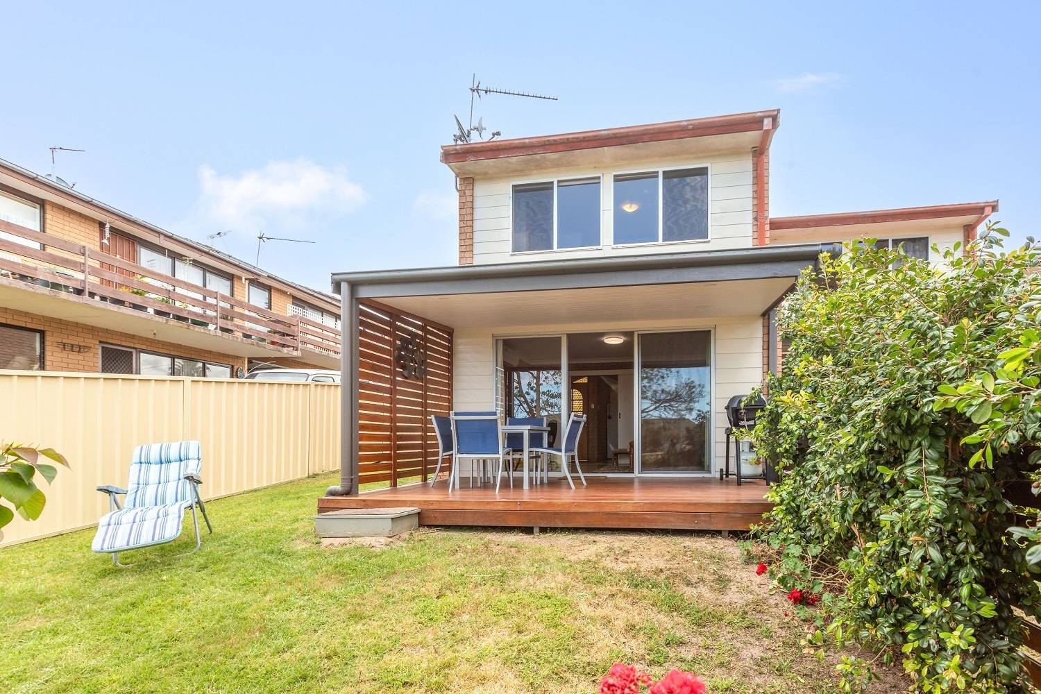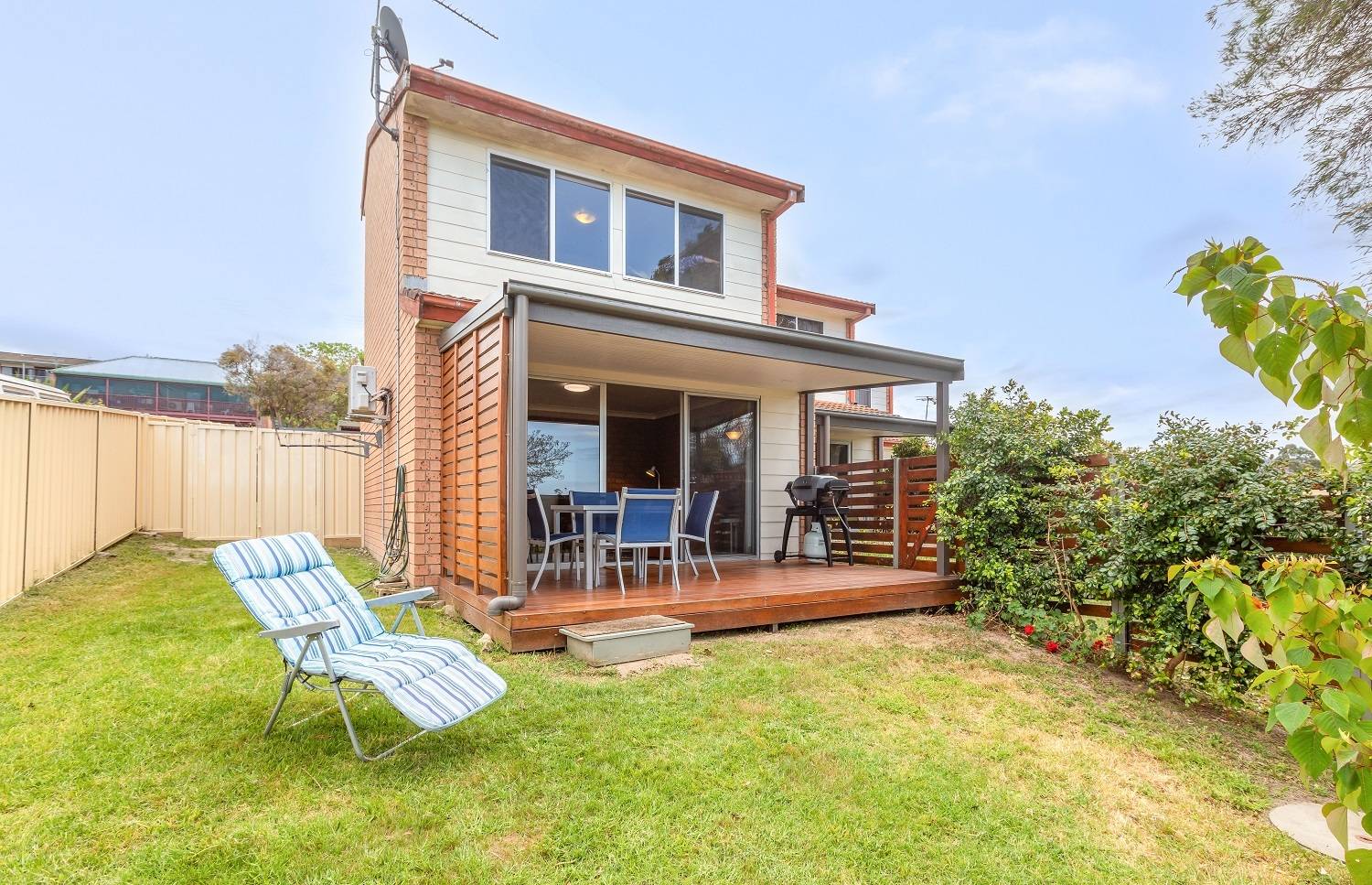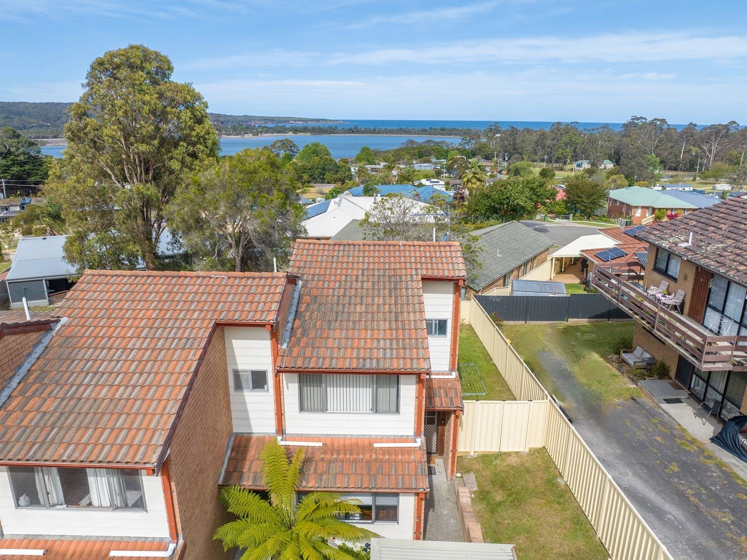 Looking for an affordable 2 bedroom solid brick unit, with its own fenced yard and water views to knock your socks off, better still, how about a townhouse in a small boutique 3 unit complex, modern kitchen (timber bench tops) and adjacent dining, tiled living (split system) out to a divine covered deck to soak up the sun's rays, sparkling fully tiled bathroom, good sized bedrooms both with BIR’s, gorgeous hardwood floors - and shimmering lake, bay and ocean views - complete with sep laundry/storage and private carport. Red hot and ready to go.