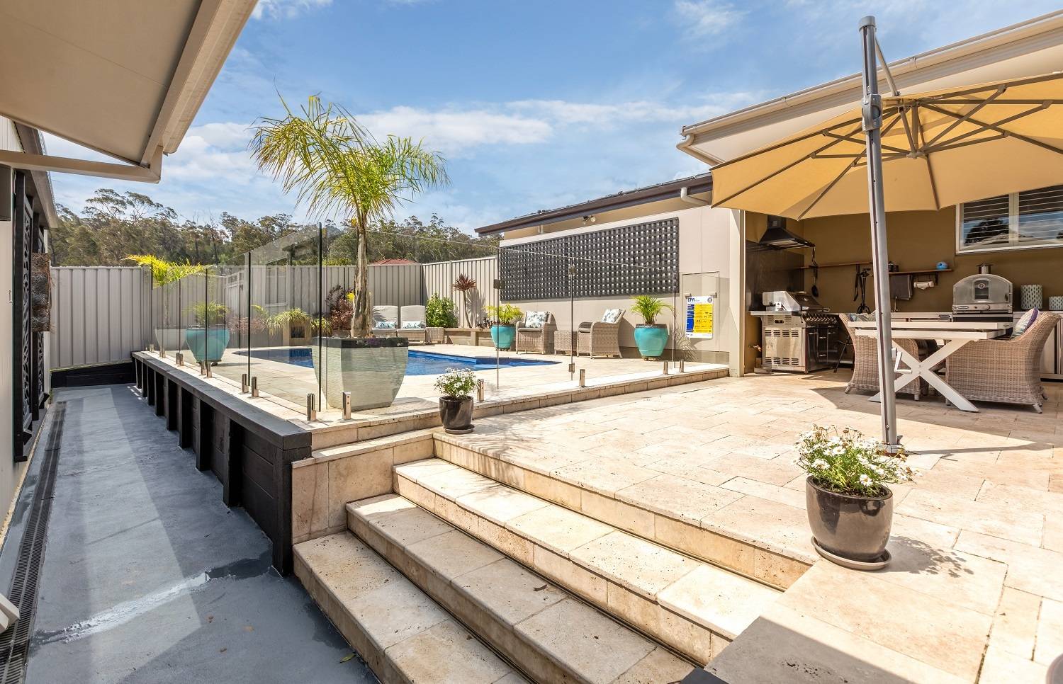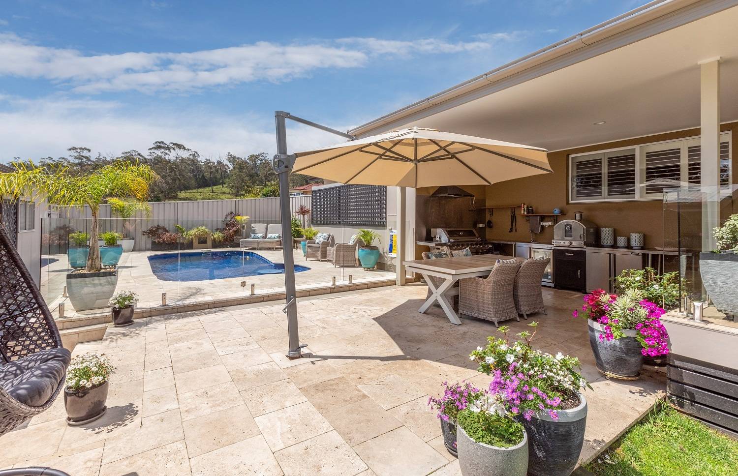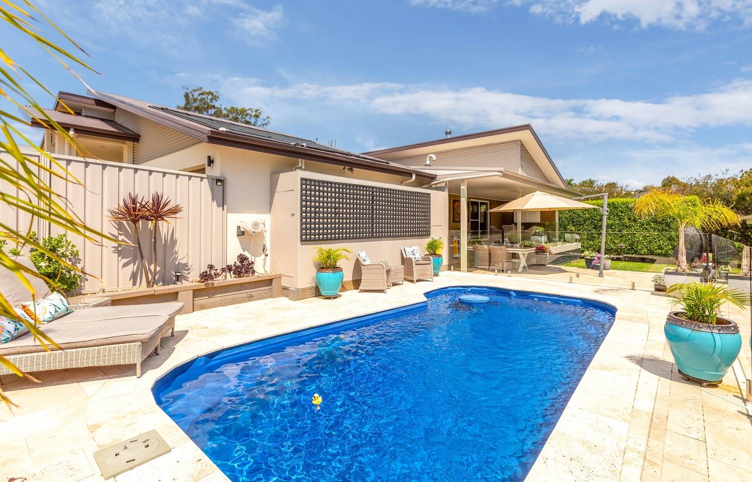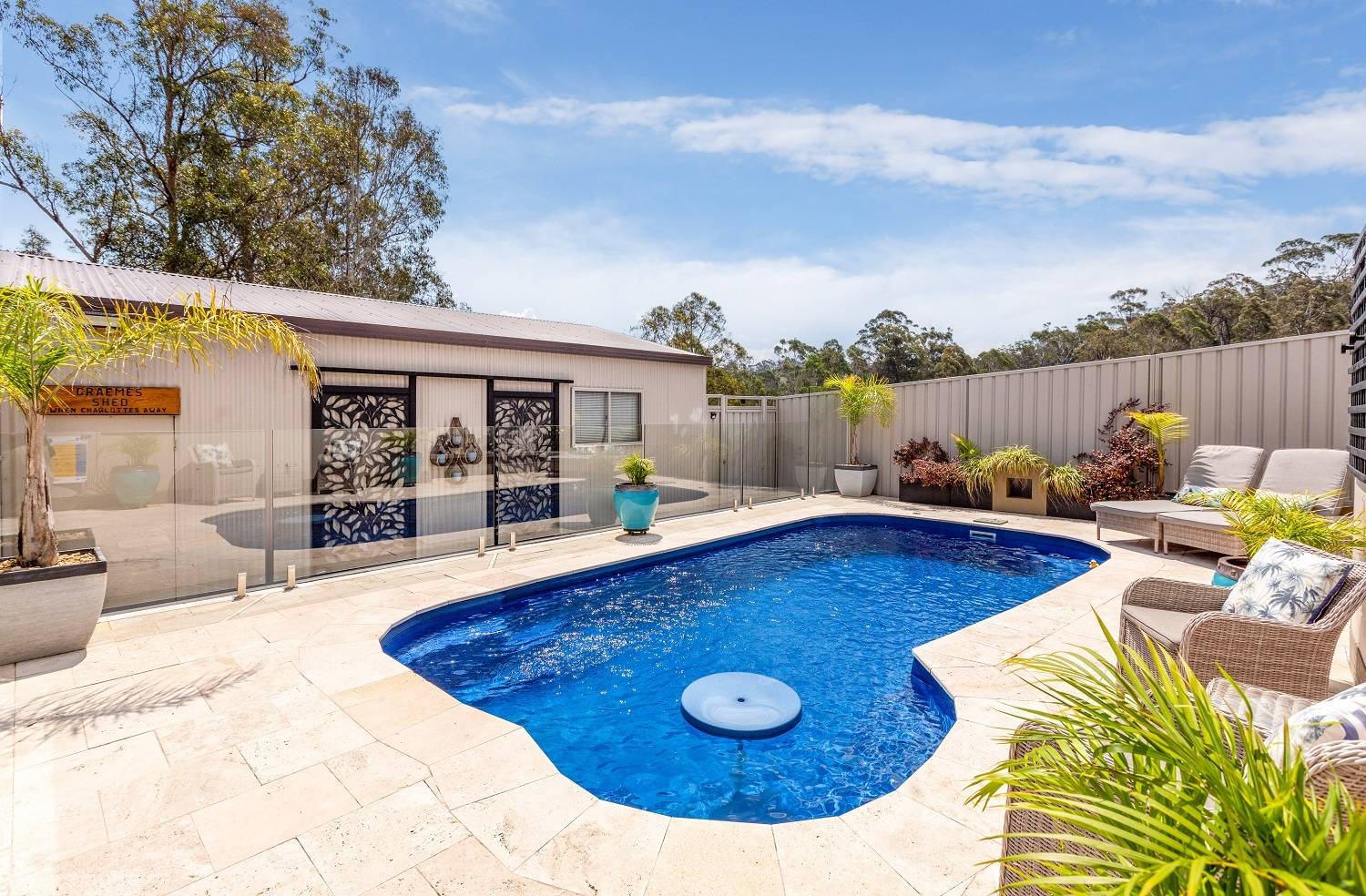 From the moment you step into the entrance foyer a certain calm takes hold, a separation from the outside where quality and resort style living is all pervasive. With an attention to detail second to none, the fabulous 3 bedroom home comprises open living and dining (cosy s/c heater & split system) featuring majestic raked ceilings with a designer soft close kitchen taking centre stage. The living zone then seamlessly transitions out to an amazing travertine paved under roof alfresco living area complete with a full stainless steel outdoor kitchen including plumbing, refrigeration, pizza oven, bbq set etc. Adjoining this amazing area is a wonderful solar heated saltwater chlorinated in-ground pool and for good measure, there is an adjacent studio/office or guest acc with fully tiled lux bathroom. Back indoors the master suite includes integrated WIR & ensuite (vanity, shower & wc), good sized bedrooms 2 & 3 both with BIRs, laundry/storage and internal accessed double l/u garage. The fully fenced and established surrounds (1148m2 block) even boast a freestanding, easy access 8m x 6m high clearance shed/workshop, caravan/boat parking space, raised veggie garden and small hot house plus the property uniquely adjoins coastal reserve giving direct access (200m) onto Lake Curalo estuary/boardwalk/cycle track which winds its way round to the powder white sands & turquoise waters of Aslings Beach and world famous Beowa National Park. A jewel at the Cove.