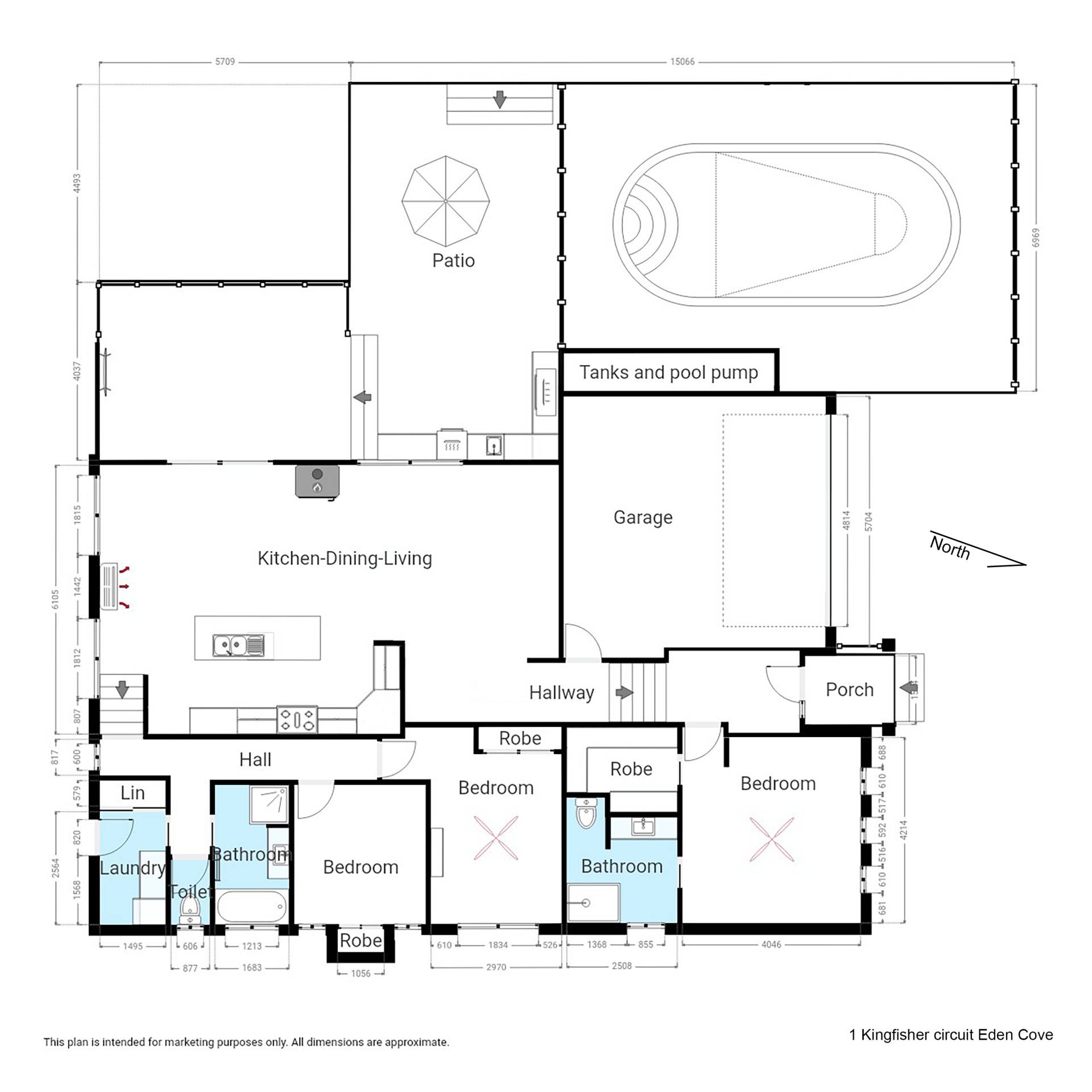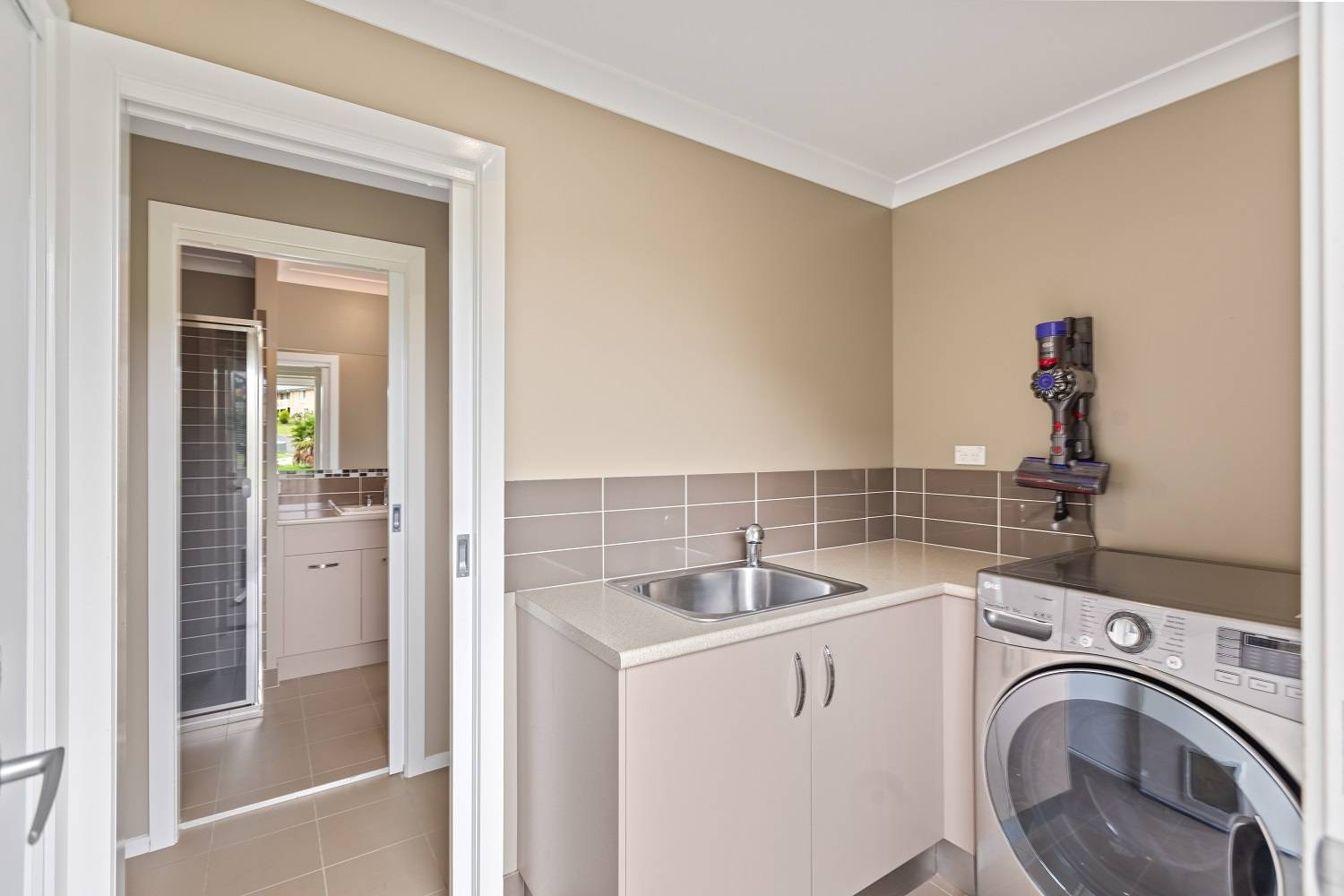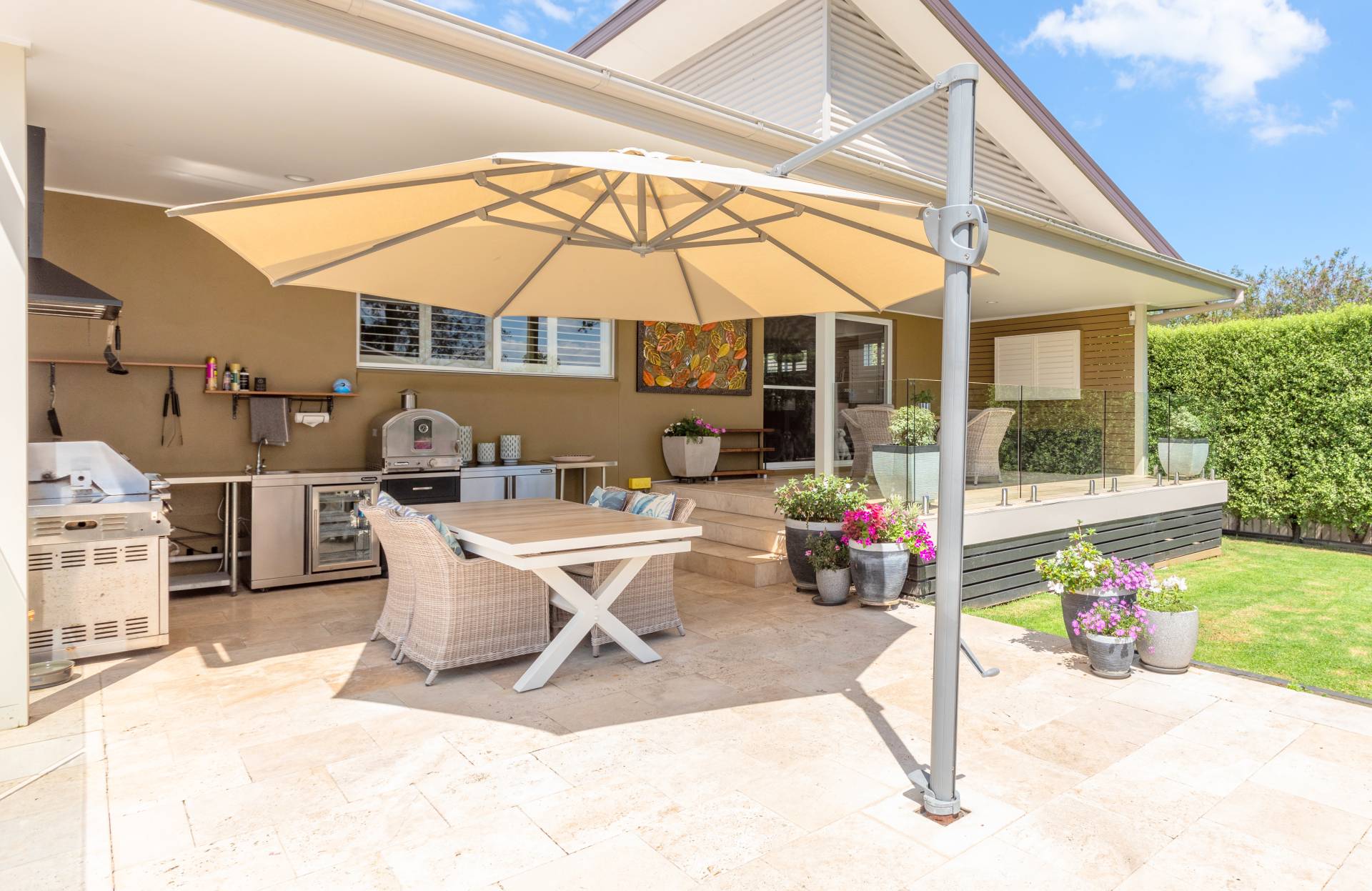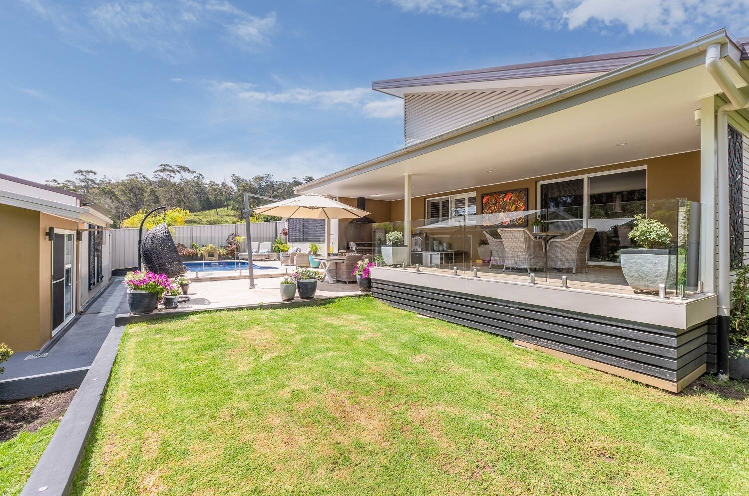 From the moment you step into the entrance foyer a certain calm takes hold, a separation from the outside where quality and resort style living is all pervasive. With an attention to detail second to none, the fabulous 3 bedroom home comprises open living and dining (cosy s/c heater & split system) featuring majestic raked ceilings with a designer soft close kitchen taking centre stage. The living zone then seamlessly transitions out to an amazing travertine paved under roof alfresco living area complete with a full stainless steel outdoor kitchen including plumbing, refrigeration, pizza oven, bbq set etc. Adjoining this amazing area is a wonderful solar heated saltwater chlorinated in-ground pool and for good measure, there is an adjacent studio/office or guest acc with fully tiled lux bathroom. Back indoors the master suite includes integrated WIR & ensuite (vanity, shower & wc), good sized bedrooms 2 & 3 both with BIRs, laundry/storage and internal accessed double l/u garage. The fully fenced and established surrounds (1148m2 block) even boast a freestanding, easy access 8m x 6m high clearance shed/workshop, caravan/boat parking space, raised veggie garden and small hot house plus the property uniquely adjoins coastal reserve giving direct access (200m) onto Lake Curalo estuary/boardwalk/cycle track which winds its way round to the powder white sands & turquoise waters of Aslings Beach and world famous Beowa National Park. A jewel at the Cove.