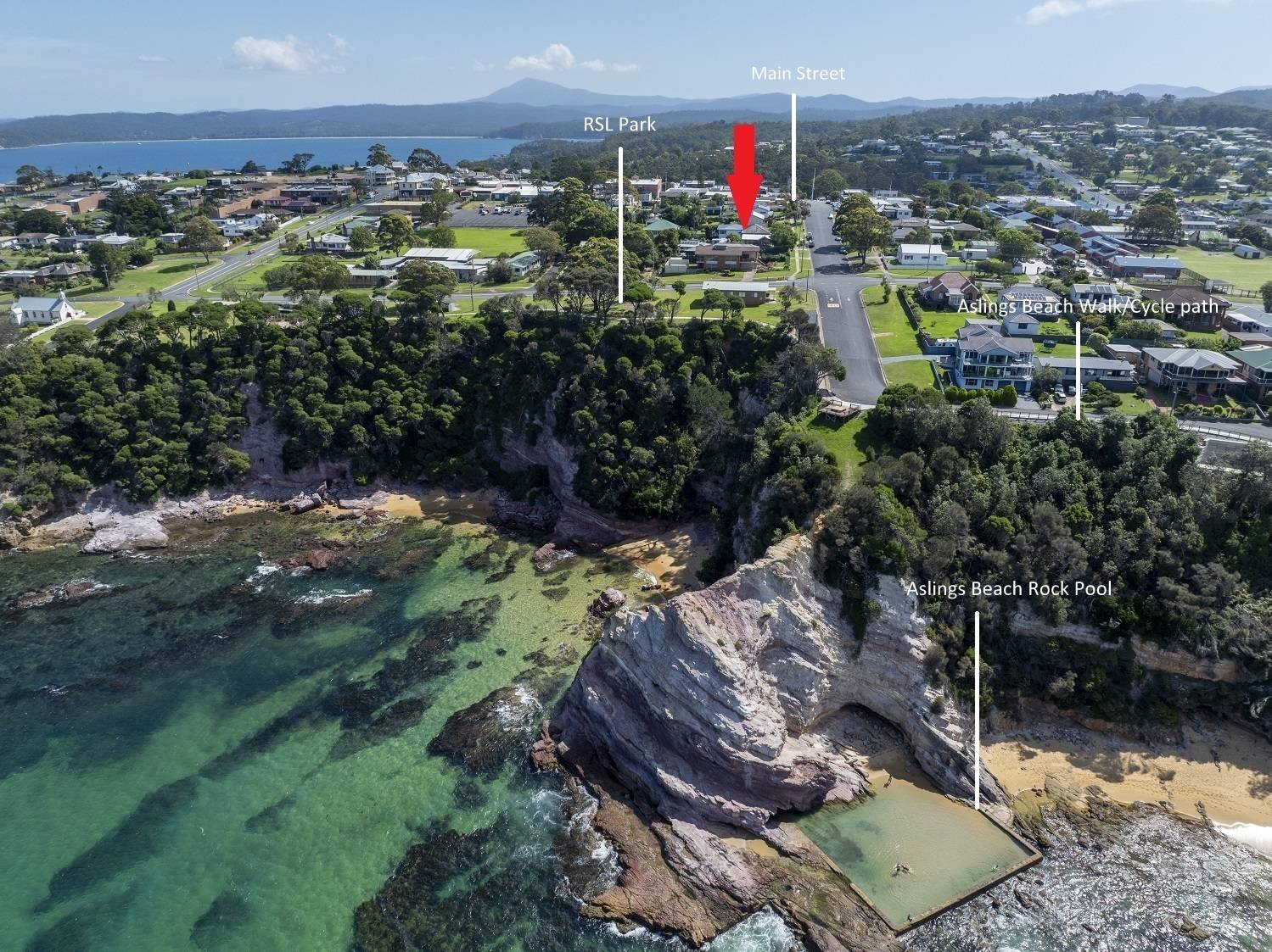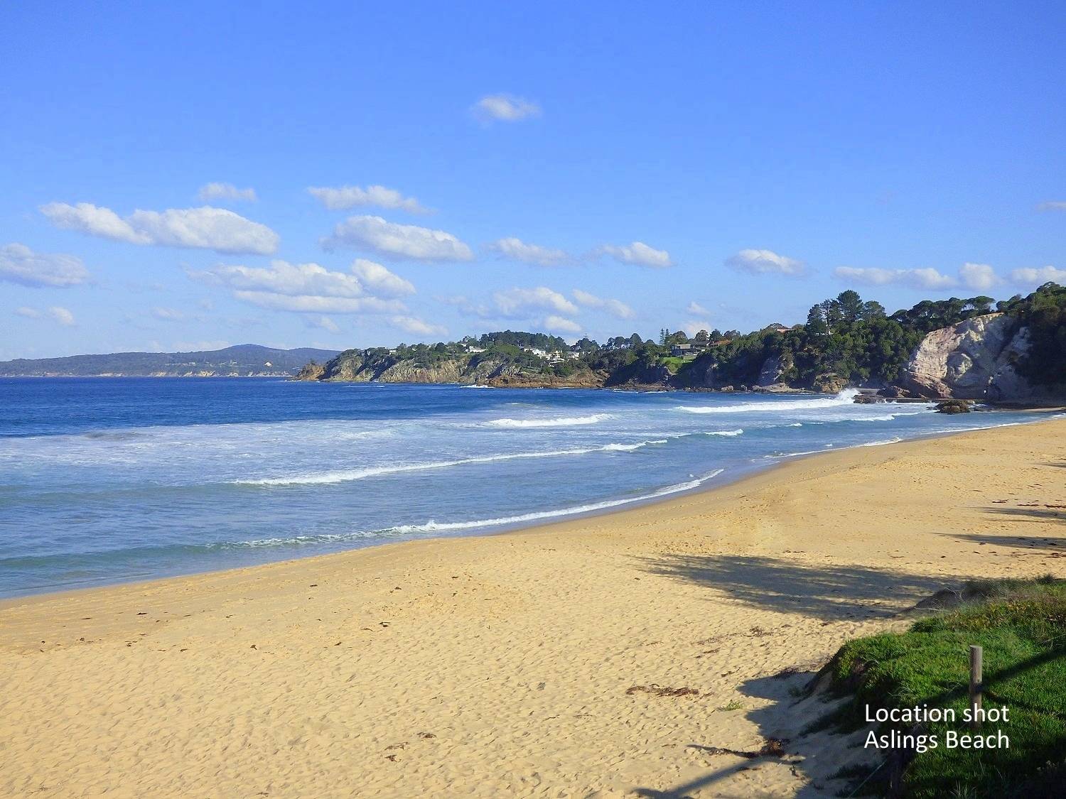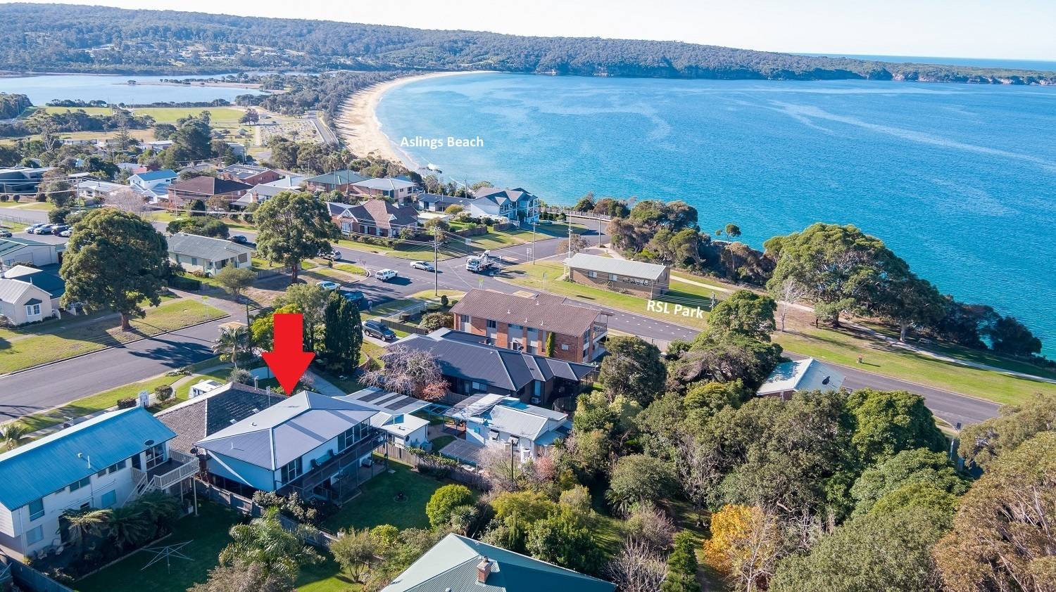 Brilliantly located in a fabulous ever popular central location, just an effortless level walk (70m) from Eden’s main street or coastal parkland which winds down to the bleached white sands and vivid blue waters of award winning Aslings Beach. Fantastic 4 bedroom home that is light filled & airy throughout and boasts 2 wonderful open living zones (both gorgeous timber floors), the first with s/c heating then through to the huge main living and dining zone (split system) with a fully equipped timber bench topped kitchen at centre stage. The room effortlessly flows out to a house length deck for relaxation/entertaining whilst enjoying the leafy water views and landscaped surrounds. All bedrooms are generous in size with BIRs, the king sized master suite provides a stylish ensuite, WIR and private deck access. The main bathroom includes shower, bath, vanity and sep w/c. Additionally there is a huge under house workshop (originally designed as a rumpus), massive paved dry storage area plus an easy access garage with internal access. Position makes perfect.