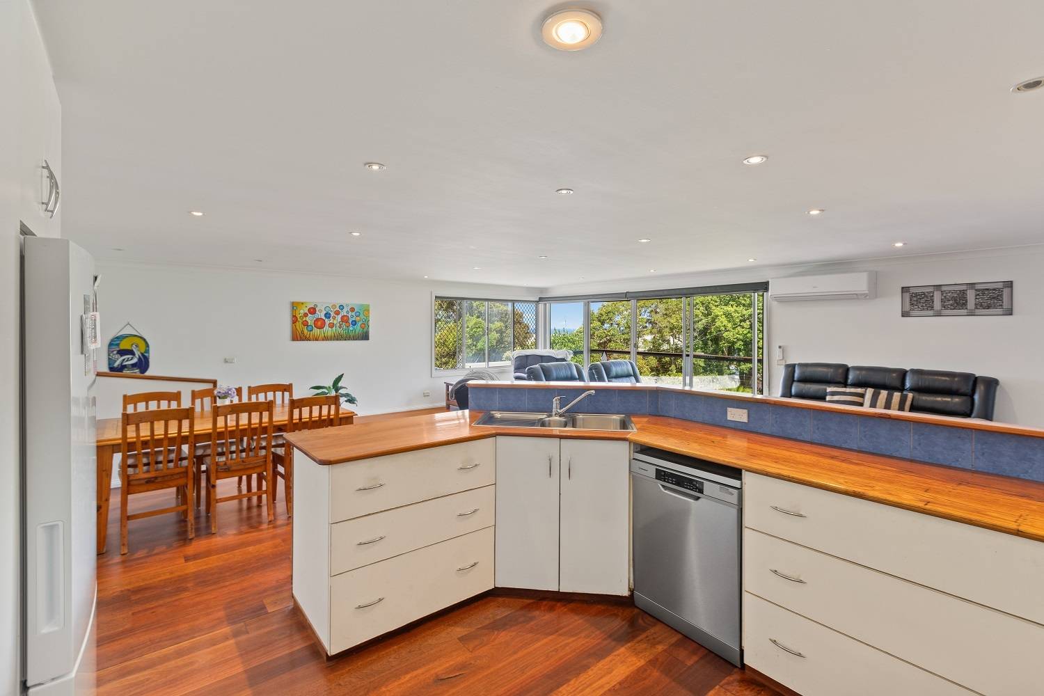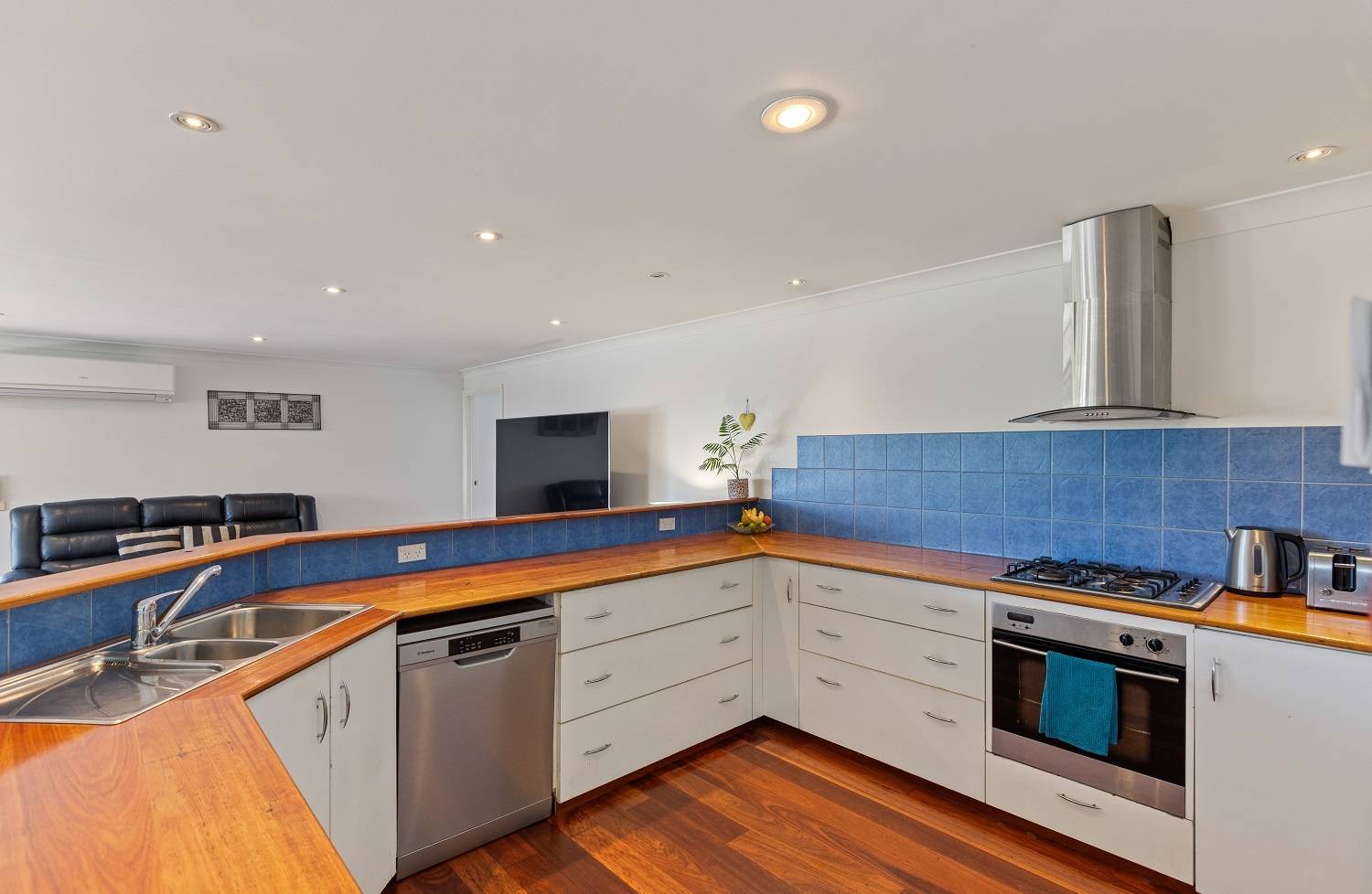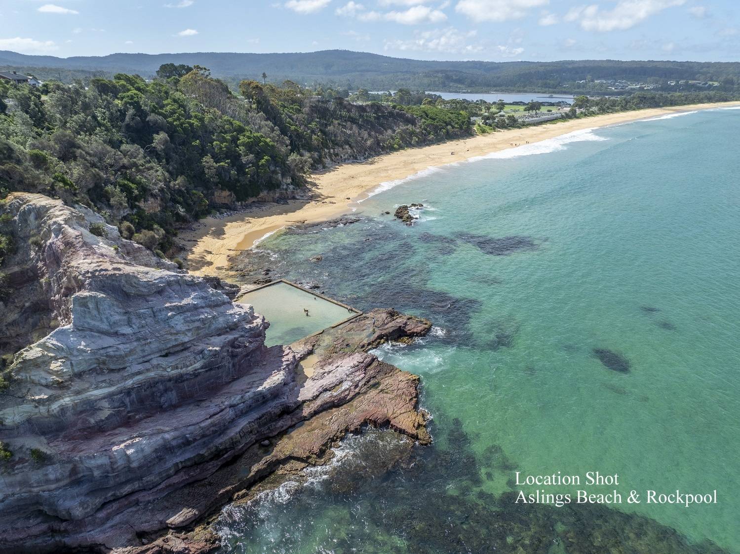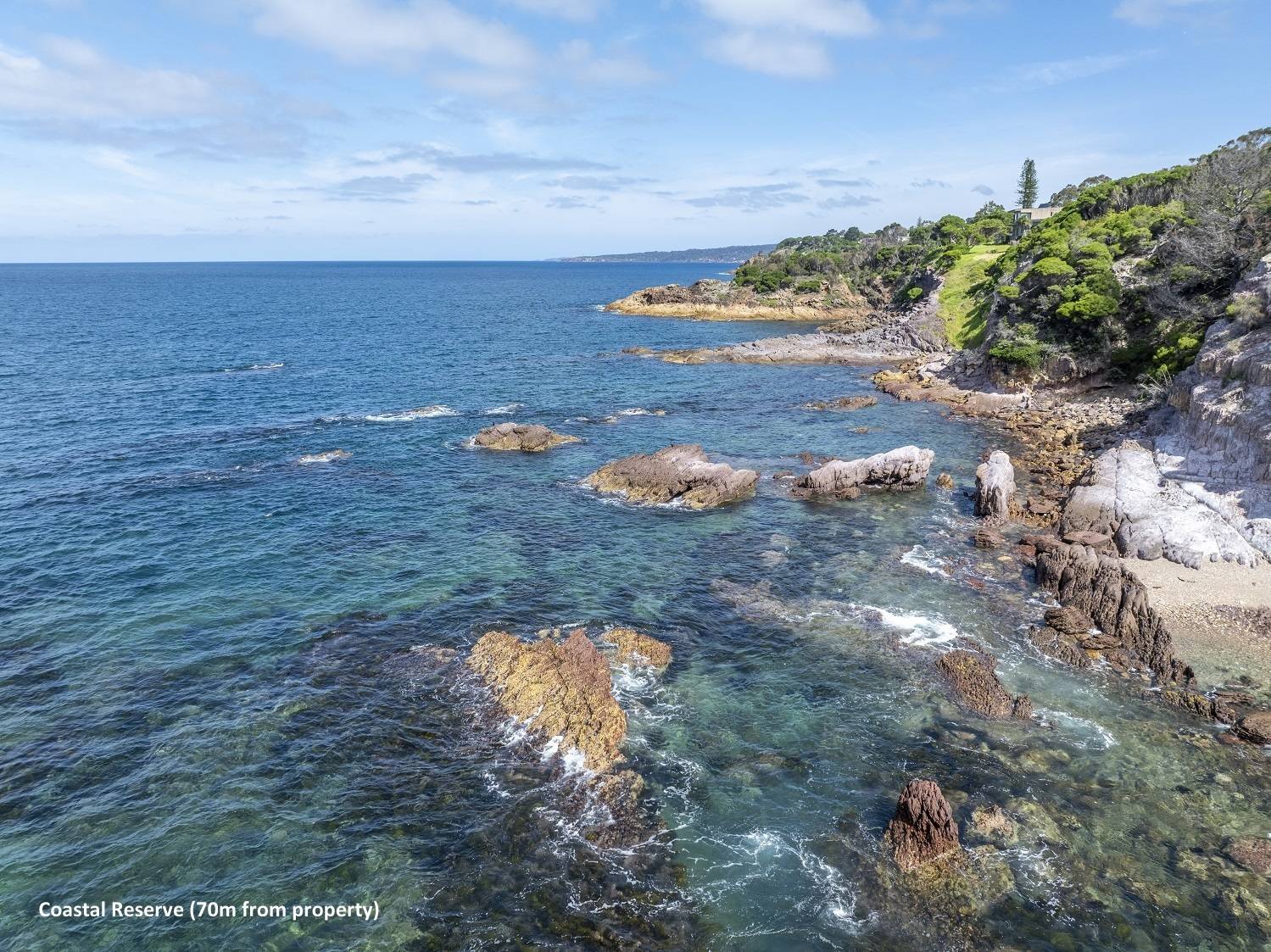Brilliantly located in a fabulous ever popular central location, just an effortless level walk (70m) from Eden’s main street or coastal parkland which winds down to the bleached white sands and vivid blue waters of award winning Aslings Beach. Fantastic 4 bedroom home that is light filled & airy throughout and boasts 2 wonderful open living zones (both gorgeous timber floors), the first with s/c heating then through to the huge main living and dining zone (split system) with a fully equipped timber bench topped kitchen at centre stage. The room effortlessly flows out to a house length deck for relaxation/entertaining whilst enjoying the leafy water views and landscaped surrounds. All bedrooms are generous in size with BIRs, the king sized master suite provides a stylish ensuite, WIR and private deck access. The main bathroom includes shower, bath, vanity and sep w/c. Additionally there is a huge under house workshop (originally designed as a rumpus), massive paved dry storage area plus an easy access garage with internal access. Position makes perfect.