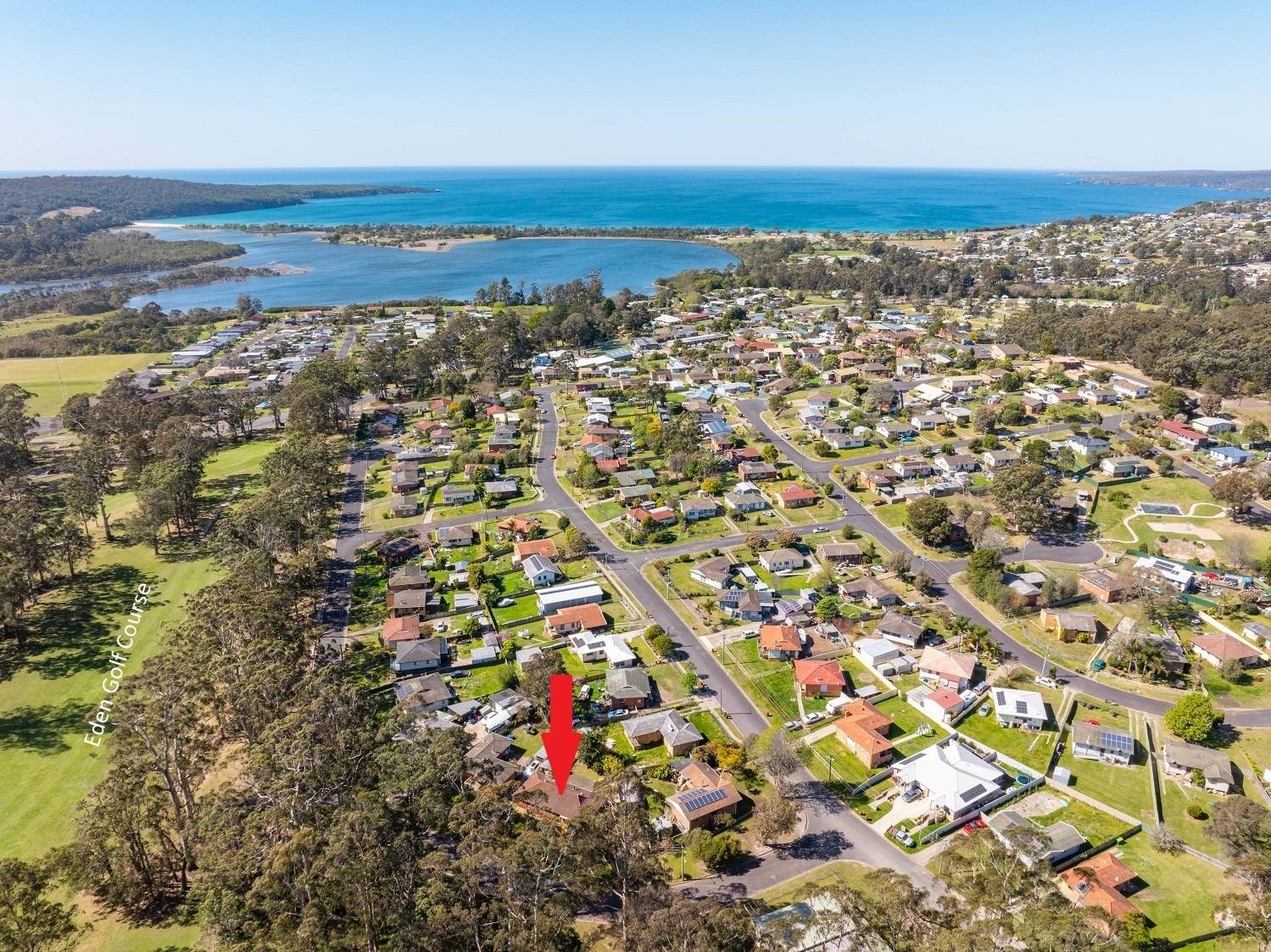 Striking 4 bedroom home perfectly positioned directly opposite and just a pitching wedge from the 11th fairway at Eden Sport & Recreation Club. In good order throughout, features include generous living & dining (polished cypress pine floors & split system) flowing out to a large external tiled and covered alfresco living area. Well appointed kitchen with breakfast bar, king sized master and large second bedroom both with ensuite access to a modern 2nd bathroom, main bathroom includes a shower, spa bath, vanity and separate WC plus BIR’s in all bedrooms. The established surrounds include a fully fenced rear yard, remote control garage and 2 small workshops. The eagle has landed.