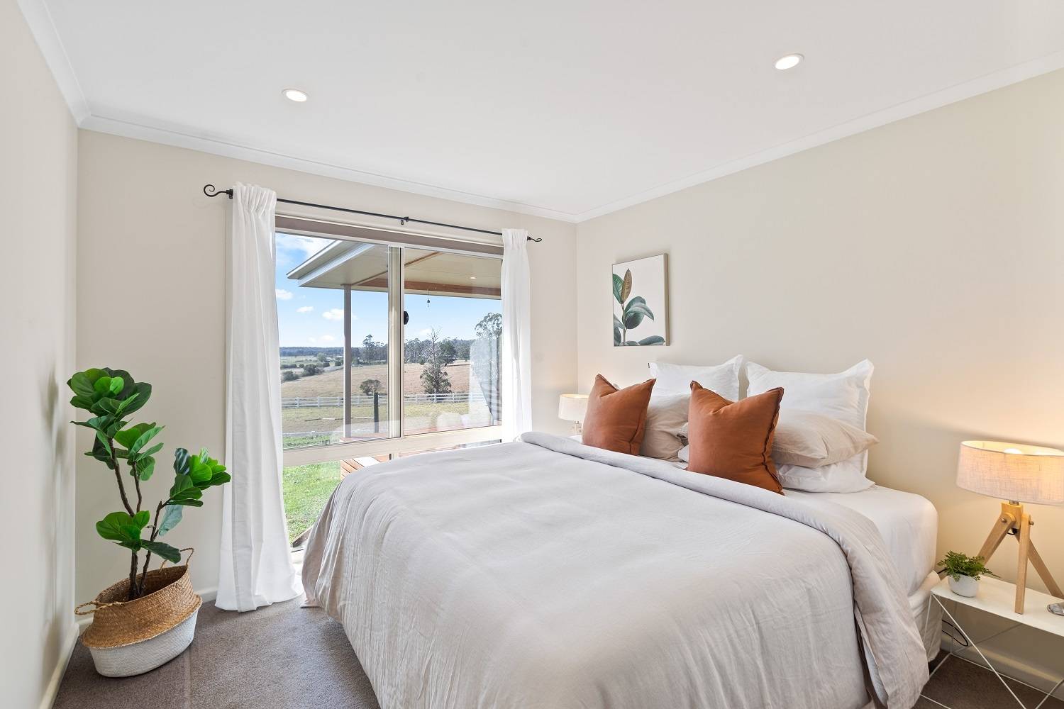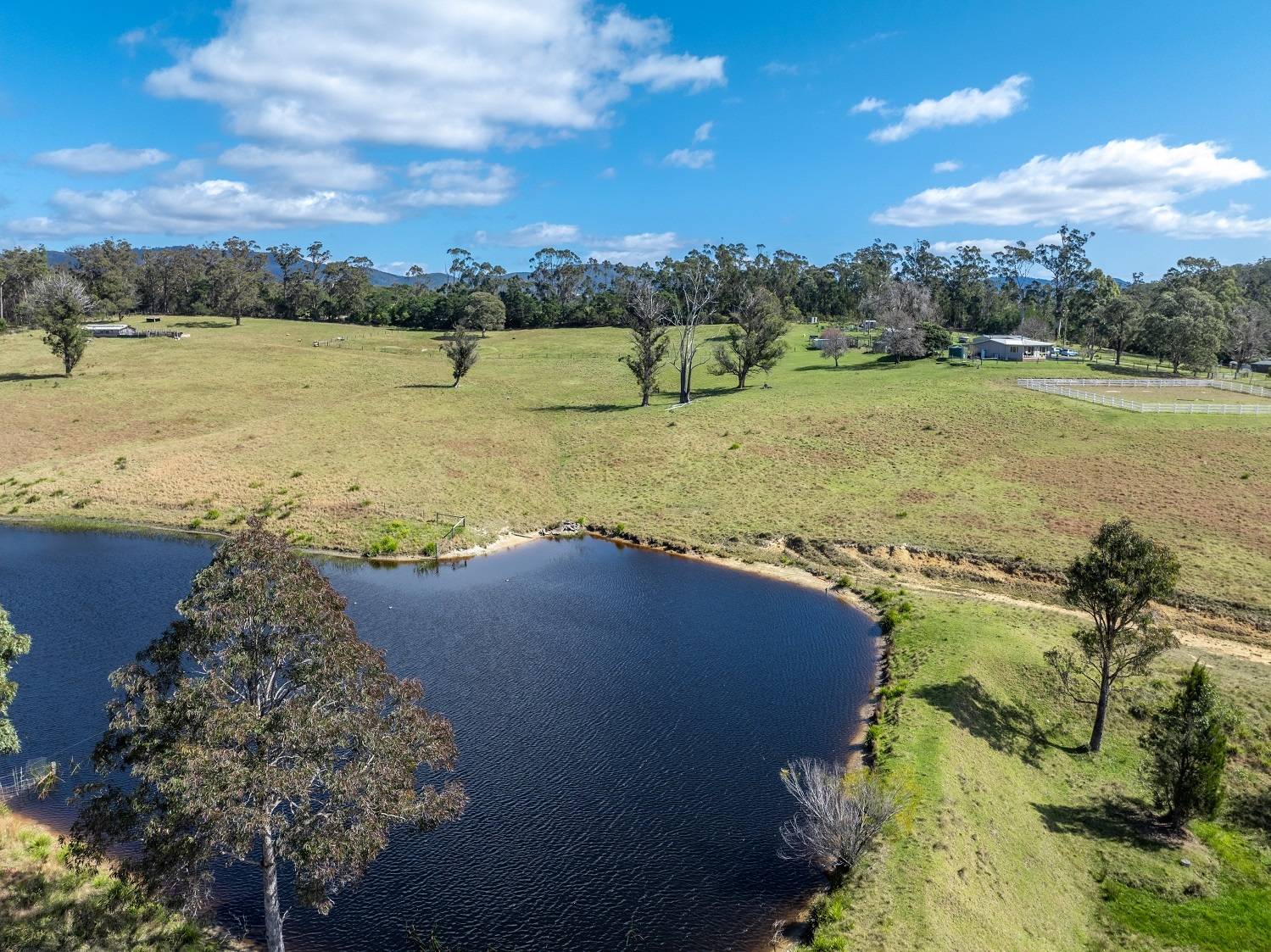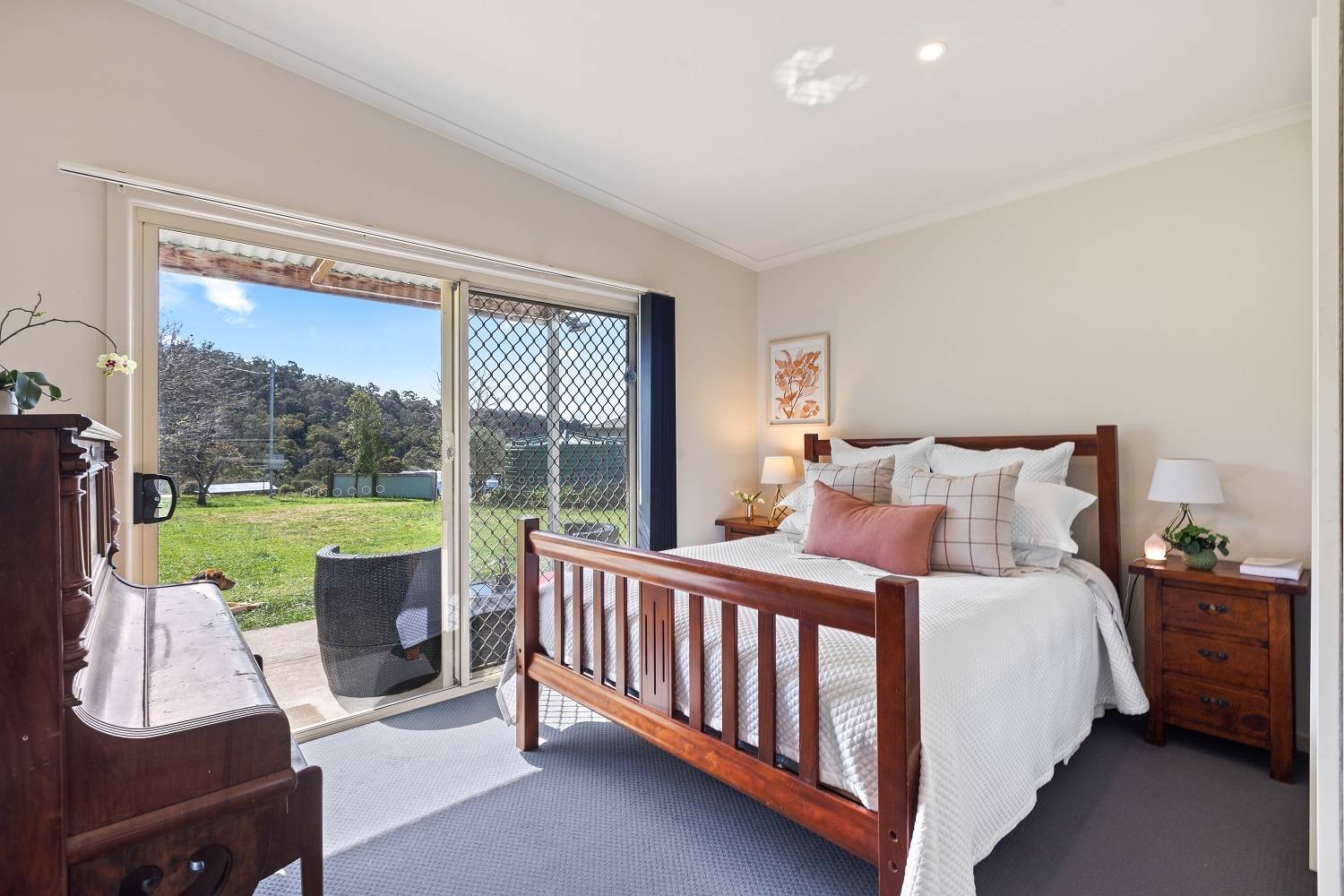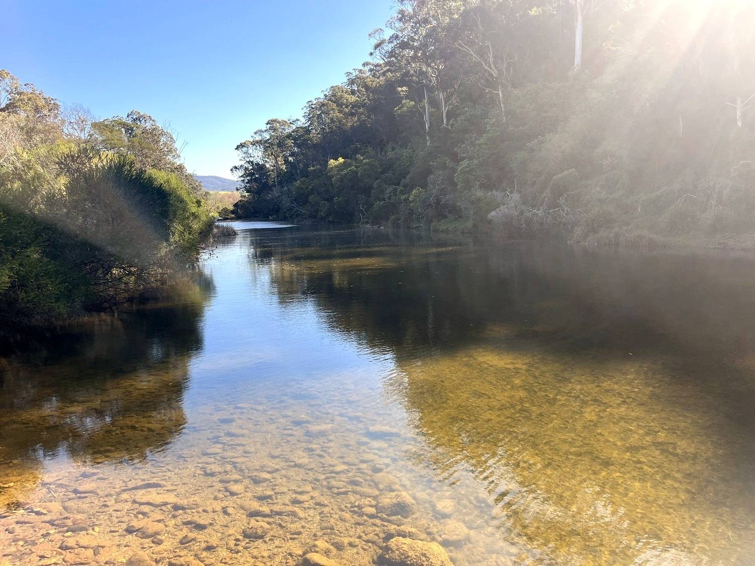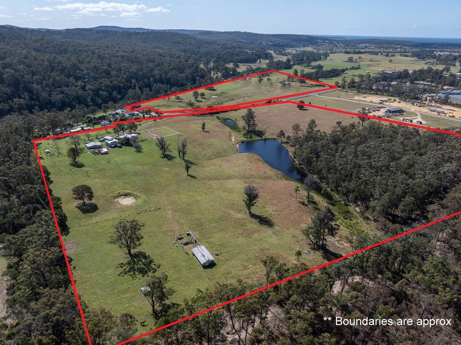 Incredibly just a 5 minute drive from vibrant Pambula Village (extra 3 to the beach), ‘Elouera’ comprises 83 glorious acres including 40 acres of fertile alluvial river flats and a 700 metre frontage to the pristine waters of the iconic Pambula River. Modern and in excellent order throughout, the North facing residence is perfectly sited on an elevated knoll and comprises 3 large bedrooms (BIRs), master suite with lux ensuite (vanity, shower, freestanding bath & wc) and ample robe space, main living (s/c heating & split system) out to under roof deck that surveys the spectacular rural amenity, inc the adjacent horse dressage arena and the magnificence of the huge dam/lake resplendent with teeming bird life. Fantastic stone bench topped soft close kitchen including pantry, breakfast bar +A grade appliances, generous adjacent dining area transitioning out to a large covered deck alfresco living zone, excellent main bathroom and study. Separate from the residence is a modern 1 bedroom guest accom/studio including lounge/dining, galley kitchen, bedroom and beaut bathroom. Other improvements include 10m x 7m, 2 roller door high clearance Colorbond shed/garage, 3 bay machinery shed and workshop, various farm outbuildings, stockyards, chook yards, raised veggie gardens, plenty of tank water, automated electric pump on river (6ML water license), mains power plus battery & BTG solar. The property is well fenced (11 paddocks), currently running 10 cows & calves and 35 ewes & lambs, excellent sealed road access and with one eye to the future is uniquely zoned E4 (General Industrial) providing flexibility and amazing potential. Irreplaceable holding offering the best of rural lifestyle, the comforts of modern living with all of Pambula’s amenities within touching distance. Inspections by appointment.