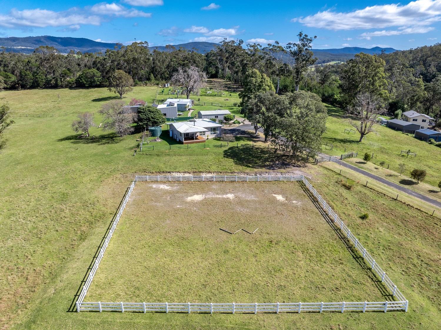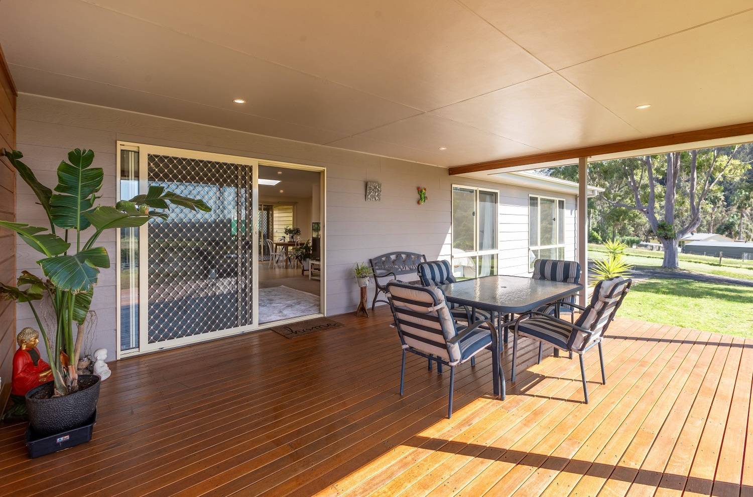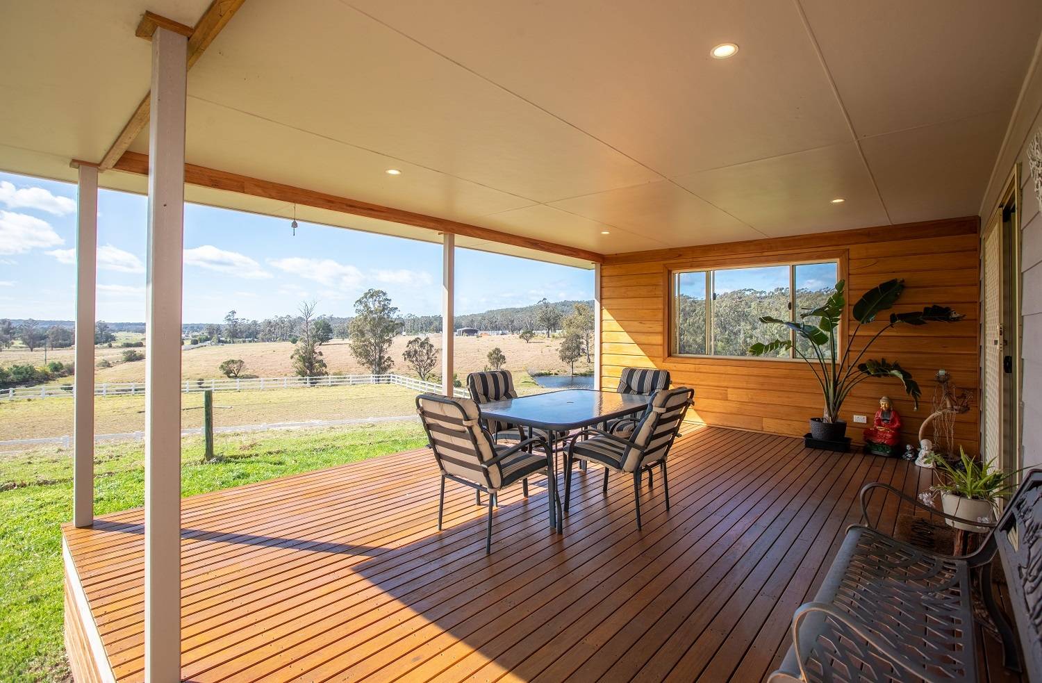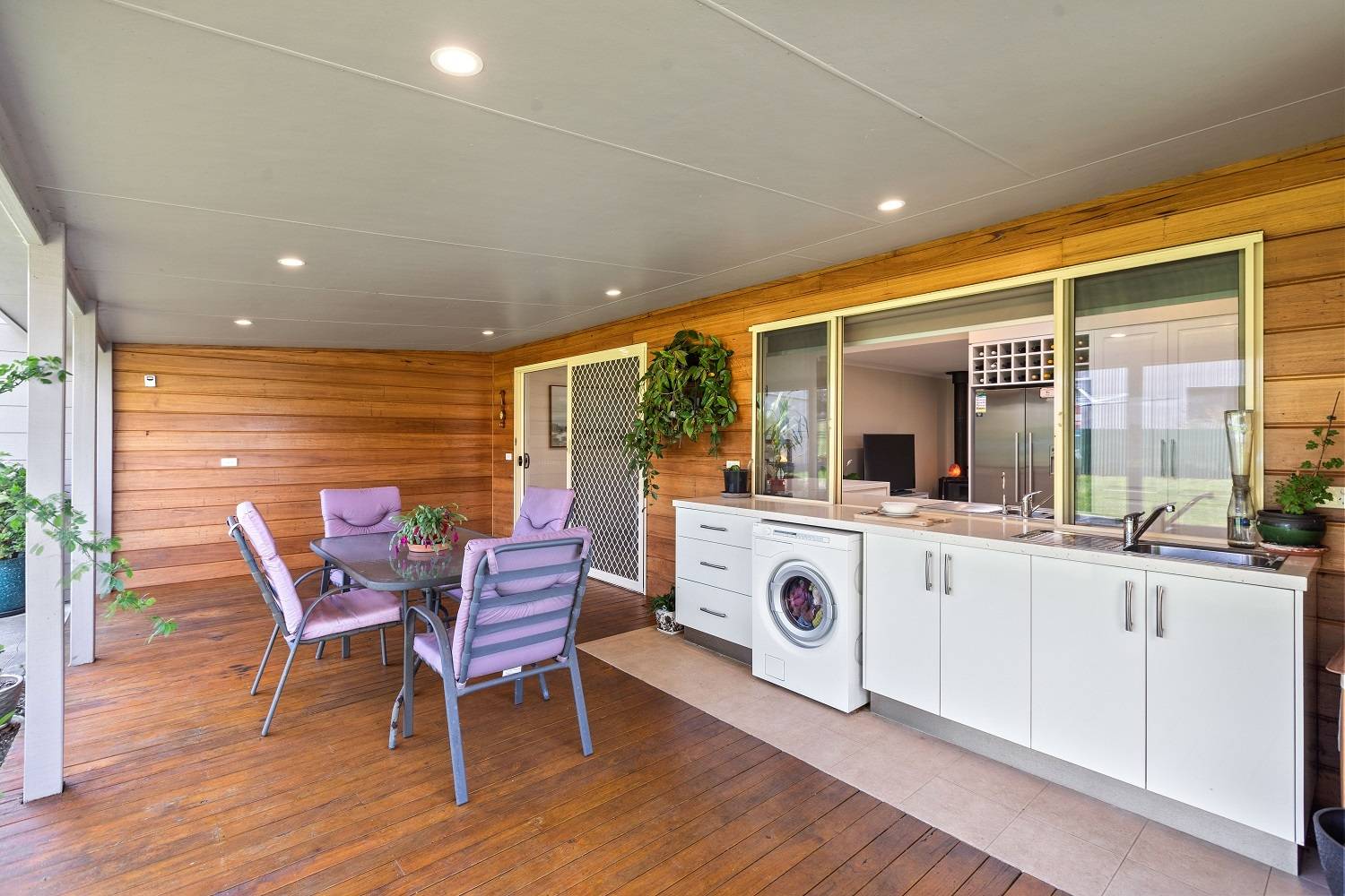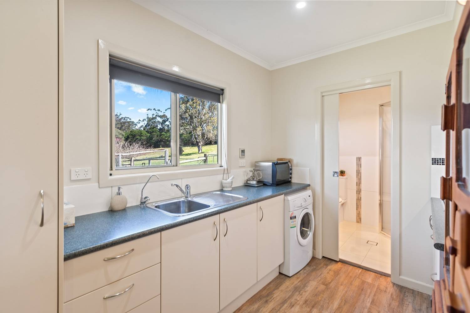 Incredibly just a 5 minute drive from vibrant Pambula Village (extra 3 to the beach), ‘Elouera’ comprises 83 glorious acres including 40 acres of fertile alluvial river flats and a 700 metre frontage to the pristine waters of the iconic Pambula River. Modern and in excellent order throughout, the North facing residence is perfectly sited on an elevated knoll and comprises 3 large bedrooms (BIRs), master suite with lux ensuite (vanity, shower, freestanding bath & wc) and ample robe space, main living (s/c heating & split system) out to under roof deck that surveys the spectacular rural amenity, inc the adjacent horse dressage arena and the magnificence of the huge dam/lake resplendent with teeming bird life. Fantastic stone bench topped soft close kitchen including pantry, breakfast bar +A grade appliances, generous adjacent dining area transitioning out to a large covered deck alfresco living zone, excellent main bathroom and study. Separate from the residence is a modern 1 bedroom guest accom/studio including lounge/dining, galley kitchen, bedroom and beaut bathroom. Other improvements include 10m x 7m, 2 roller door high clearance Colorbond shed/garage, 3 bay machinery shed and workshop, various farm outbuildings, stockyards, chook yards, raised veggie gardens, plenty of tank water, automated electric pump on river (6ML water license), mains power plus battery & BTG solar. The property is well fenced (11 paddocks), currently running 10 cows & calves and 35 ewes & lambs, excellent sealed road access and with one eye to the future is uniquely zoned E4 (General Industrial) providing flexibility and amazing potential. Irreplaceable holding offering the best of rural lifestyle, the comforts of modern living with all of Pambula’s amenities within touching distance. Inspections by appointment.