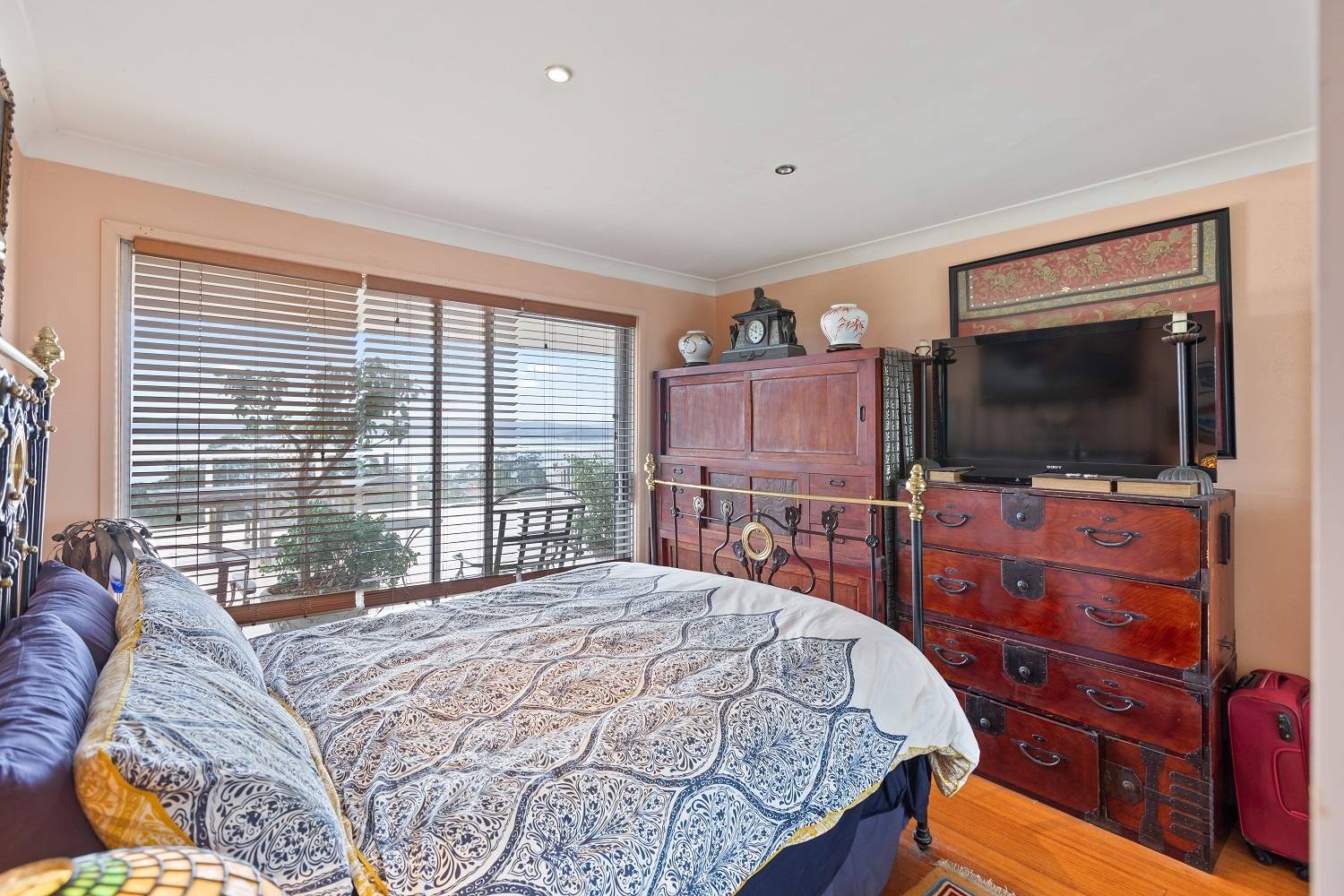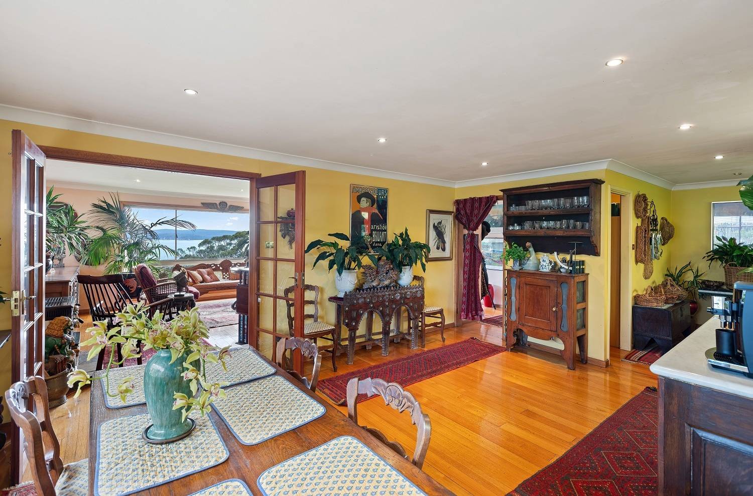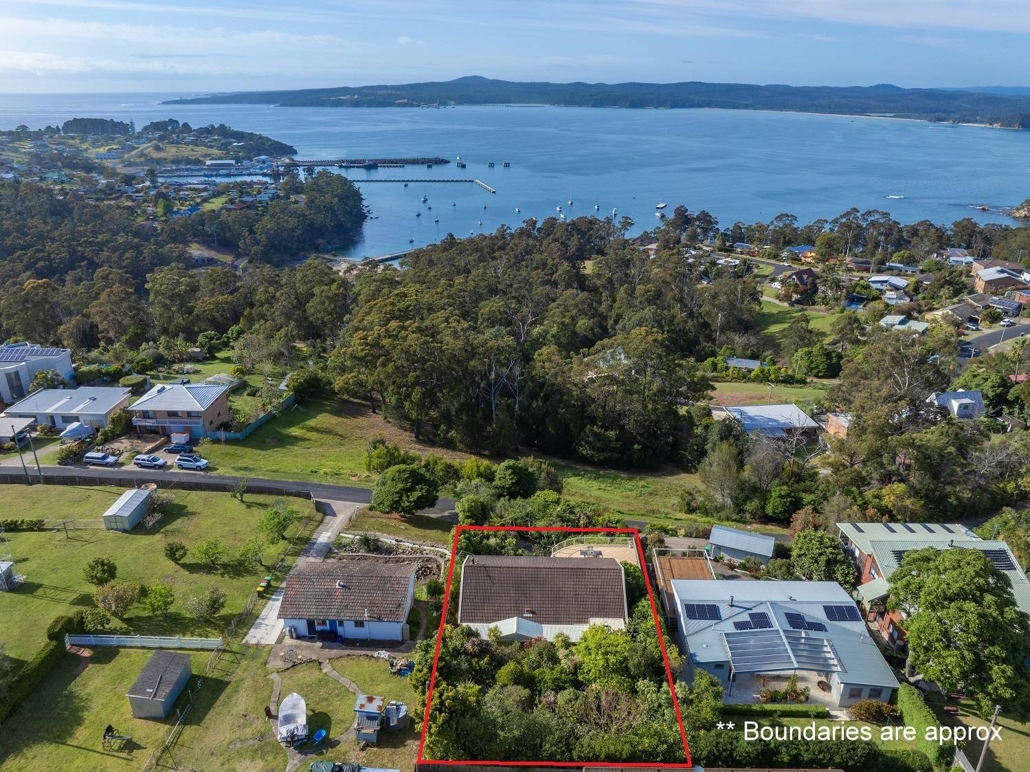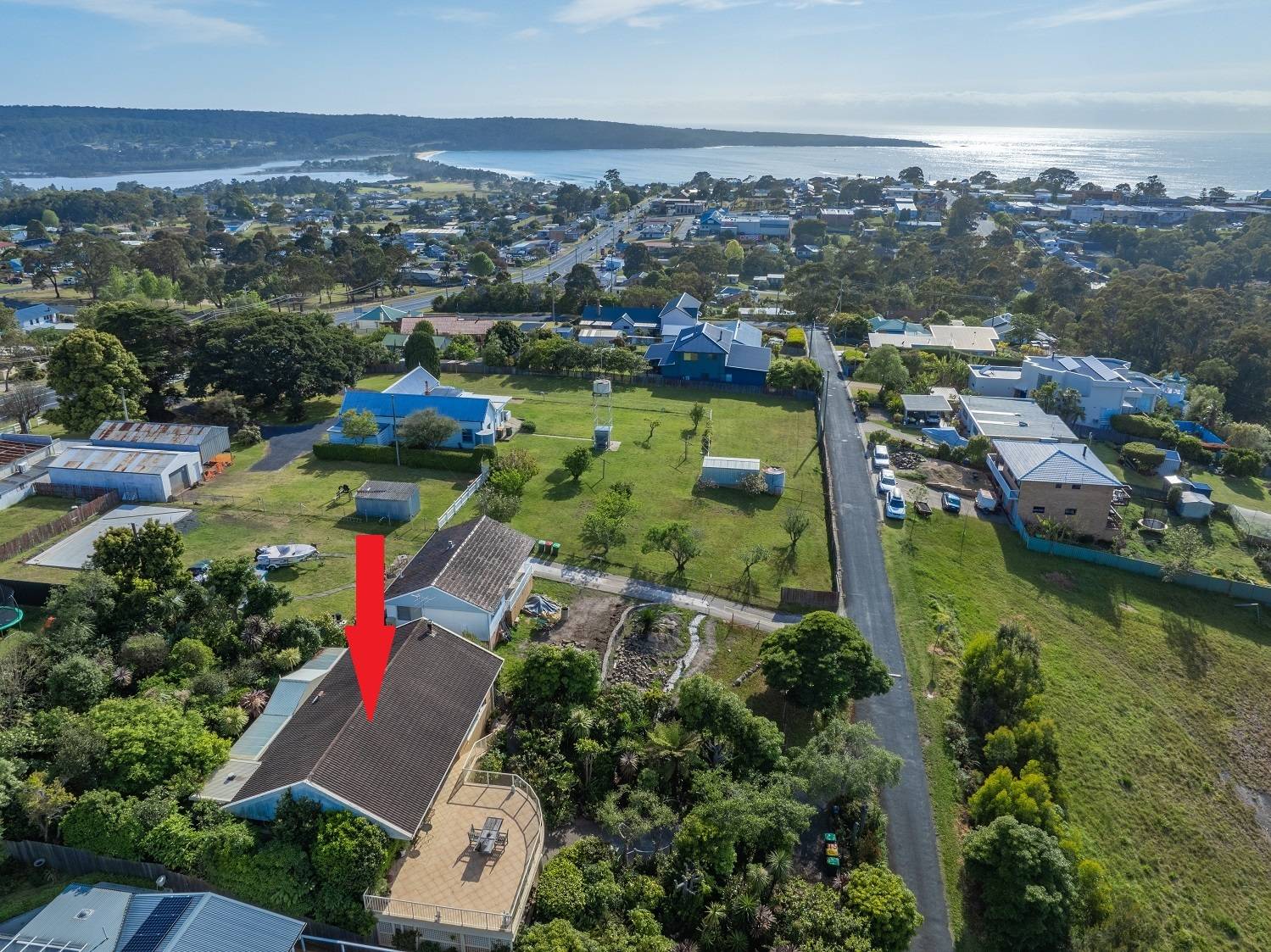 Mesmerising water views that scan the width of iconic Twofold Bay all the way to Boyds Tower and beyond to the incomparable South Pacific are a constant presence throughout this super solid 3 bedroom plus study home. Elevated and set on the high side of a very private, quiet street, the classic brick veneer + tiled roofed residence will charm your socks off with features such as gorgeous 5 inch hardwood polished floors throughout, French doors linking the main living room (cosy s/c heater) through to the generous dining and bespoke kitchen complete with marble bench top, 900mm freestanding dual fuel range, brass sink and range hood plus a substantial walk in pantry. The whole living space readily transitions out to a huge tiled patio to entertain or just luxuriate in the views then to the rear a laser lite covered patio and your own special tropical garden to enjoy. Magic main bedroom, BIR’s (slider to patio) and of course massive views, second bedroom (ensuite), substantial study and main bathroom (antique vanity/shower, small bath + WC) then downstairs to 3rd bedroom/music room, internal access garage and huge under patio carport. You’ll be floating on air.