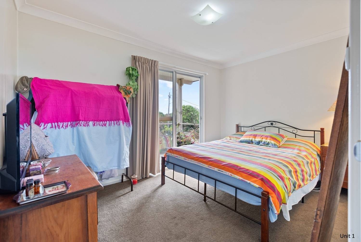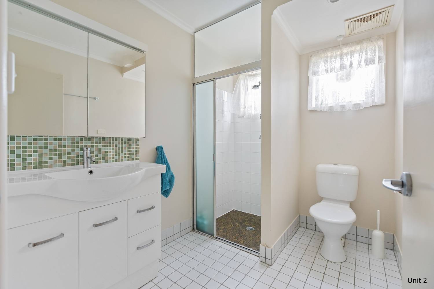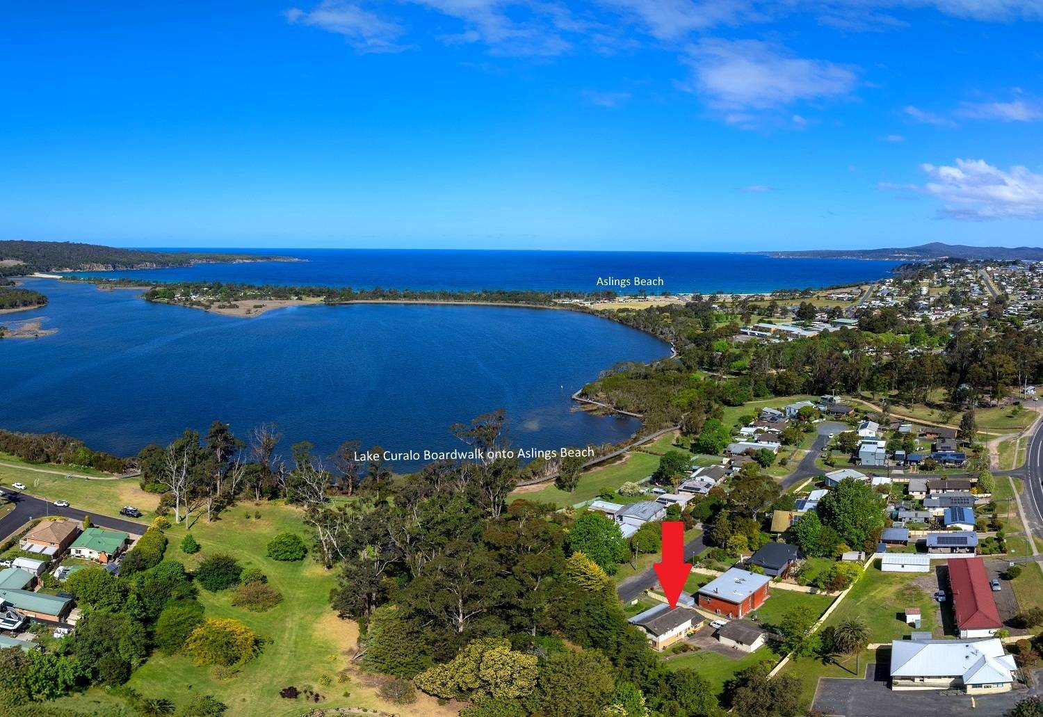 Tucked away at the end of a quiet cul de sac and set on a near level 954m2 allotment one eye-catching residence currently utilised as two excellent fully self contained units. Downstairs provides first rate flexibility currently configured as a 3 bedroom unit comprising open living and kitchen area, bathroom (vanity, shower & wc), good sized br 1 (BIRs), walk through br 2/utility (BIRs) and massive master bedroom (wc & vanity) which can provide a second large living room. Upstairs to a beaut under roof balcony to enjoy the coastal sea breeze and leafy outlook towards Lake Curalo estuary (70m as the crow flies), living/dining, kitchen (walk in pantry), 2 bedrooms each with BIRs, master with slider out to verandah and bathroom (shower, vanity & wc). The delightful surrounds are fully established complete with a 7m x 6m brick garage/workshop and dual laundry. Each unit is currently tenanted (separately metred) and providing good returns. Double act.