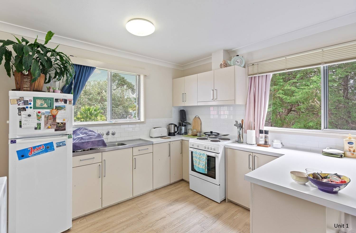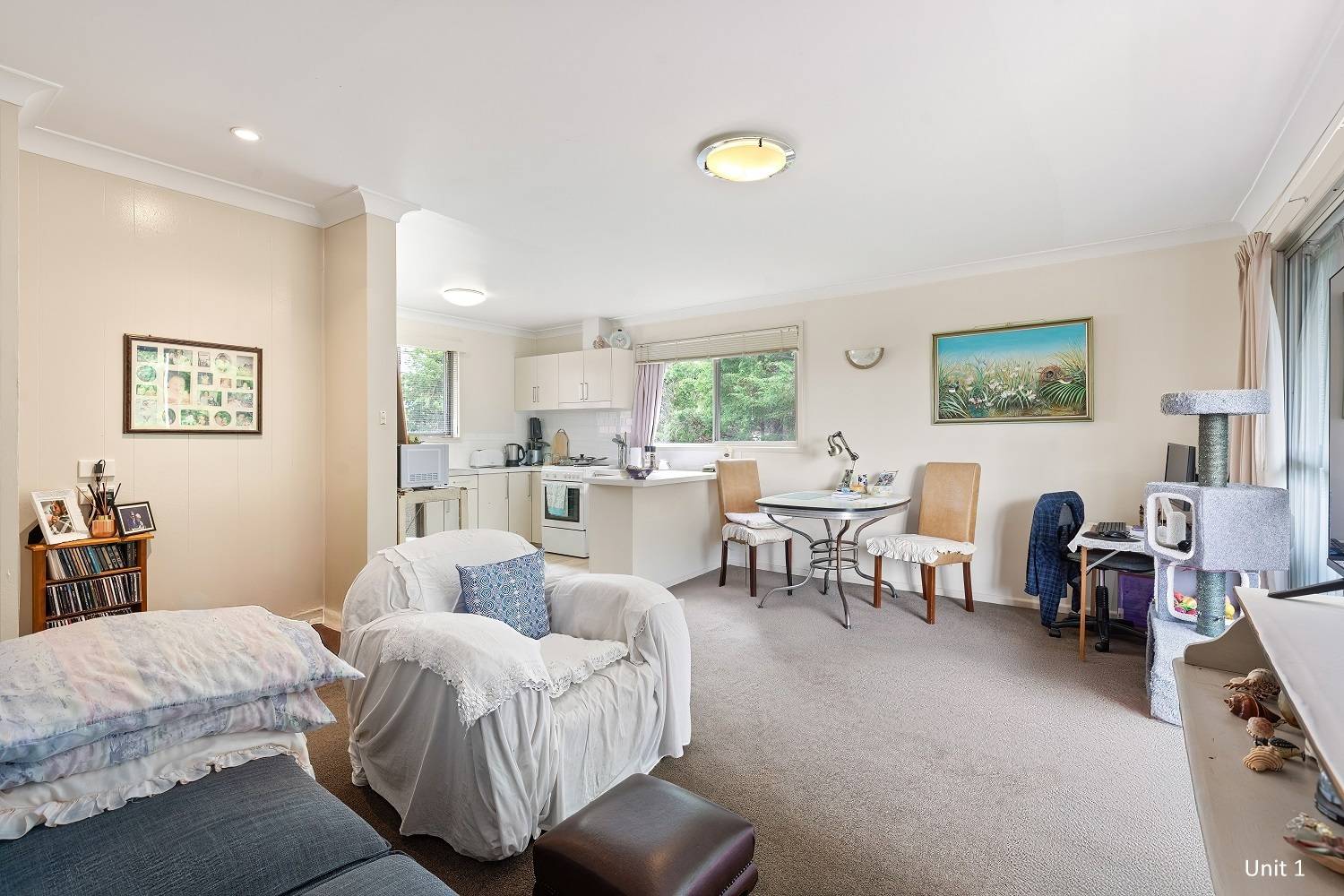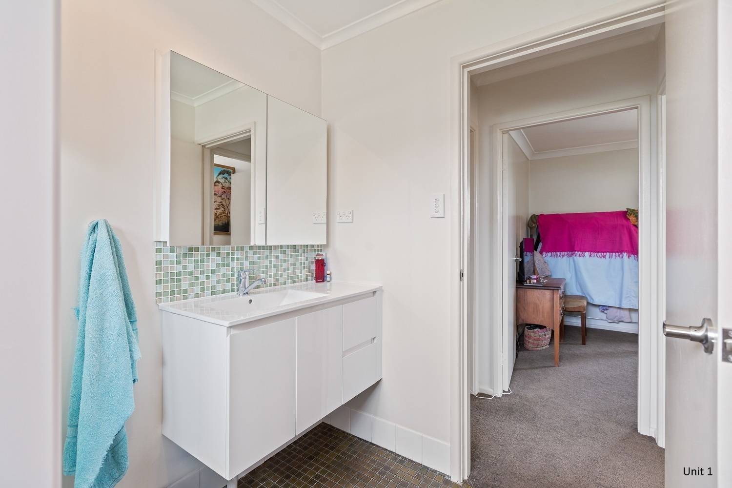 Tucked away at the end of a quiet cul de sac and set on a near level 954m2 allotment one eye-catching residence currently utilised as two excellent fully self contained units. Downstairs provides first rate flexibility currently configured as a 3 bedroom unit comprising open living and kitchen area, bathroom (vanity, shower & wc), good sized br 1 (BIRs), walk through br 2/utility (BIRs) and massive master bedroom (wc & vanity) which can provide a second large living room. Upstairs to a beaut under roof balcony to enjoy the coastal sea breeze and leafy outlook towards Lake Curalo estuary (70m as the crow flies), living/dining, kitchen (walk in pantry), 2 bedrooms each with BIRs, master with slider out to verandah and bathroom (shower, vanity & wc). The delightful surrounds are fully established complete with a 7m x 6m brick garage/workshop and dual laundry. Each unit is currently tenanted (separately metred) and providing good returns. Double act.