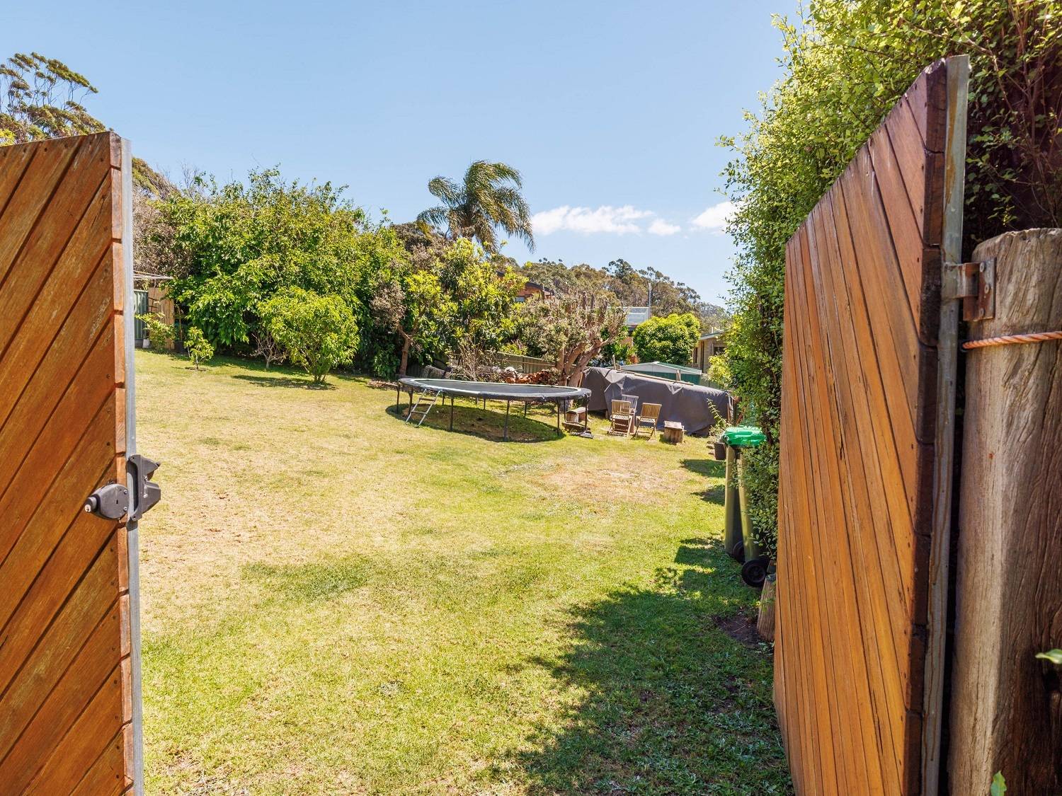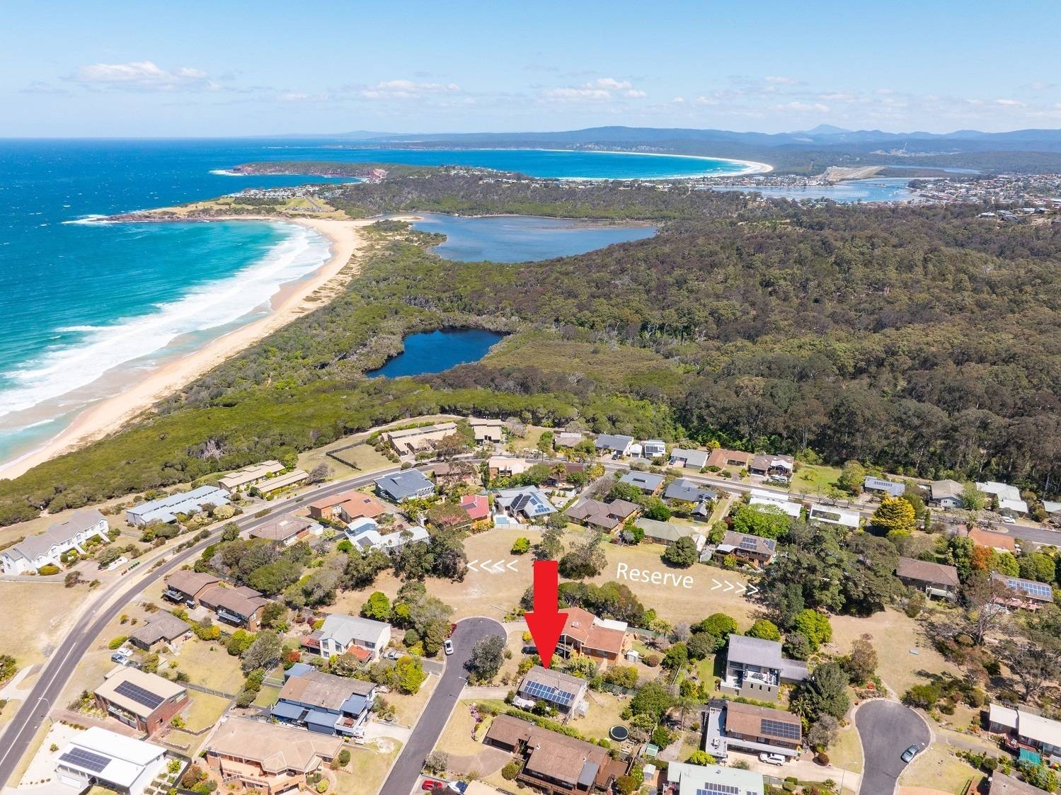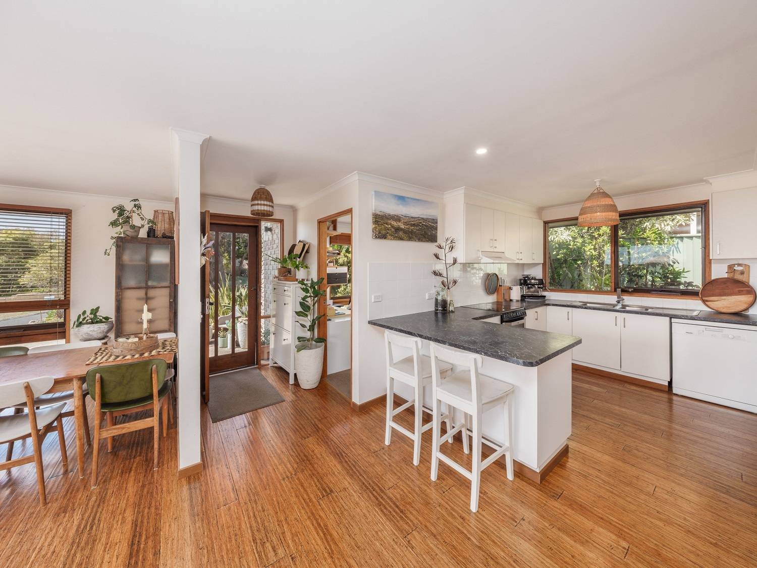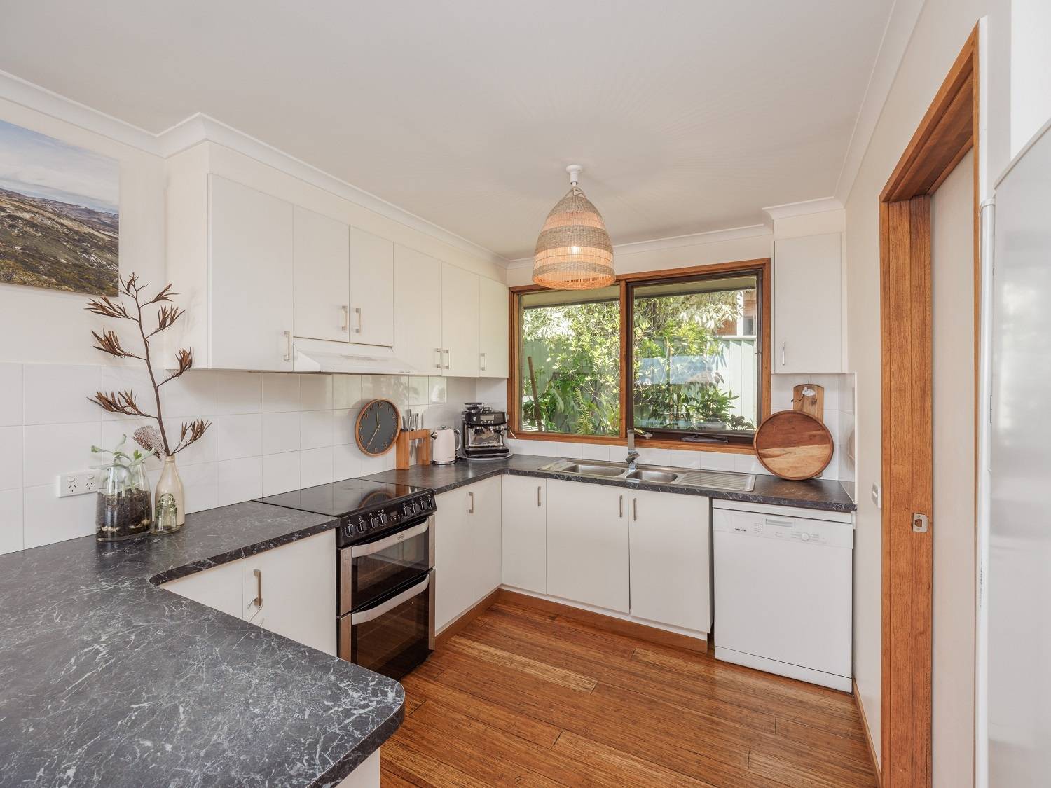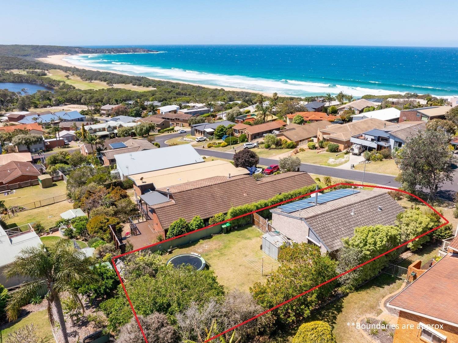 Nestled at the cul de sac end of a quiet street in one of Tura Beaches most sought after niche locations, just footsteps (20m) from coastal reserve with the beach and golf course at the bottom of the street (300m approx) a special secret awaits. With open ocean and beach views to mesmerize, through the classic timber screen door into the fabulous light-filled 3 bedroom home boasting the perfect sheltered Northerly aspect and comprising generous open living and dining areas (wood fire for cosy winter nights) with durable bamboo flooring flowing out to a private deck to revel in the sweet sea breezes and the amazing water views. Well appointed laminex kitchen featuring induction cooking, quality appliances and breakfast bar, king sized master (plenty of robe space), good sized second and third BR’s (BIR’s BR 2), bathroom including vanity, bath, shower plus sep wc & laundry. Then outside to the fully established surrounds,  5.5kw BTG solar system, easy access driveway through to the rear yard resplendent with raised vegie gardens, numerous established plantings including several fruit and a must have mulberry tree. Your special place.