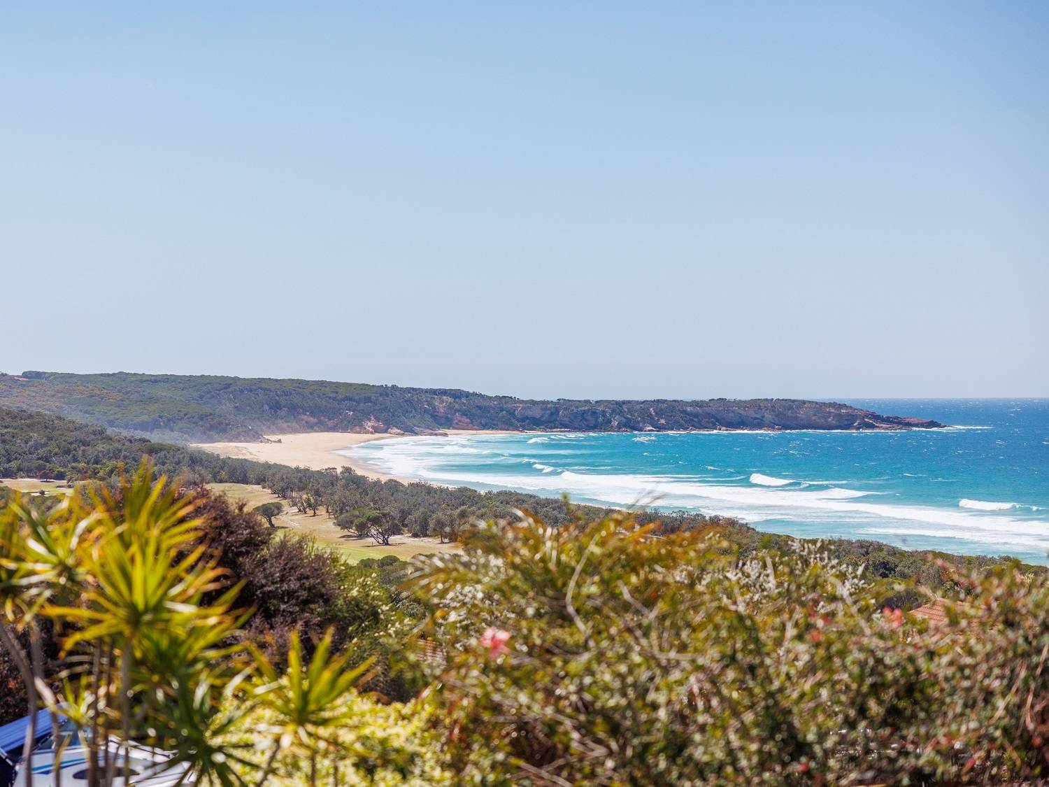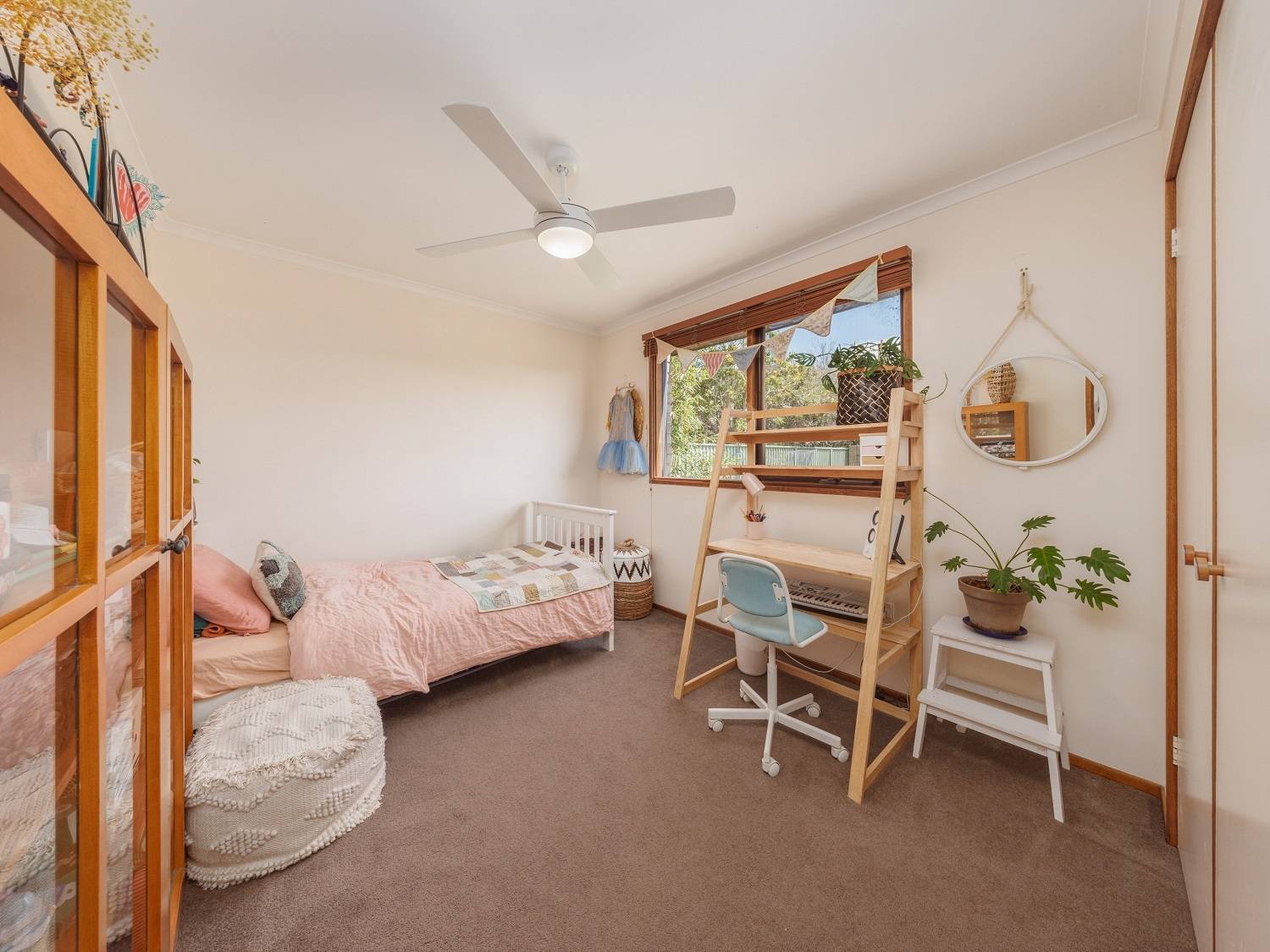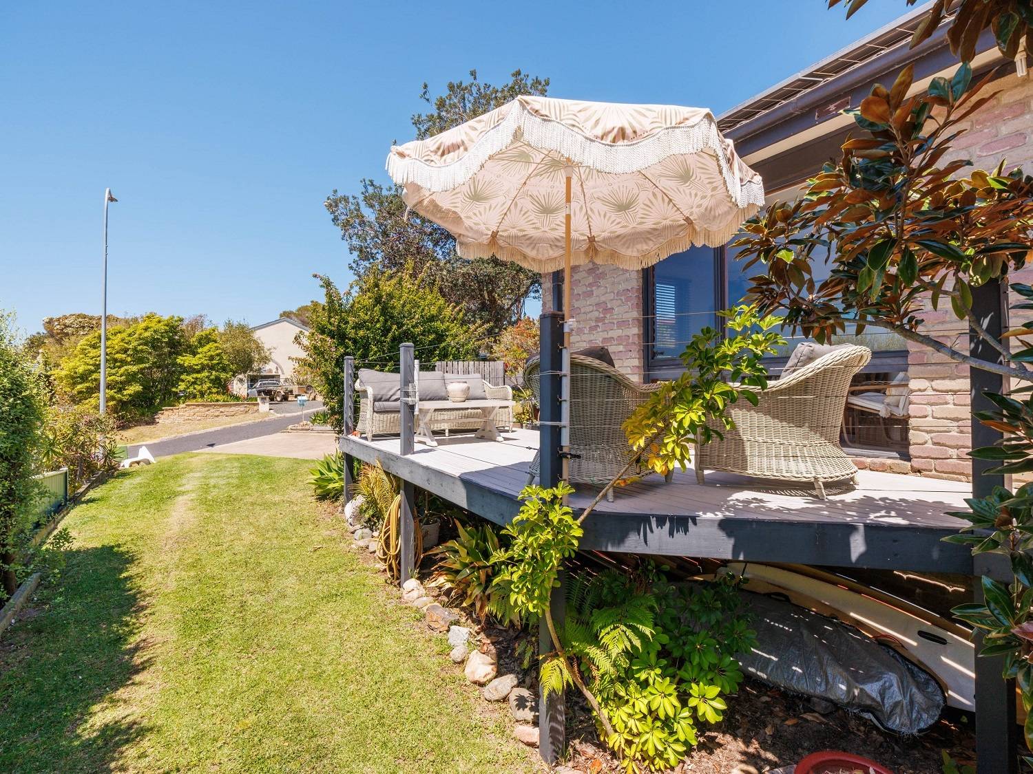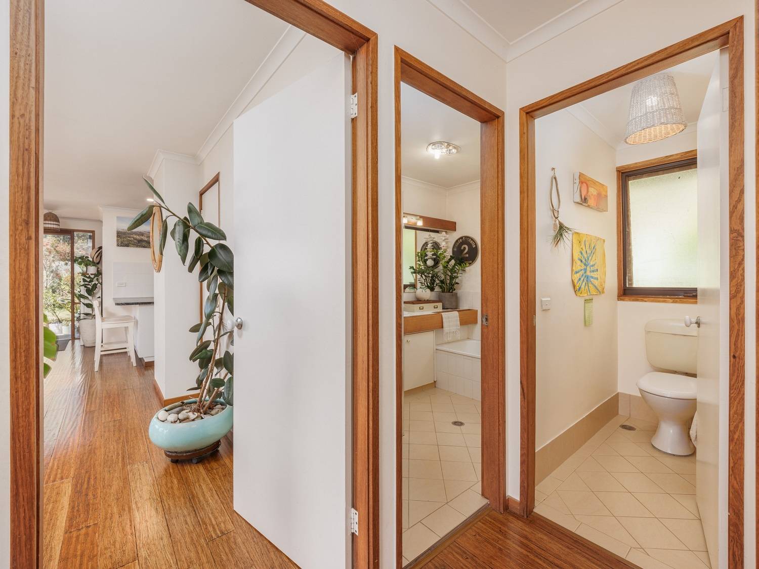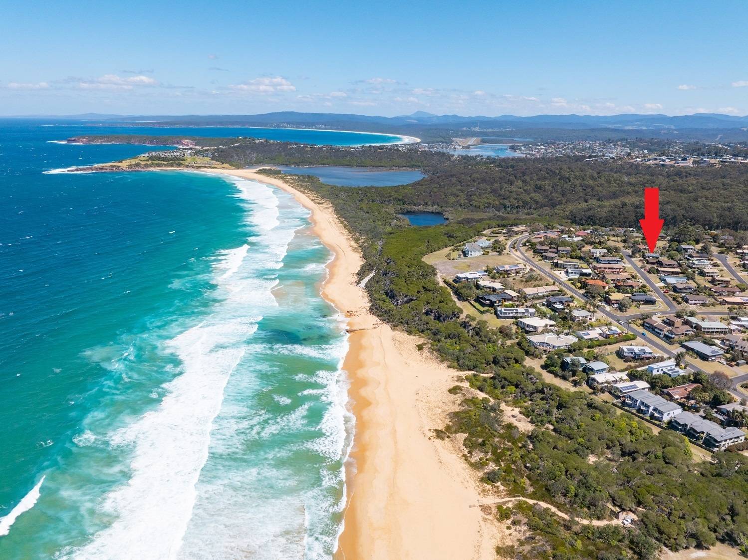 Nestled at the cul de sac end of a quiet street in one of Tura Beaches most sought after niche locations, just footsteps (20m) from coastal reserve with the beach and golf course at the bottom of the street (300m approx) a special secret awaits. With open ocean and beach views to mesmerize, through the classic timber screen door into the fabulous light-filled 3 bedroom home boasting the perfect sheltered Northerly aspect and comprising generous open living and dining areas (wood fire for cosy winter nights) with durable bamboo flooring flowing out to a private deck to revel in the sweet sea breezes and the amazing water views. Well appointed laminex kitchen featuring induction cooking, quality appliances and breakfast bar, king sized master (plenty of robe space), good sized second and third BR’s (BIR’s BR 2), bathroom including vanity, bath, shower plus sep wc & laundry. Then outside to the fully established surrounds,  5.5kw BTG solar system, easy access driveway through to the rear yard resplendent with raised vegie gardens, numerous established plantings including several fruit and a must have mulberry tree. Your special place.