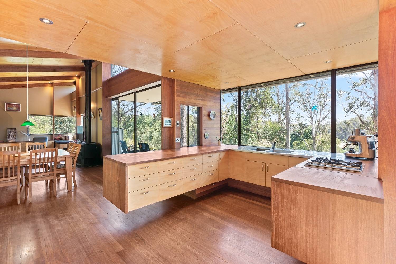 Shielded from the outside world, occupying a broad sweep on the sandy shores and the unhurried waters of the iconic Kiah Estuary slowly winding its way to the entrance and world famous waters of Twofold Bay. ‘Naarilla’ on the river comprises 200 acres of solitude with a mixture of alluvial river flats (30 acres, 6 paddocks) gently rising hill country, diverse habitat wetland inc small freshwater creek the remainder  native bush land  with 100 acres preserved as a bio-conservation area. Architecturally designed to integrate seamlessly into and sit lightly in the magnificence of its surrounds, the North facing residence features gorgeous hardwood floors and majestic raked ceilings with open living & dining areas (s/c heating for winter months), flanked by sliding glass stacking doors on both sides flowing out to patios perfectly integrating both indoor & outdoor living. Bespoke timber and stainless steel kitchen (2 walk in pantries), study/office area, generous bedroom, ensuite/2 way bathroom (indoor/outdoor shower), country laundry/wet room then the breezeway linking the second pavilion which is fully self-contained comprising living, kitchenette, bathroom and bedroom. The house surrounds include double carport, enclosed vegie gardens, fruit trees etc.  Other aspects of the amazing property include a substantial barn/machinery shed, stock yards, art studio/utility shed, over 260,000 litres of tank water, gravity fed sprinkler system, 3 dams, mains power & BTG solar system. Additionally a DA approved studio (140m2) with bathroom facilities and adjacent self contained 1 bedroom secondary dwelling. Wander down to the sandy beach for a swim, catch a fish for dinner, jump into the kayak/tinnie and explore the water way or just kick back and enjoy a gift from nature and repair the soul. Naarilla Naturally.