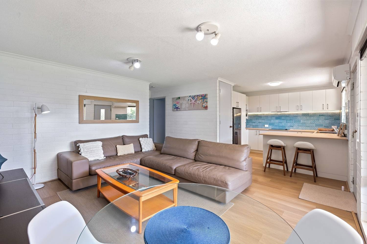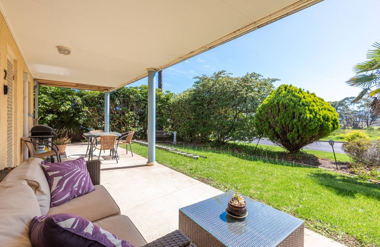 With the gentle murmur of award winning Aslings Beach ever present, fantastic 2 bedroom fully furnished, solid brick ground floor unit located in a small complex just 200m from the water’s edge. Immaculate throughout features include large open living/dining (timber floors & split system) out to a superb covered patio to enjoy the water views, sweet sea breezes and private gardens. Brand new soft close kitchen with Bosch appliances plus breakfast bar & pantry, both bedrooms are generous in size (BIRs br 1), luxurious fully tiled bathroom/laundry, plantation shutters throughout and complete with off street parking. Brilliant holiday let, set and forget permanent rental or just your own residence by the beach. Totally blessed.
