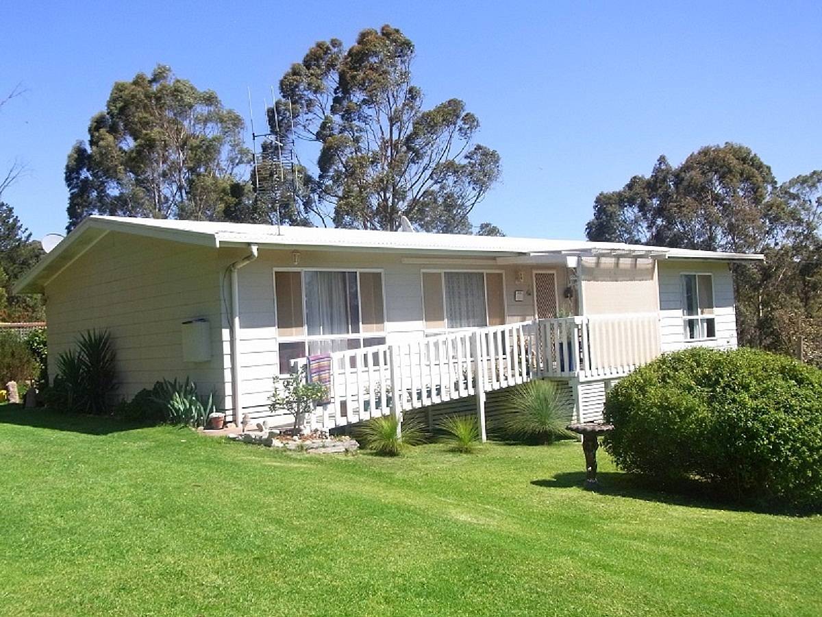 Magic 1 acre (2 separate titles) property with captivating valley and National Park views. Positioned in Towamba Village’s main street only a drop shot from the tennis courts, community hall and sports ground and a few hundred metres from the Primary School. Neat as a pin 3 bedroom home with a glorious sunny aspect. Spacious throughout and comprising large lounge, well appointed kitchen, generous dining out to rear deck/pergola, 3 bedrooms, built-ins, excellent bathroom & separate WC. Fully fenced yard area with a mixed orchard, chook yards, veggie garden, bore, garden shed complete with freestanding double l/u garage. Everything is A1 and ready to roll.