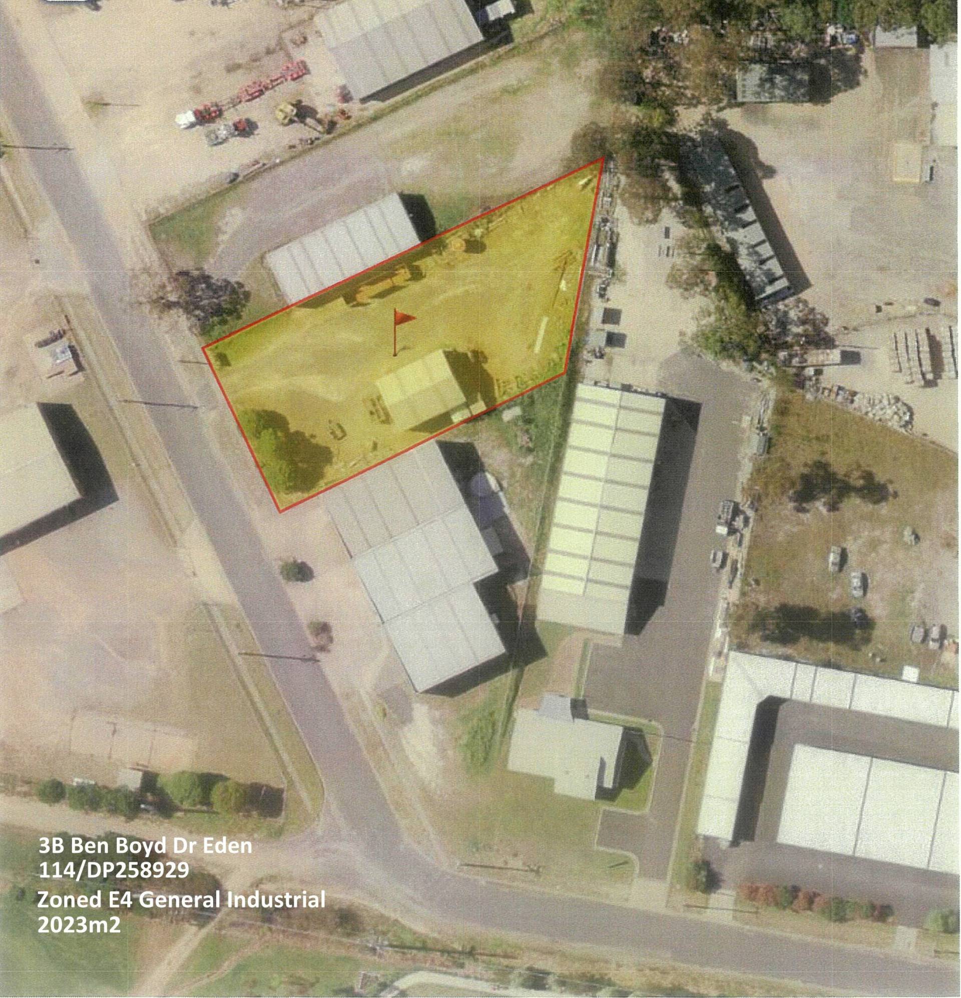 Perfectly located right in the heart of Eden’s industrial precinct, cracking 2023m2 gently sloping allotment with high clearance industrial workshop approximately 110m2 in size. The workshop provides front and rear roller doors (drive through), 3 phase power, wc + vanity, small office area, mezzanine storage room and wash down area. Easy access site, all town services and plenty of room for expansion. Quality rarely available industrial holding perfect for owner occupier or invest with an eye to the future. Contact office for full details and Inspections.