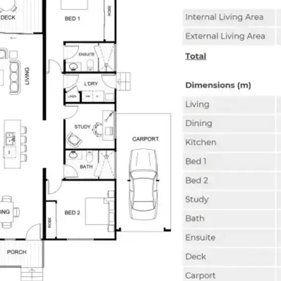 Packed with modern features, the Hawkins is a three-bedroom (or two-bedroom plus study), two-bathroom home perfect for contemporary living. The light-filled open plan design includes a stylish island bench in the kitchen plus a dining area, a separate laundry, and a comfortable family lounge room that leads to a private deck for relaxation or outdoor entertainment. The Hawkins also features a single carport equipped with a motor lift door for added convenience. With its combination of sleek design and practical functionality, the Hawkins is the perfect place to call home.