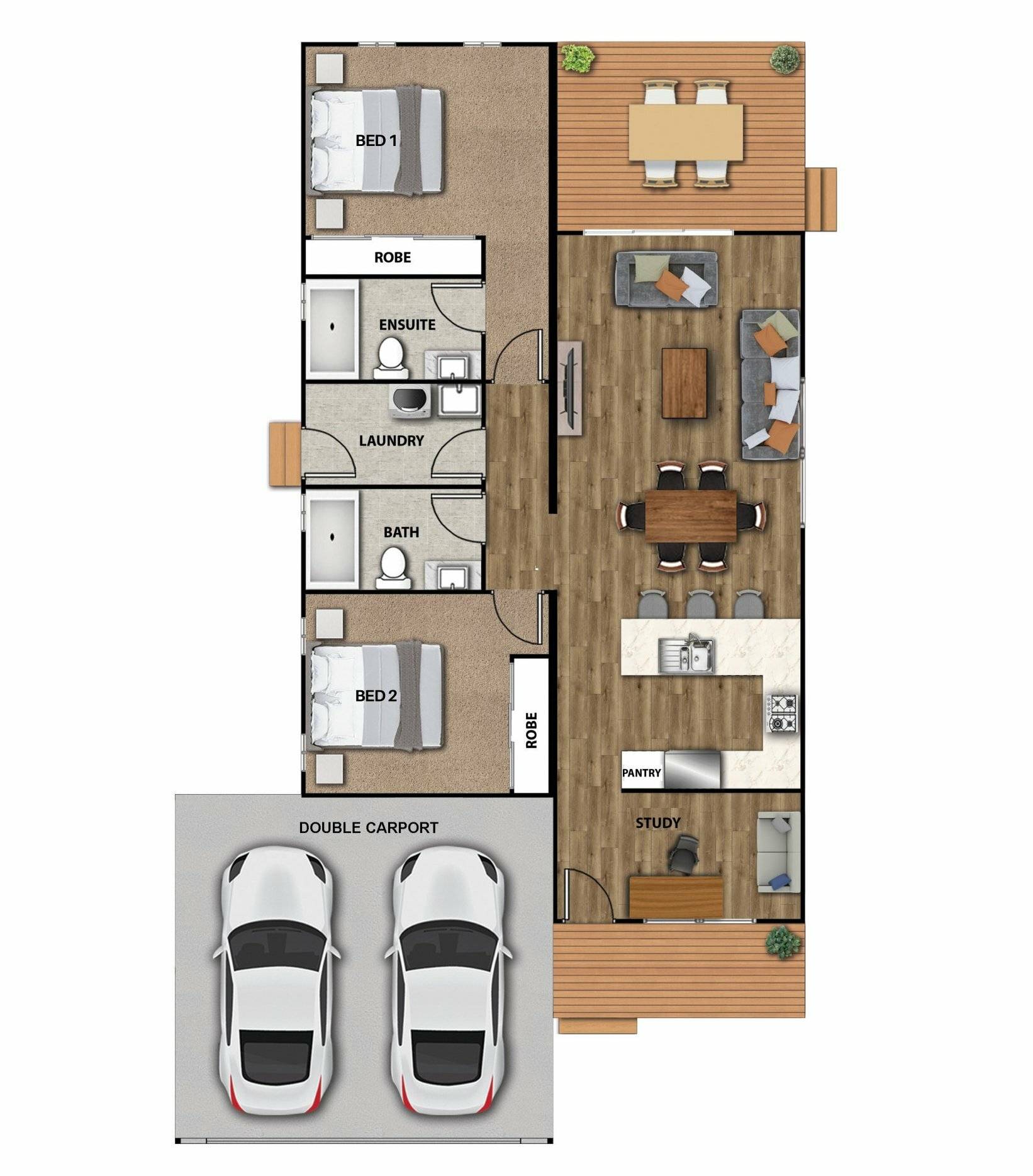 Experience the best of open-plan living with the Munro. The combined lounge and dining space effortlessly leads to a private alfresco area, creating the perfect environment for outdoor entertainment. This home includes two spacious bedrooms, each complete with built-in wardrobes, two bathrooms, including an ensuite to the master bedroom, a study, a separate laundry, and a double carport equipped with a motor lift door for added convenience. The Munro is the ideal home for those seeking a low-maintenance lifestyle without compromising on style or functionality. Live comfortably with the Munro.