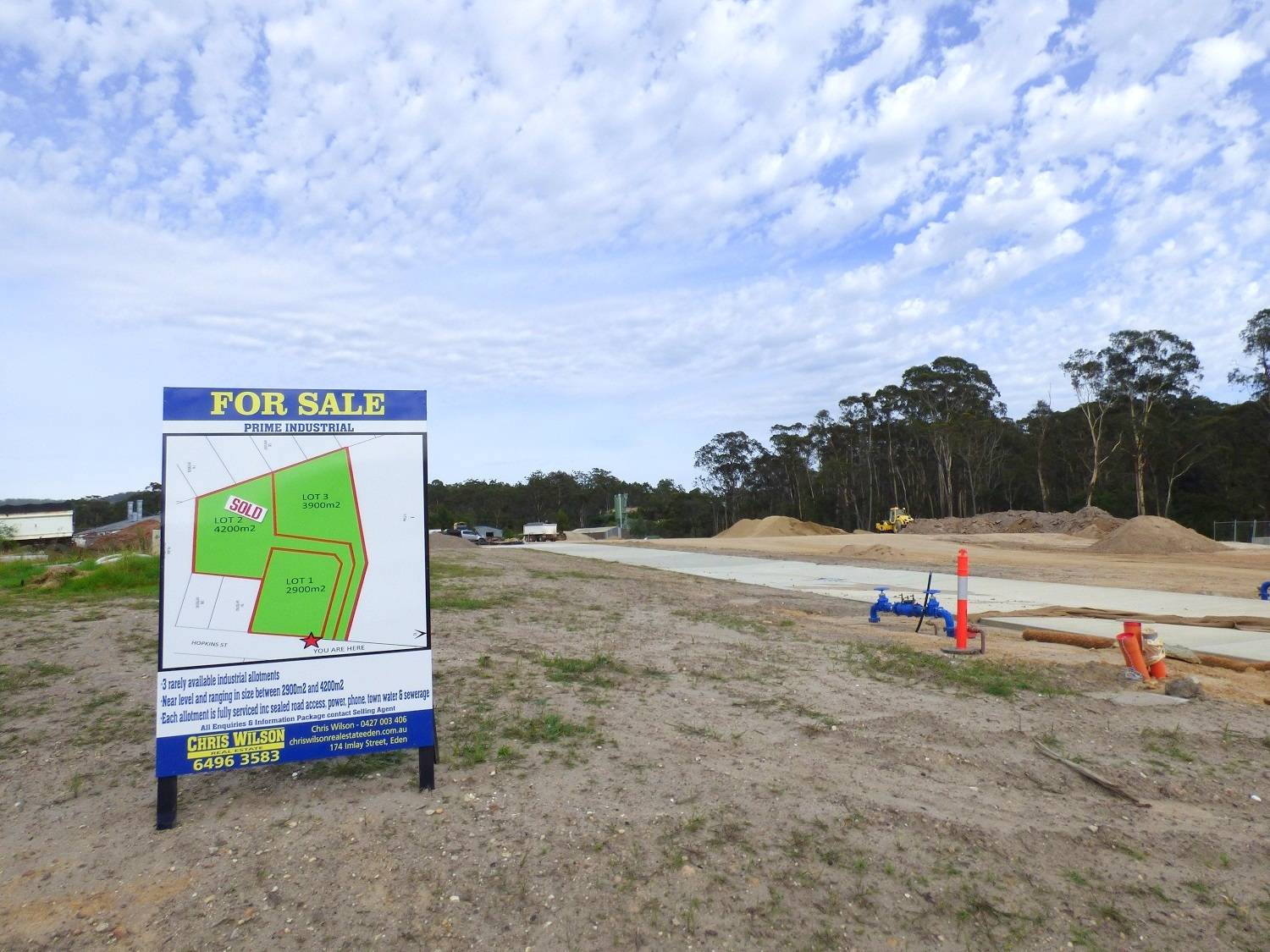 Fantastic new land release comprising 3 rarely available industrial allotments. Near level and ranging in size between 2900m2 and 4400m2, each allotment is fully serviced including easy access concrete drive way access, power, phone, town water + sewerage. Attractive settlement terms with completion due by May/June 25.  Full Particulars including subdivision plan, copy of Contract and inspections contact selling agent Chris Wilson Real Estate.