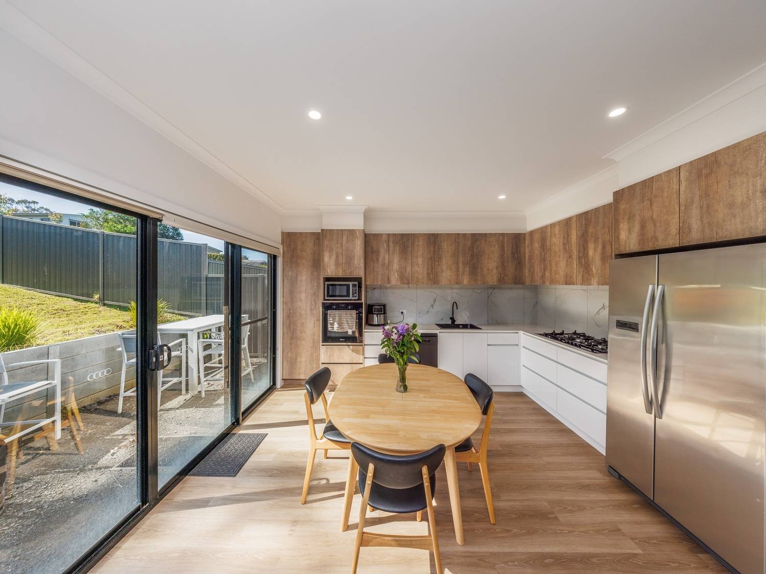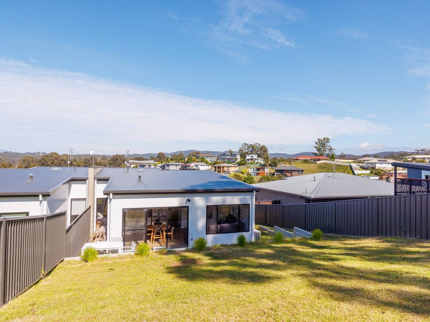 Hassle free contemporary living at its best with this near new 3 bedroom residence, one of a pair located in the ever desirable Eden Cove Estate which adjoins Lake Curalo estuary foreshore and it’s walking/cycle track (300m) winding round to the crystal clear waters of Aslings Beach and the splendor of Beowa National Park. The practical split level design features 9ft ceilings throughout, living + dining (split system) with a striking soft close kitchen taking centre stage, the whole living zone transitions out to a great court yard space and a large fully fenced rear yard. A master bedroom that includes walk in robe plus ensuite (fully tiled) both bedrooms 2 & 3 with BIR’s, beaut study/computer nook, fully tiled main bathroom (shower, vanity, bath) plus separate wc and internal access garage. Leafy lake and bay views complete this totally affordable turn key home. Easy does it. Book an inspection today.