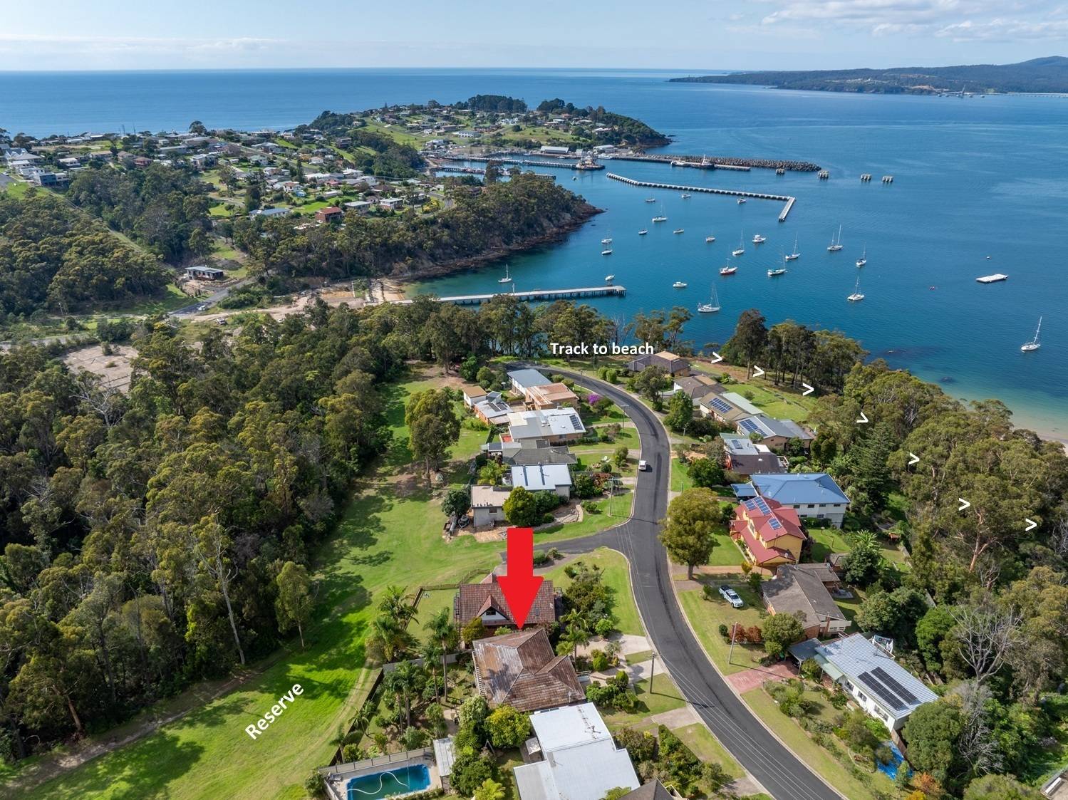 Great beachside locality, substantial large roomed home with Crown reserve to the rear, bay views all the way to Boyds Tower and at the end of the street (180m) a track down to one of the South Coasts best Cocora Beach – on point? Well how about enormous main living room (split system) adjacent dining room out to a North facing tiled deck to enjoy nature’s leafy splendor at the rear. No space saver kitchen here, large and fully appointed with a must have country walk in pantry/larder. King sized master suite with ensuite & BIRs, whilst brs 2 & 3 are both double (BIRs) and main bathroom comprising bath, shower & vanity plus sep wc. Downstairs is a guest/4th bedroom (BIRs), 3rd bathroom (shower & wc) off laundry and deep l/u garage & adjacent workshop. Just add new floor coverings, a touch of flair/finishing touches and you’ve got a bonafide beachside gem. A star is born.