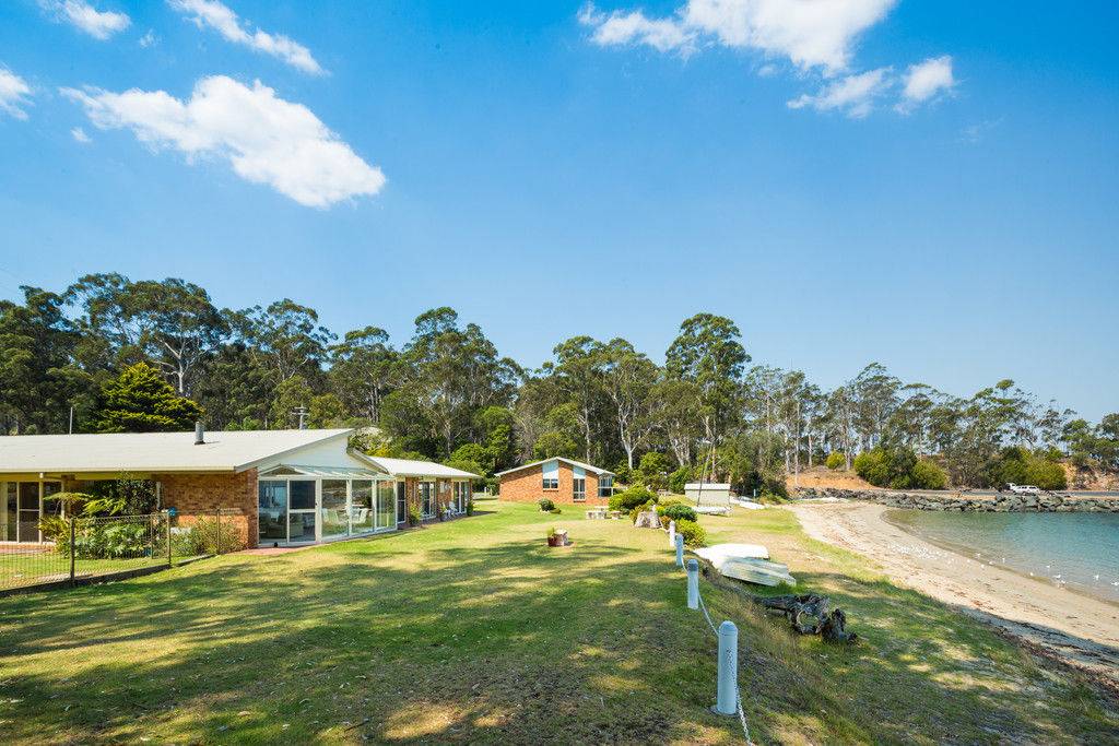 An unbelievably relaxed beachside ambience, positioned 15m from the high water mark and a white sand beach you dream about, spectacular three bedroom plus office home set on 3.5 park like acres with nine, four star self contained holiday cottages ensuring a low key lifestyle with a very comfortable income. Beautifully set up gazebo/BBQ area, boat shed with run about and beach gear, fully equipped workshop (ride on mower, tools etc), town and dam water, five minute drive to all services in the township of Eden. Safe anchorage right out front where yacht and leisure craft bob on their moorings and a world class boat ramp gives year round ocean access. Travel the world and not find better!