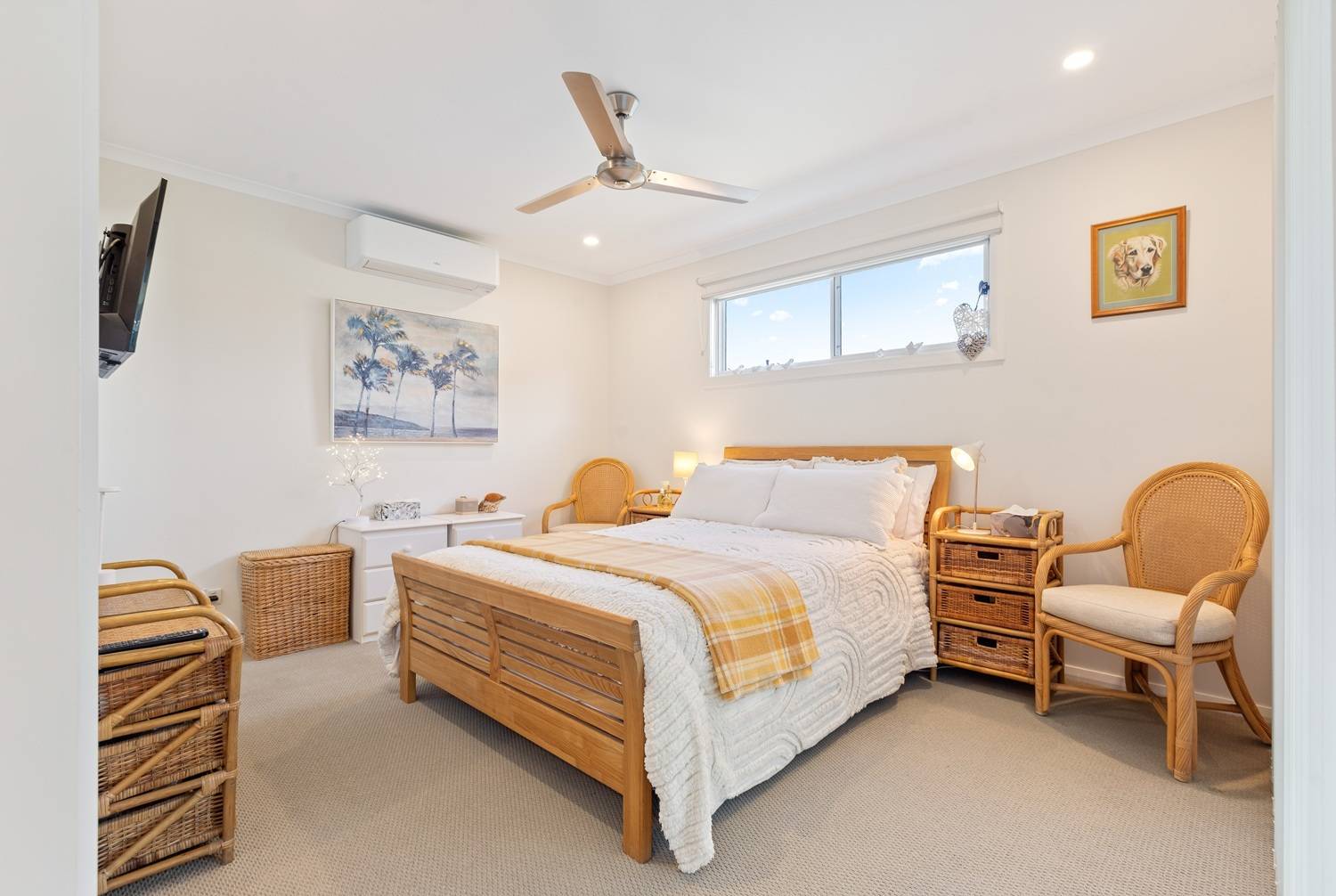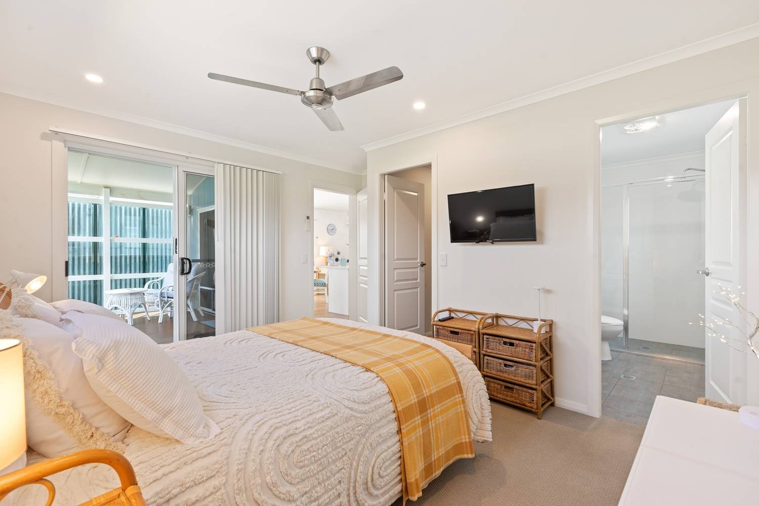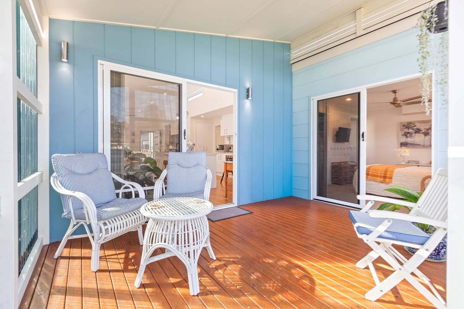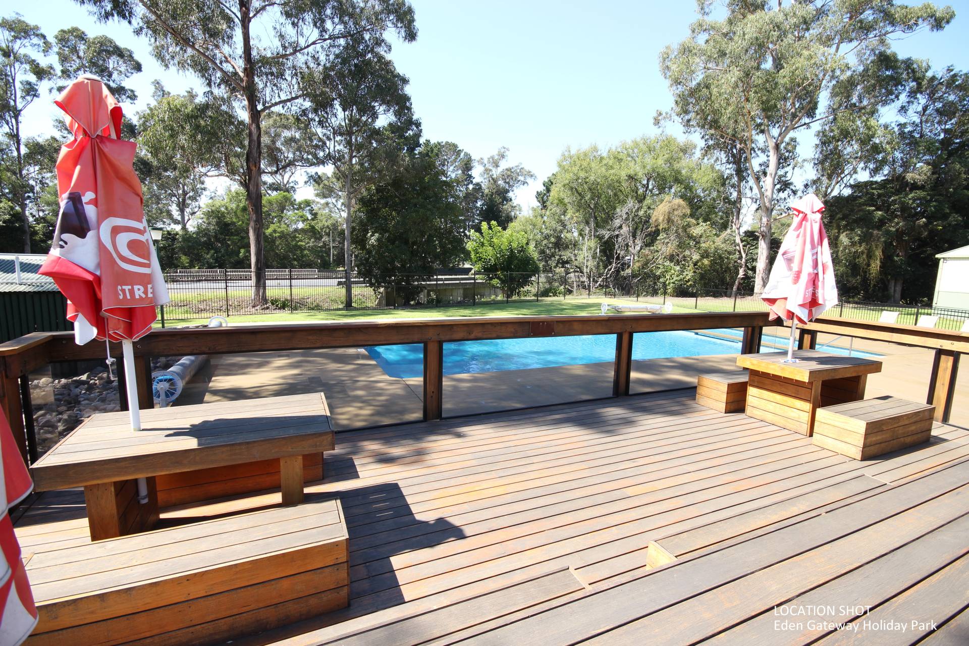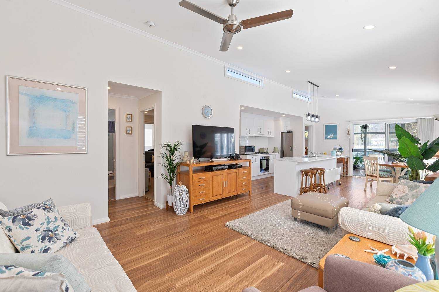 High spec 2 bedroom plus study/3rd br beach house nestled in the sheltered park-like setting of Gateway Holiday Park Eden, situated only 200m from Lake Curalo boardwalk which winds its way around to the white sands of award winning Aslings Beach. Immaculate throughout, the long list of features include huge open plan living & dining (split system & s/c heating) with majestic raked ceilings and clerestory windows for the morning sun, adjoining front verandah and to the rear, an under-roof deck/bbq area, magic fully equipped kitchen with double-door pantry, s/s appliances and large island bench/breakfast bar. Generous bedrooms, master with beaut walk in robe, fully tiled ensuite and rear deck access, mirrored robes (br2), gleaming fully tiled main bathroom and laundry (loads of storage).  Established surrounds which include fully fenced rear yard, garden/storage shed and generous carport suitable for boat/caravan etc. Lifestyle living at its best with site fees at only $162.50 per week. Just kick back, relax & enjoy.