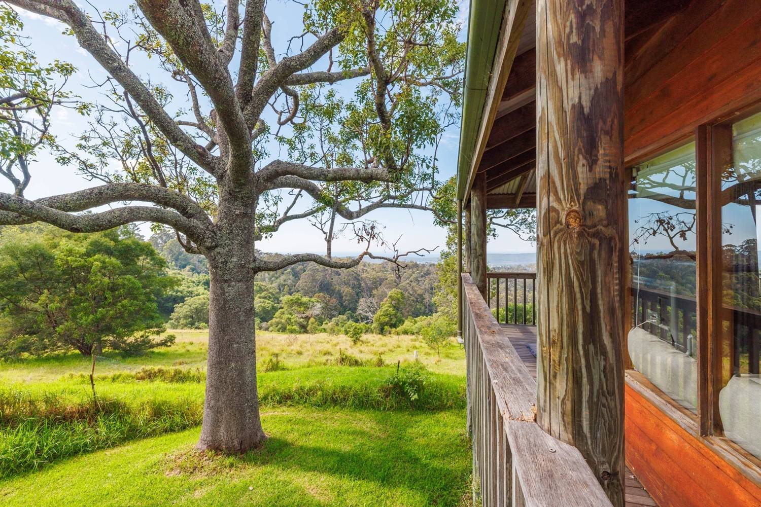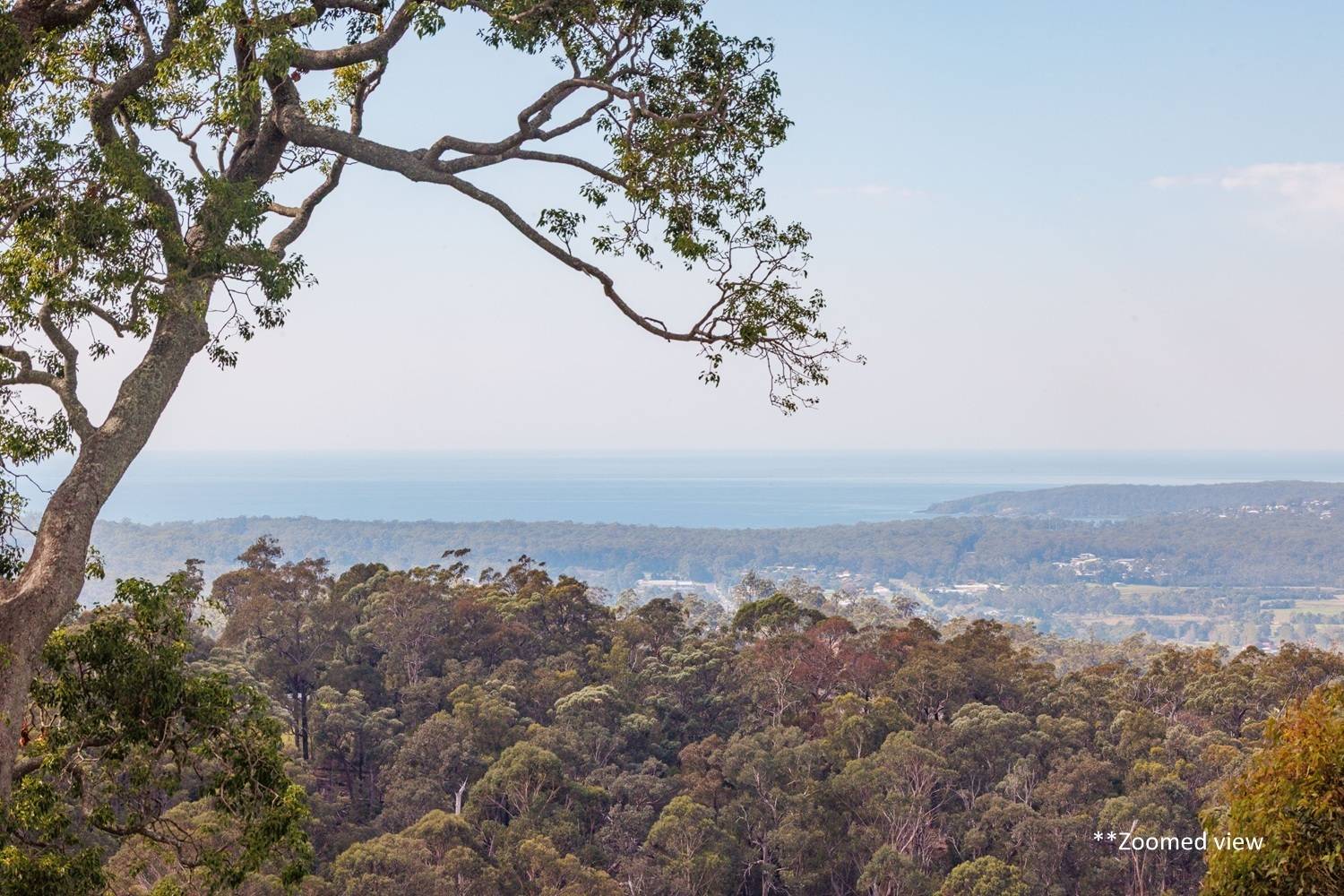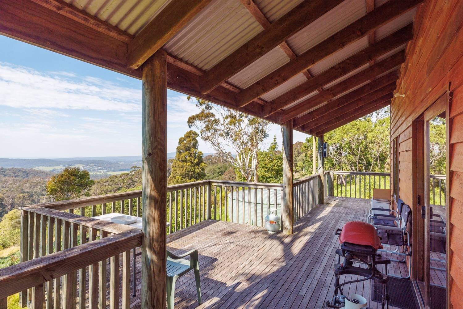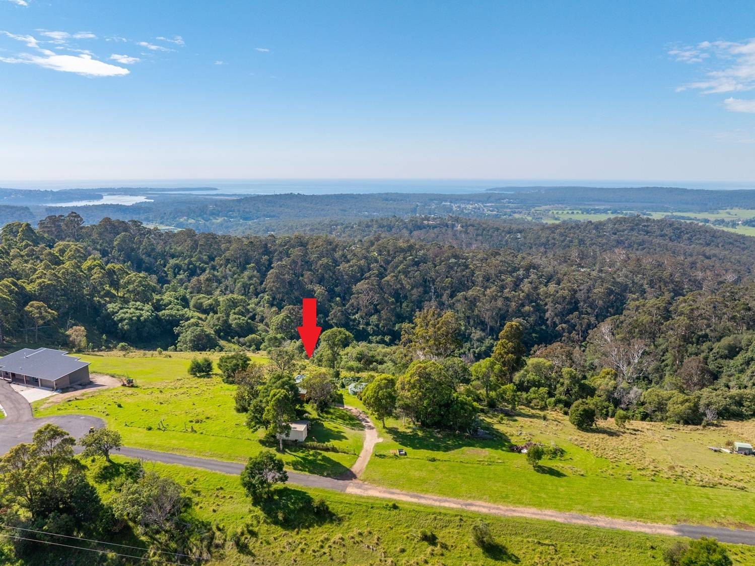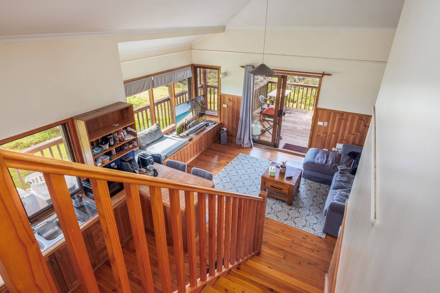 Sublimely positioned at the top of the escarpment majestically surveying the coastal plains below and beyond all the way to the horizon and the vast expanse of the incomparable South Pacific. The bespoke residence is gently nestled on 11 captivating acres incorporating a mixture of cleared (rich basalt soil) and native bush. Featuring gorgeous cypress floors and soaring raked ceilings, the home comprises open living and dining complete with day bed in the North facing bay windows & cosy wood fire out to the wrap around decked verandahs with summer shade from a magnificent Kurrajong Tree. Beaut well equipped hardwood kitchen, practical combined bathroom/laundry plus sep wc, large main bedroom (BIRs) then the best til last, custom timber staircase up to a divine second living/bedroom mezzanine area. Complete with well fenced house paddock, mains power, sealed country lane access and plenty of tank water. Nurture the soul and revitalise the senses away from the hustle and bustle of everyday life, yet just a lazy 5 min(dve) from all the facilities of vibrant Pambula village and extra 3 min to the beach. You’ll be on top of the world.