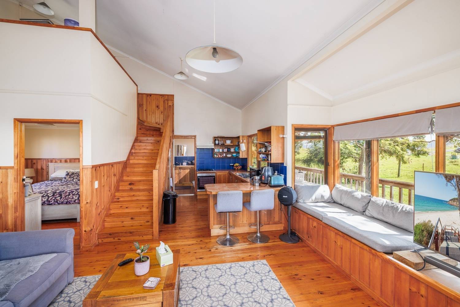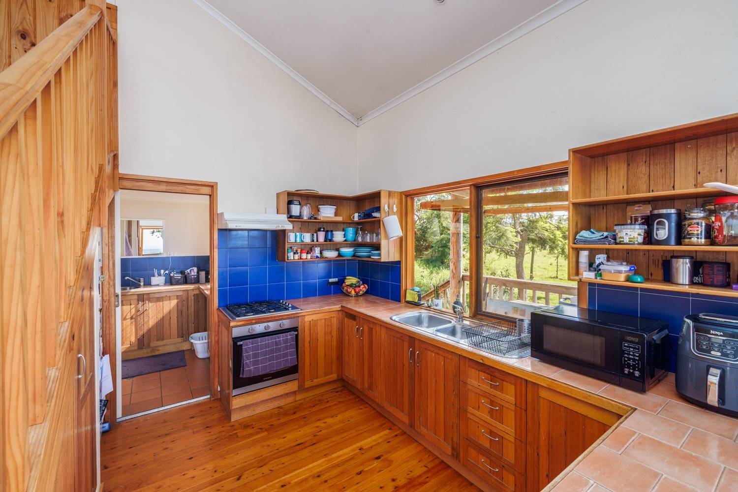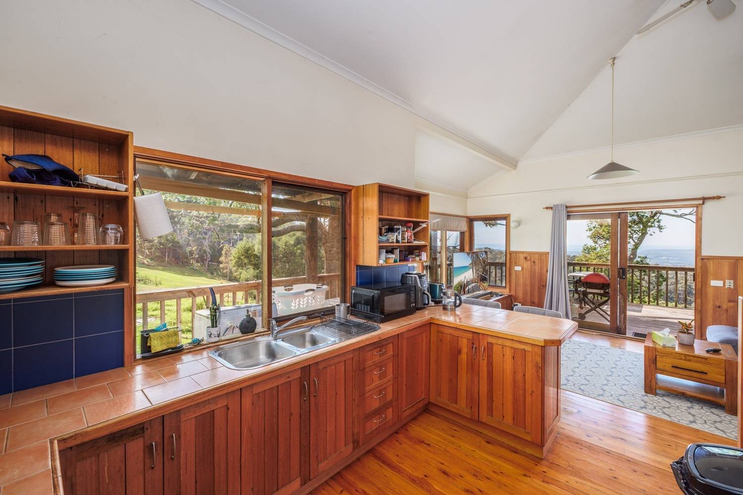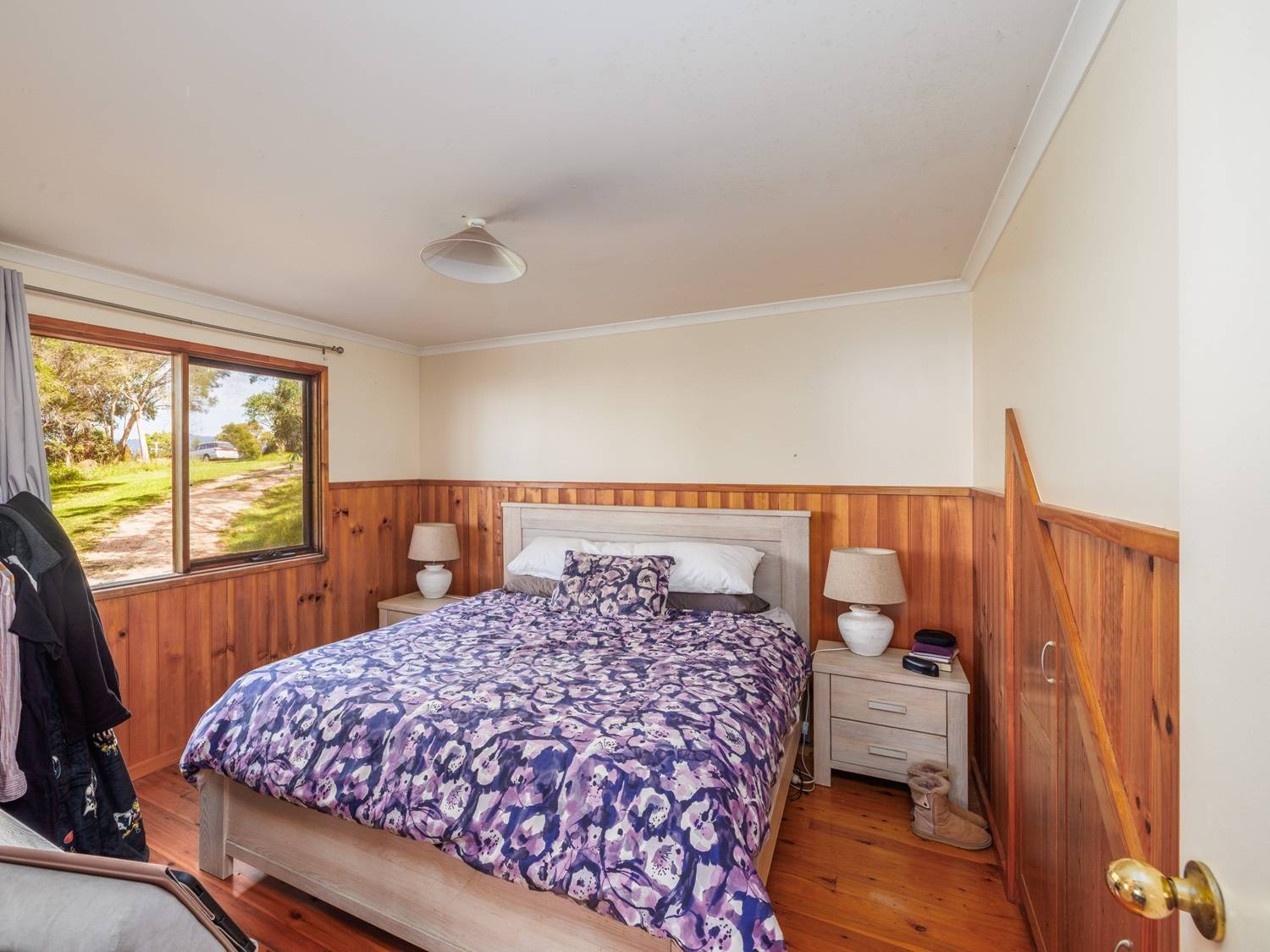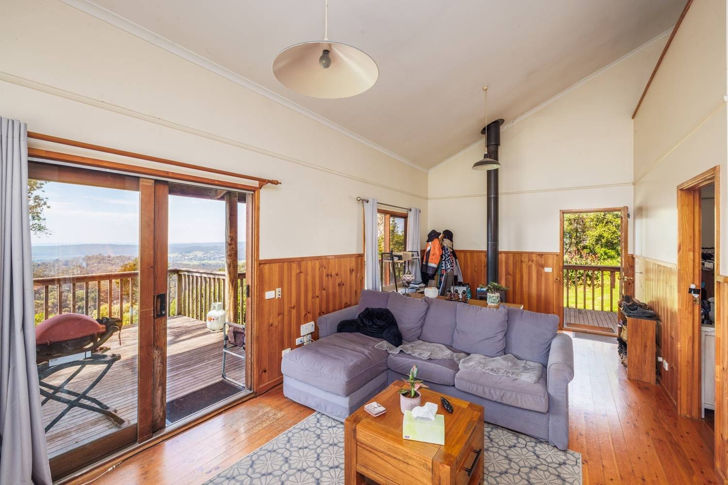 Sublimely positioned at the top of the escarpment majestically surveying the coastal plains below and beyond all the way to the horizon and the vast expanse of the incomparable South Pacific. The bespoke residence is gently nestled on 11 captivating acres incorporating a mixture of cleared (rich basalt soil) and native bush. Featuring gorgeous cypress floors and soaring raked ceilings, the home comprises open living and dining complete with day bed in the North facing bay windows & cosy wood fire out to the wrap around decked verandahs with summer shade from a magnificent Kurrajong Tree. Beaut well equipped hardwood kitchen, practical combined bathroom/laundry plus sep wc, large main bedroom (BIRs) then the best til last, custom timber staircase up to a divine second living/bedroom mezzanine area. Complete with well fenced house paddock, mains power, sealed country lane access and plenty of tank water. Nurture the soul and revitalise the senses away from the hustle and bustle of everyday life, yet just a lazy 5 min(dve) from all the facilities of vibrant Pambula village and extra 3 min to the beach. You’ll be on top of the world.