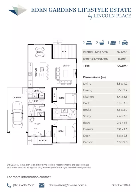The Fraser offers practical, contemporary living with its modern design and generous living space. The spacious kitchen with island opens up to the dining room and comfortable lounge area, providing the perfect space for both entertaining and relaxation. This home includes two bedrooms, the primary with ensuite and each complete with built-in wardrobes, two bathrooms plus a separate WC, and a private study for added convenience. A deck offers a private outdoor entertaining area, and a single carport equipped with a motor lift door provides additional ease when coming and going from the property. Discover the perfect combination of style and function with the Fraser.