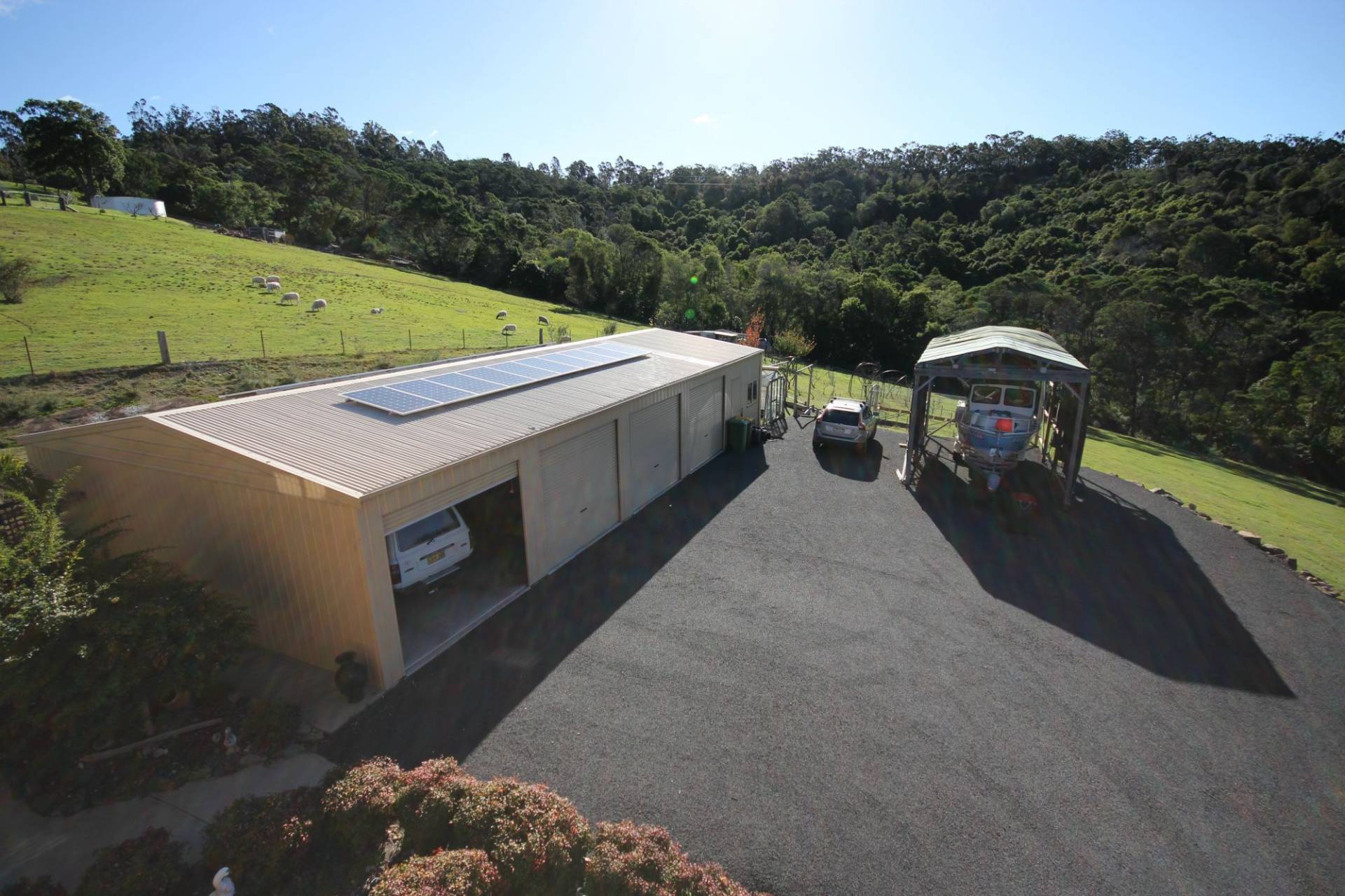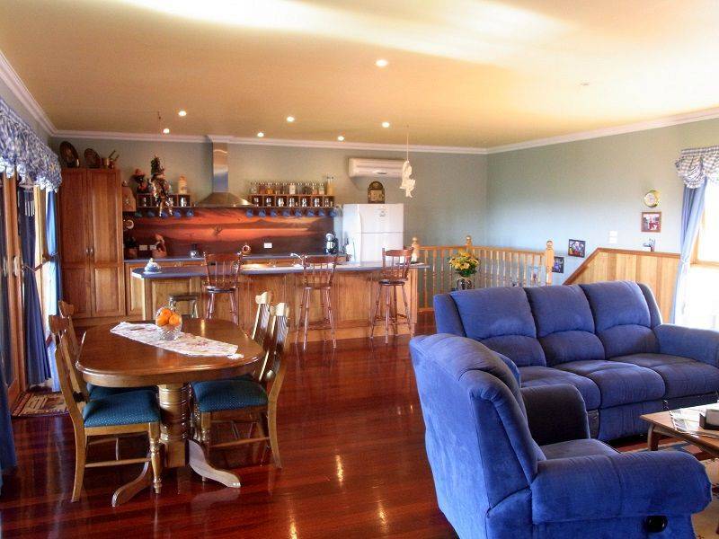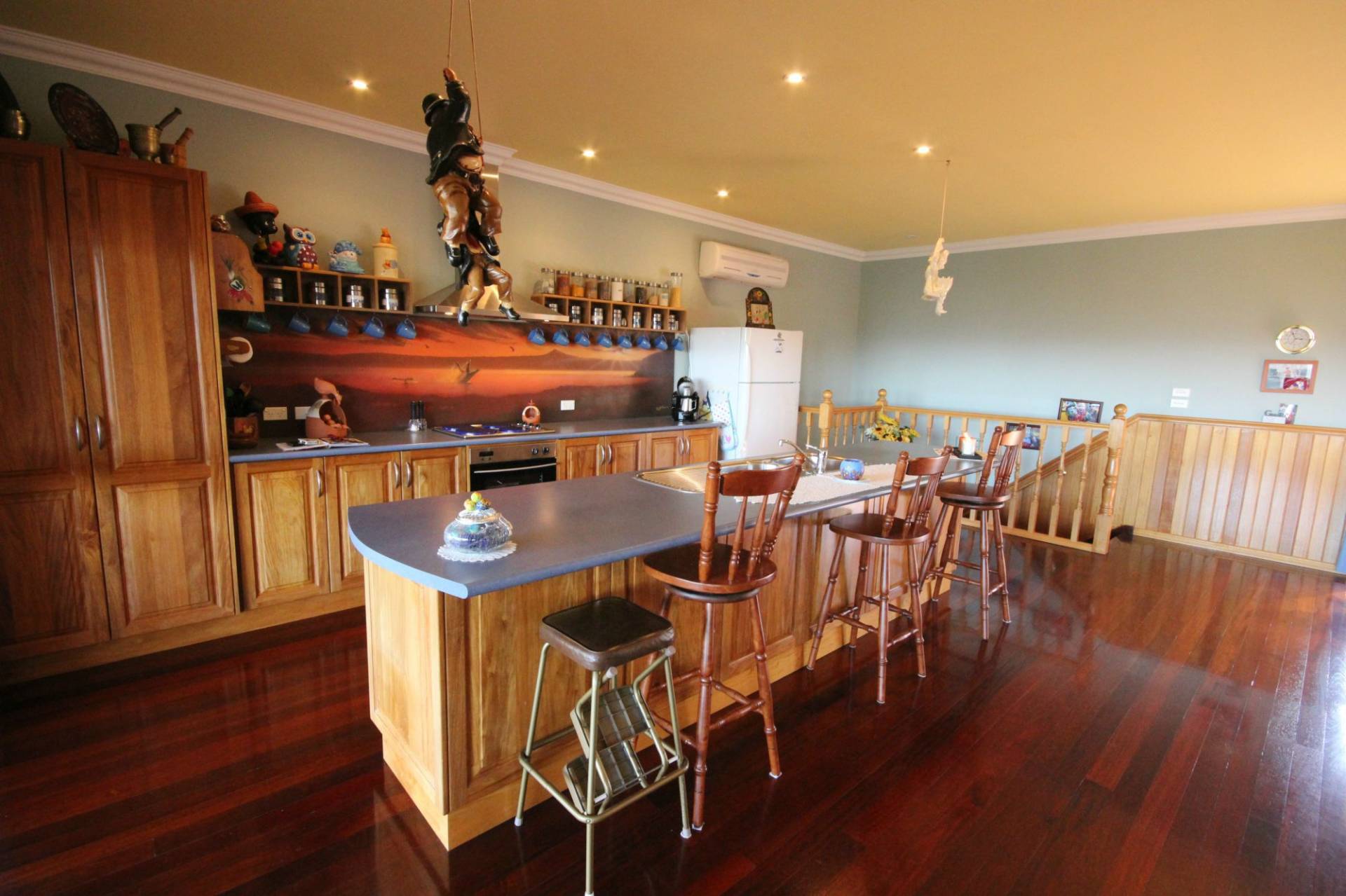 Majestic water and hinterland views of Twofold Bay and Ben Boyd National Park are ever present from this outstanding 4 bedroom home set on over 5 park like acres that is within a 5 min drive from Eden's main street, boat ramp and beach. The quality home features two 360 degree verandahs, extensive use of hardwood timber including polished floors and panel doors throughout, expansive open living out to generous under roof entertainment area. Top notch blackwood kitchen with impressive breakfast bar, master with WIR & ensuite, utility room, main bathroom with claw foot bath, BIRs. The landscaped house gardens includes every man's dream 5 bay workshop/garage (15x9m). Mixed fruit trees, enclosed veggie garden, fantastic 5kw back to grid solar system and circular sealed drive to the front door. Why compromise?