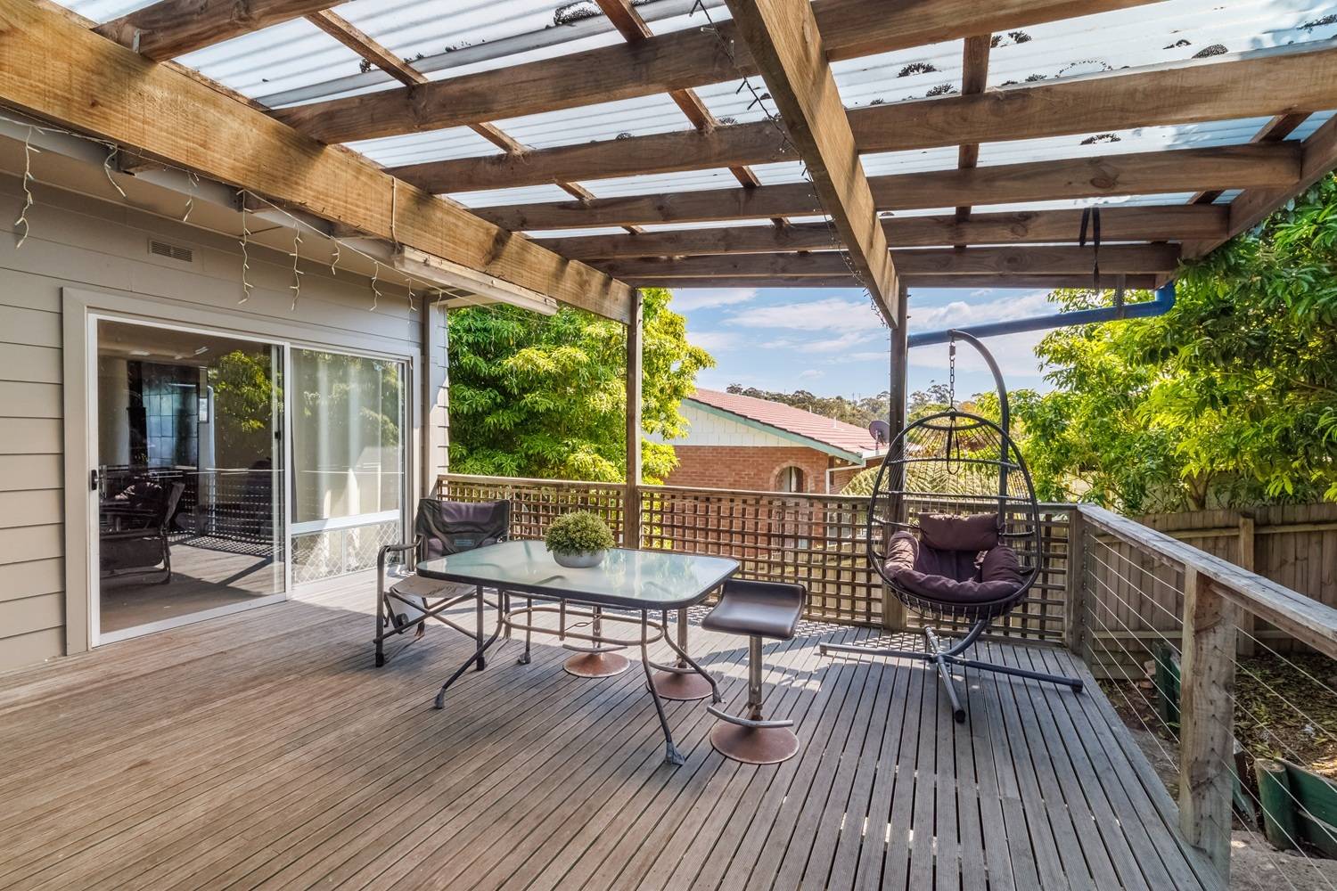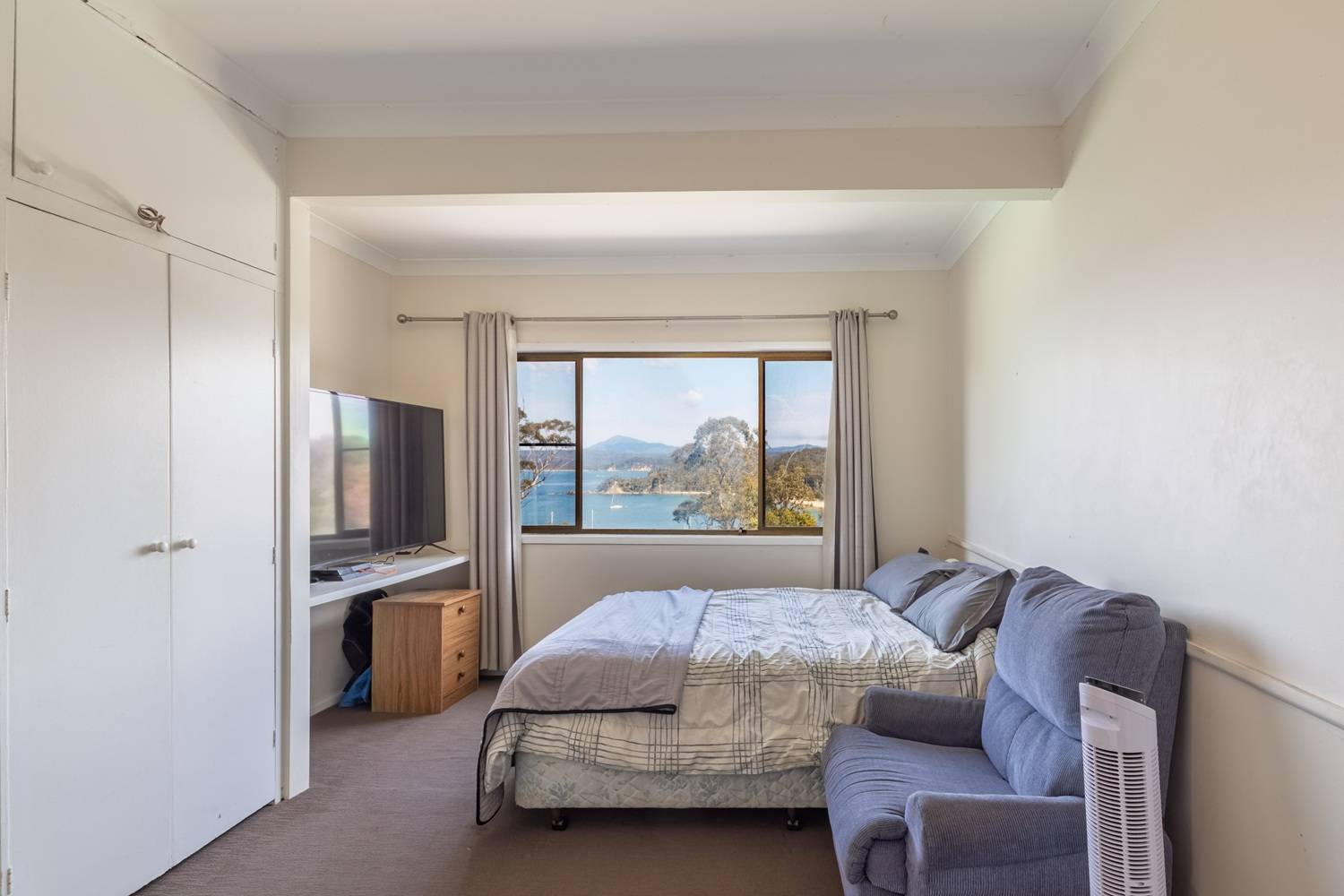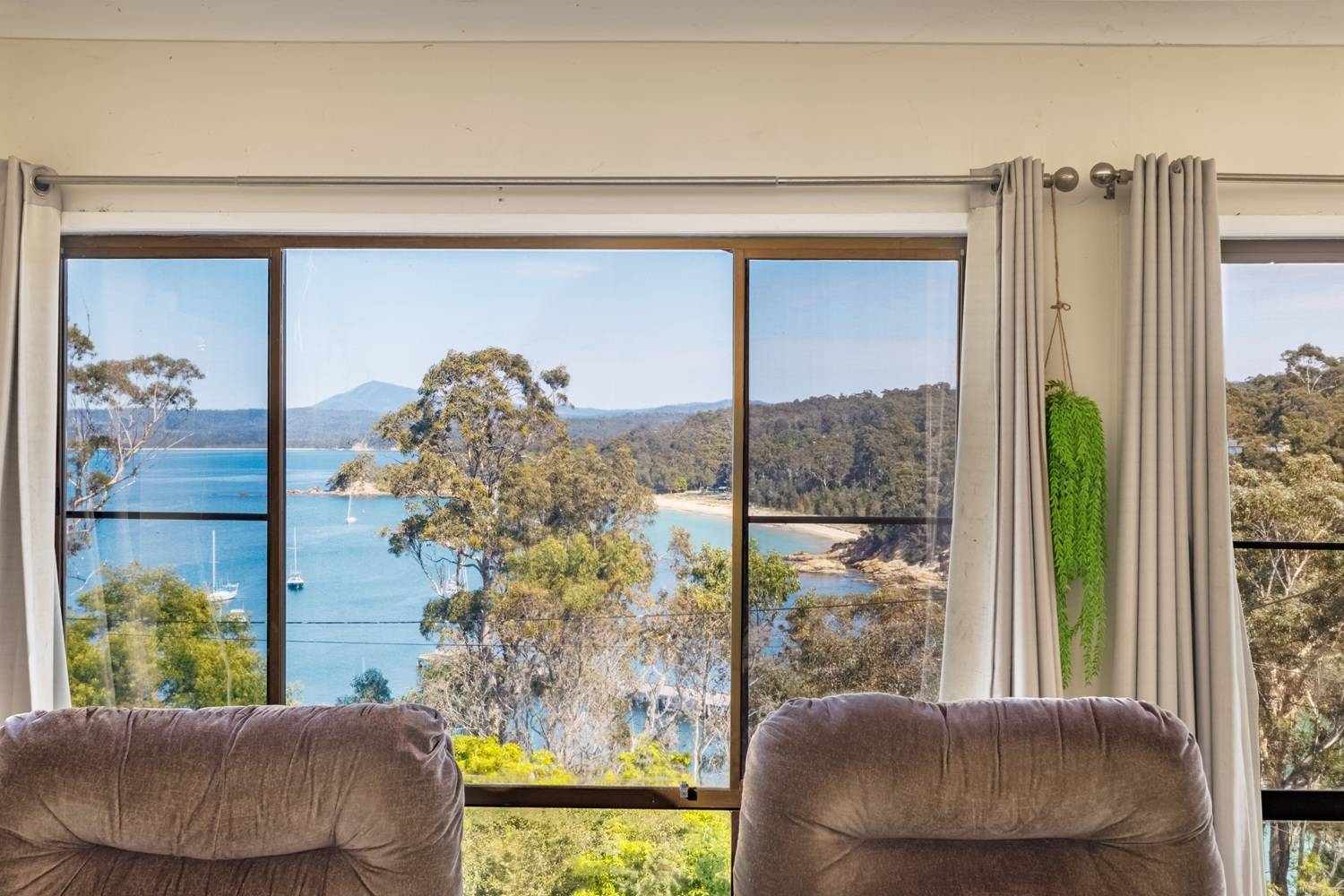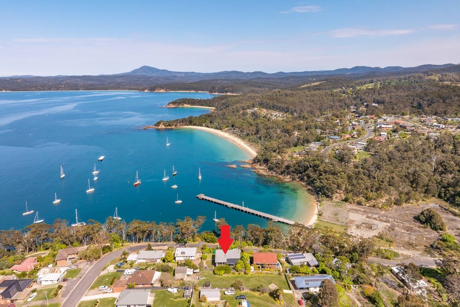 Exquisitely nestled on an elevated 1015m2 allotment in a blue-chip street, classic 4 bedroom plus study 1960’s residence perfectly accented to maximize the amazing bay, beach and hinterland views from all main rooms. Uniquely positioned directly opposite reserve/Twofold Bay with a squeaky white sand beach just a roll down the hill (150m), the home comprises an enormous open living area (cosy wood heater), floor to ceiling windows to just relax and enjoy the mesmerizing views. Large laminex kitchen (breakfast bar + pantry) adjacent dining area transitioning out to a huge covered deck/alfresco living and gentle sea breezes, 3 king sized bedrooms (2 BIR’s), utility/study and lux bathroom including bath, shower, vanity + wc. Then down external stairs to huge 4th bedroom, small adjacent living area, compact kitchen, shower plus separate wc, perfect for guests, teenagers or self contained unit. Complete with under house carport plus utility space, laundry and fully established surrounds. Classic lines, prime front row location, reap the rewards of seaside living. Living on the edge.