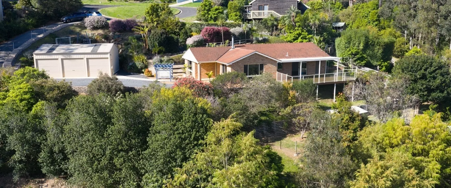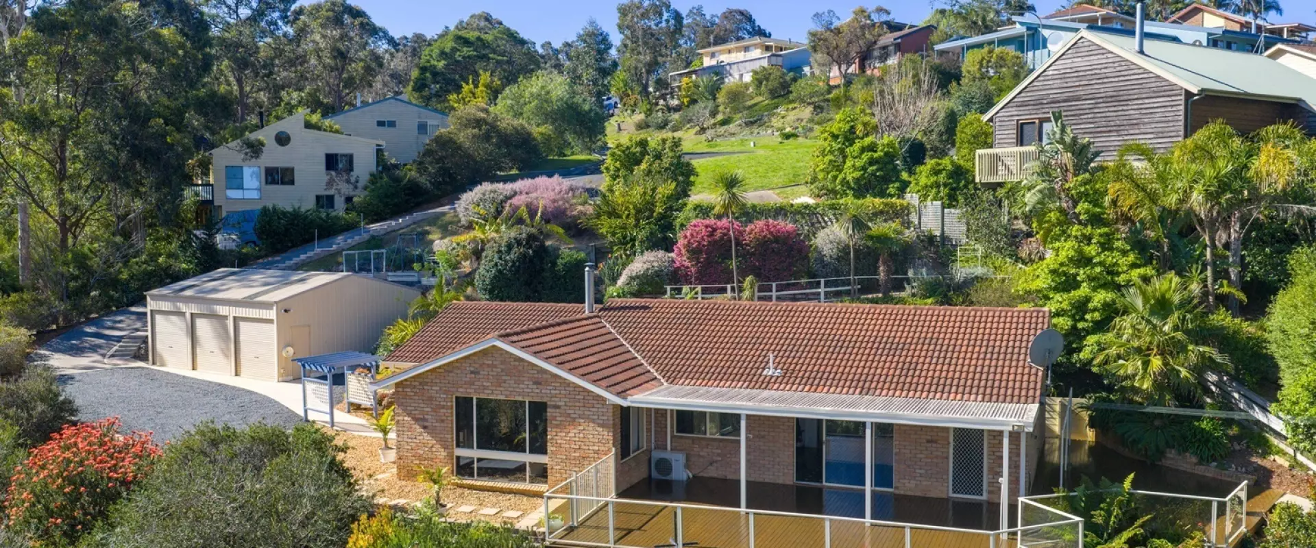 Fantastic fully established single level 4 bedroom b/v & tile roofed residence, uniquely nestled on 2026m2 (2 titles) allotment that adjoins reserve to the rear and is secreted away in a quiet cul de sac in the ever in demand Cocora Beach locality. As if floating on air and featuring a wonderful elevated leafy outlook, the home is in excellent order throughout comprising a generous main living/lounge room complete with cosy wood heater & split system. Well equipped kitchen (breakfast bar) adjoining family and dining (tiled floors) out to a huge partially covered deck indoor/outdoor alfresco living area to enjoy the amazing surrounding amenity. Master bedroom with ensuite and plenty of robe space, BIRS (br 2, 3 & 4), main bathroom (spa/shower, vanity & wc) and generous laundry. The established surrounds include a fantastic 9m x 6m 3 roller door garage/workshop, good sized garden/store shed and plenty off street parking. Wander down (via the rear reserve) to the iridescent waters & soft white sands of iconic Cocora Beach (300m), walk the Bundian Way Coastal Track or just stay at home and enjoy your private sanctuary. Sanctuary awaits!