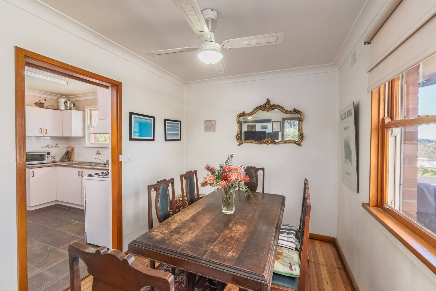 Exquisitely positioned on the high side of one of Eden’s most sought after streets yet sheltered from the outside world behind established native plantings, classic 3 bedroom residence with expansive views across Twofold Bay capturing the entrance to the mighty Towamba River, Eden’s famous harbour, Boyd’s Tower and beyond to the incomparable South Pacific. Featuring gorgeous hardwood floors throughout the home comprises open living and dining areas (cosy wood heater) with french doors out to an expansive front deck to relax and be exhilarated by the views Laminex kitchen with plenty of cupboard space + separate walk in pantry and laundry out to a sundrenched (sail covered) hardwood deck to enjoy the bird life and leafy surrounds. Oversized master bedroom (BIR’s), generous BR’s 2 & 3, additional 2nd living/utility (potential 4th BR) and lux fully tiled bathroom comprising bath, shower, vanity + wc. Complete with L/U garage, small under house workshop (loads of dry storage), BTG solar system and a magical rear garden resplendent with enclosed vegie garden and various citrus trees. Great beachside locality, classic brick veneer + tiled roof home and at the end of the street (200m) the Bundian Way Coastal Trail leading down to one of the South Coast’s finest, Cocora Beach. To be loved by you.