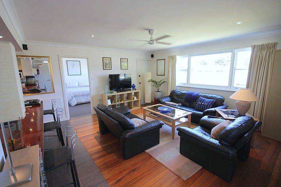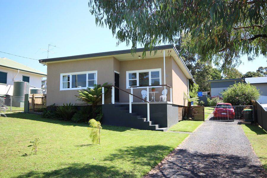 Fantastic, fully renovated 2 bedroom home positioned within one block of Eden's main street and central to most of Eden's amenities and offering water views of Twofold Bay. Tastefully decorated and featuring a gleaming fully appointed kitchen with Iron bark bench tops and breakfast bar, polished hardwood floors through the living area, beaut modern bathroom, built-ins to master and large house length north facing covered deck/alfresco living/ entertainment area with adjacent spare toilet and store/laundry area, easy access yard, impressive established gardens including raised vegie beds etc and handy garden shed/store. TAKE ME I'M YOURS!