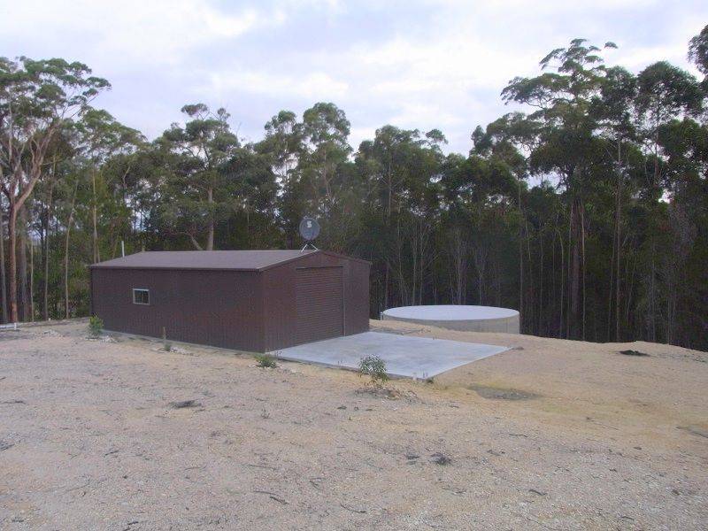 Your own great escape, 20 acre bush block tucked away in Nethercote only a 10 minute drive from Eden or the beach. Beaut two bedroom colorbond weekender with bathroom facilities and extra concrete pad at the front for skillion etc, 20,000 gal concrete tank, septic, power, phone. Great level house site with council approved plans. All set up and ready to play.
