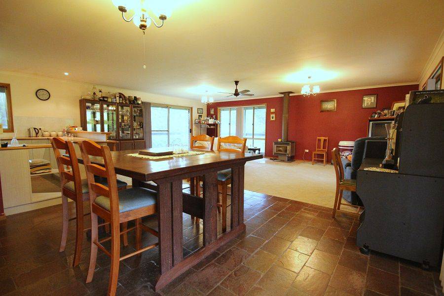 Terrific 40 acre (approx) mostly cleared riverfront property situated a leisurely 5 min drive to the Wyndham general store, pub and school and 30 min from the beach. Sun filled and spacious 3br B/V and colourbond roofed home with large open living out to generous country verandah plus rear under roof paved BBQ area, well equipped kitchen with new appliances, 3 way bathroom, good sized brms with BIRs, double under roof car parking plus unerected 9m x 9m 3 bay double roller door colourbond shed/garage and back to the grid solar system. Very picturesque rolling country divided into 4 paddocks with plenty of shade trees and several good dam sites. The country lifestyle you deserve.