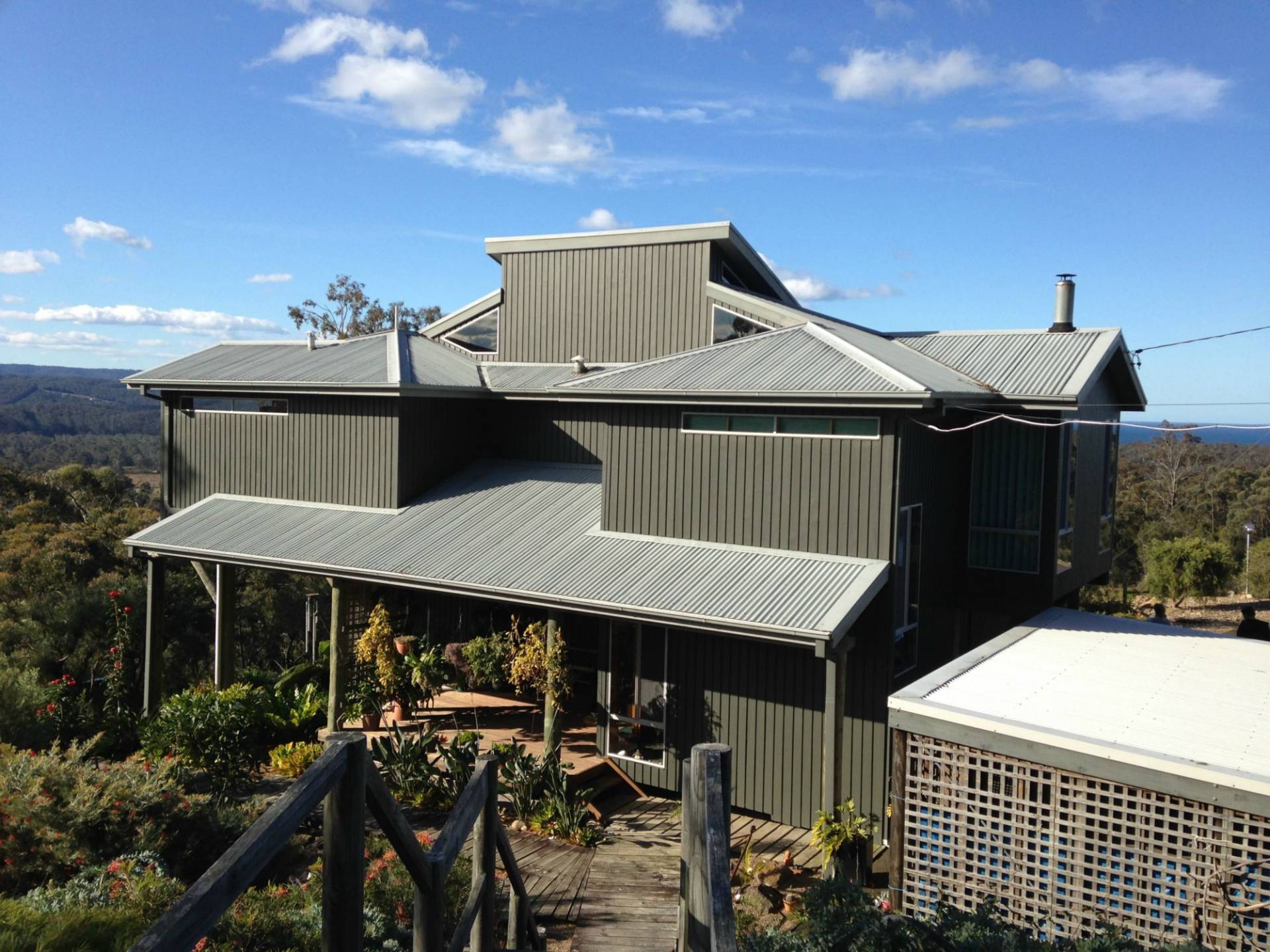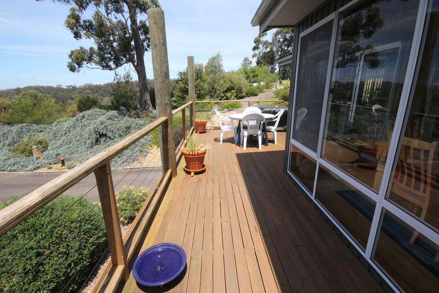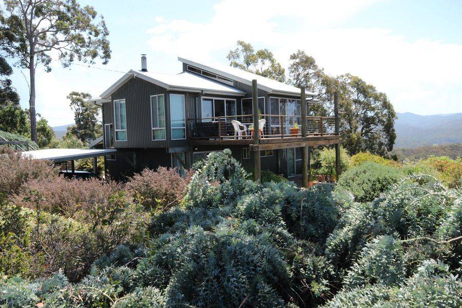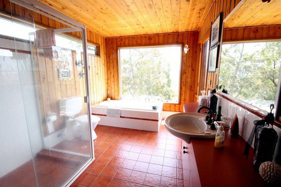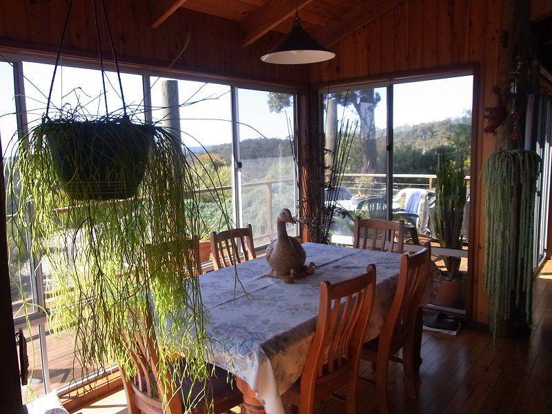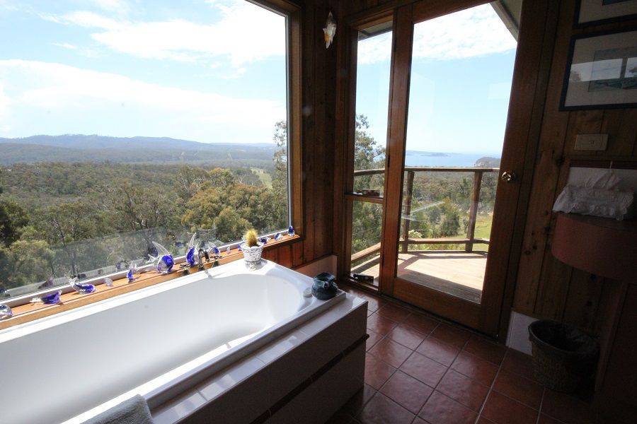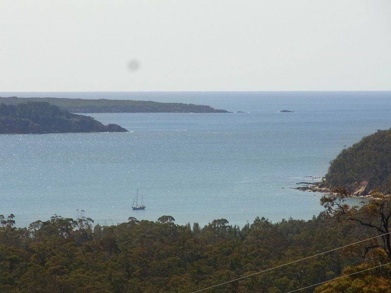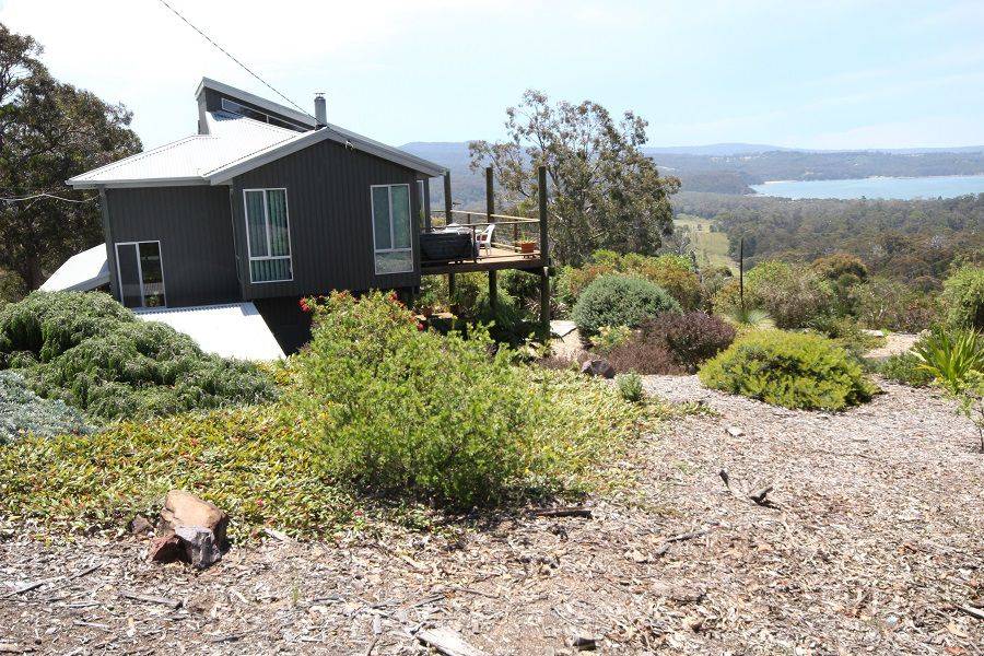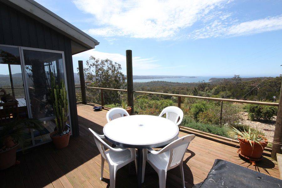 Nestled high above Boydtown Beach with jaw dropping bay, port of Eden, ocean and hinterland views, you'll be mesmerized by the unimpeded 180 degree vistas on offer. Striking and contemporary 3 bedroom North facing home set on 4.6 acres of lightly timbered natives. Extensive use of native timbers (Cyprus Pine) is a feature with views from virtually every room in the house, living, dining, kitchen, master bedroom (ensuite & WIR) all with raked timber ceilings flowing out to great balcony/sundeck area, 2nd & 3rd bedroom with BIR's and adjoining a substantial ground floor second impressive deck, double carport, garage/workshop and impressive fully established low maintenance gardens, even town water is laid on. Pop down to the Seahorse Inn for a quiet drink or bite to eat or just enjoy famous Boydtown Beach (5 mins) with Eden a dozen minutes away. You wouldn’t be dead for quids.