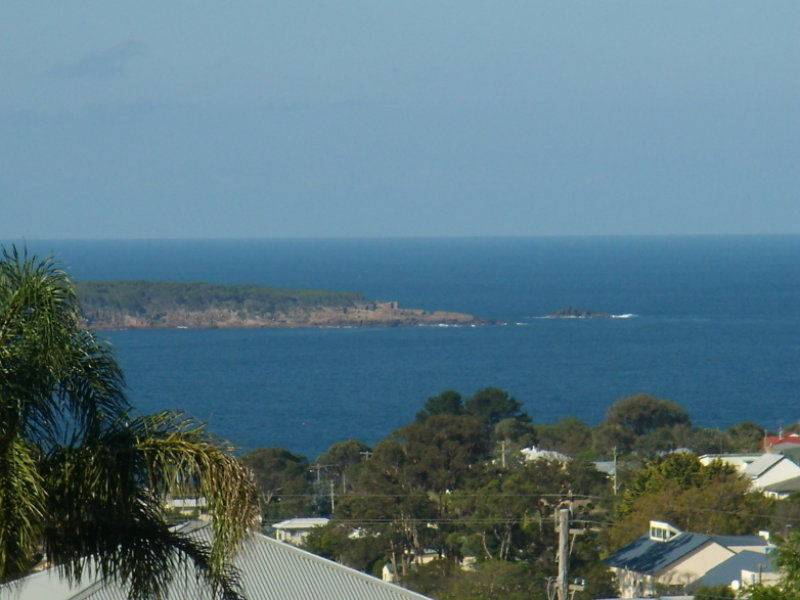 KALEIDOSCOPE OF COLOURS - Fabulous panoramic water views looking out over the township of Eden and beyond to Nth Head and Aslings Beach, Boyds Tower and out across the Pacific. Elevated and level acre (approx.) block with excellent 3 bedroom home featuring, open plan living/dining out to huge deck, modern kitchen and bathroom, upstairs. Downstairs includes second shower & toilet, laundry plus enclosed storeroom and very large workshop area (easily converted to rumpus/guest accommodation) and double carport. Quality Location!