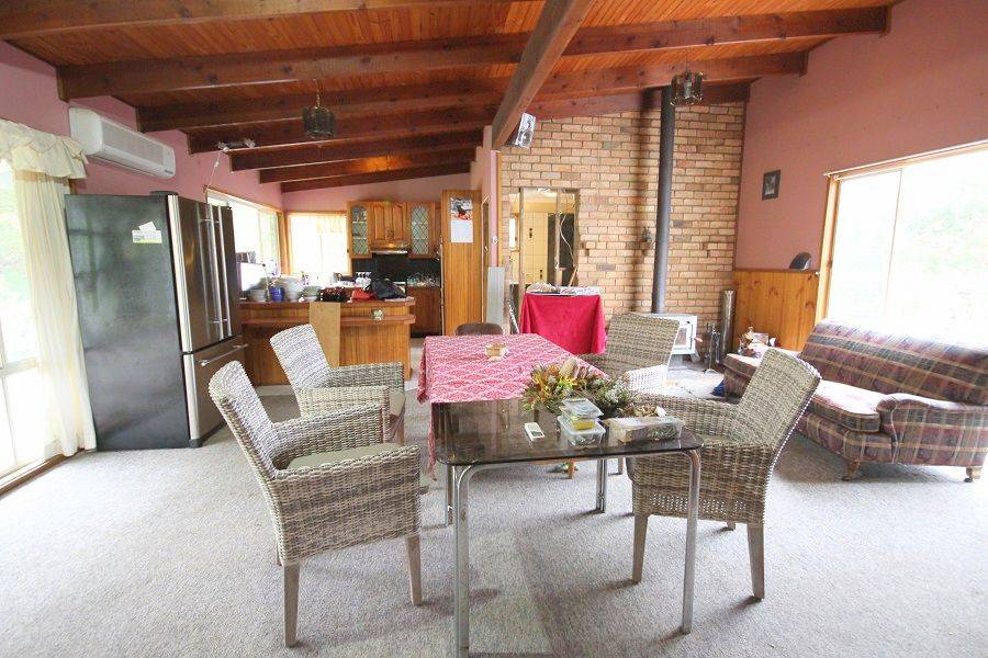 With the inspiring Mt Imlay as a back drop, the Towamba River meandering along the valley floor and adjoining National Park at the rear. Is This The Ultimate Tree Change? All the comforts are layed on in the spacious 3 BR getaway, open living with raked timber ceilings, Blackwood kitchen, modern bathroom, slow combustion fire and reverse cycle air con, huge deck around 3 sides of the house, established gardens, the remaining 14 acres being partly cleared native bush land, complete with 7m X 12m Colorbond Garage with studio and toilet facilities. Be Inspired