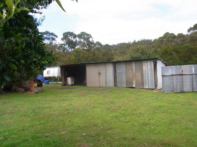 Wicked 22 acre property fronting the Nullica river tucked away and yet only a short drive (5 min) from the beach and boat ramp and 7 min to Eden. Four acres approx. cleared the remainder being eucalypt forest, small 2 roomed cabin with verandah, separate shedding, vegie patch, chook yards, 20 mixed fruit trees, lovely level house site, large dam, 4 paddocks, small river flat, power and phone, adjoining State Forest. From bush to beach.