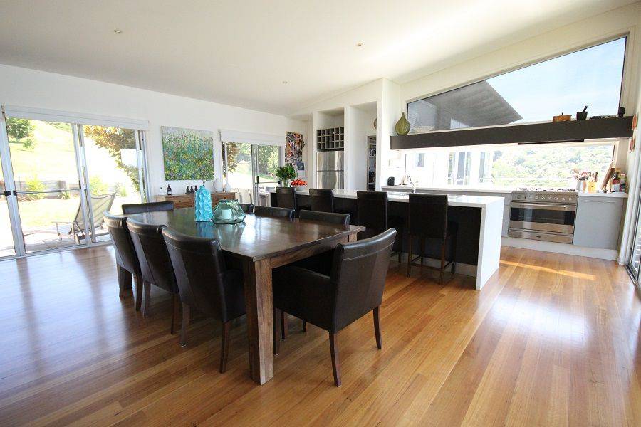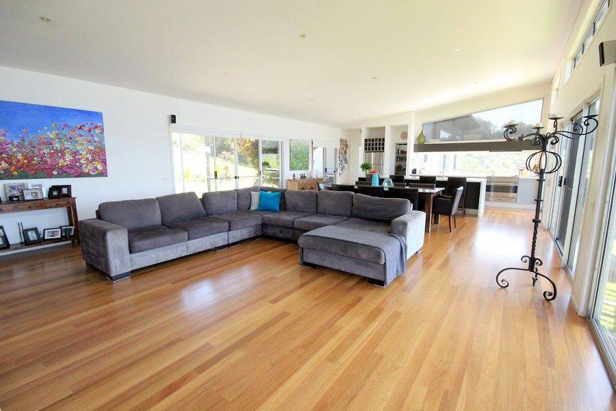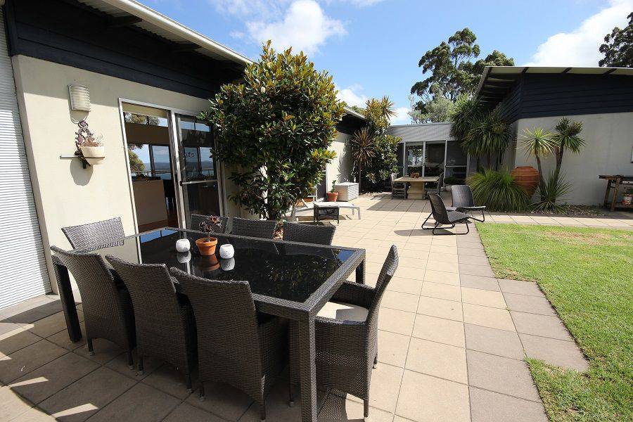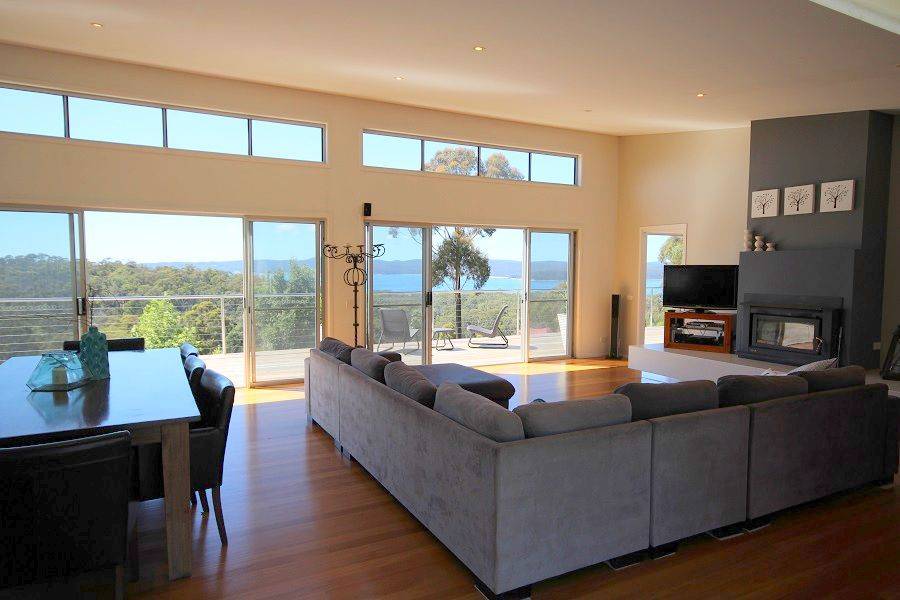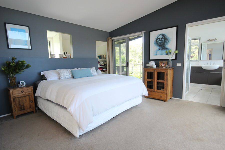 Absolutely stunning contemporary architecturally designed 5 bedroom home offering spectacular uninterrupted water views across Twofold Bay, beautifully sited on 3.7 elevated park like acres situated just 2 min. from Quarantine Bay (beach & boat ramp) & 3km to Eden's GPO. Enormous light filled open plan living/dining/kitchen featuring polished hardwood floors & raked ceilings out to massive house length deck via 3 large glass sliding doors. Modern gourmet kitchen with quality S/S appliances, generous over sized Corian bench tops & large walk in pantry. Spacious master suite out to a private rear retreat area & front deck, generous luxury appointed ensuite and large WIR. Second living adjoins 4 more oversized bedrooms (BIR's), main bathroom with large bath, sep. powder room & a huge laundry with storeroom. Relax in the enormous rear paved courtyard/BBQ area taking advantage of secluded landscaped surrounds. Complete with expansive under house storage area. Benchmark contemporary property with mesmerising views of Twofold Bay.