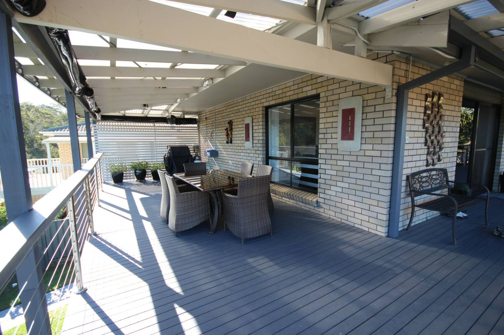 With big, glorious water views across Twofold Bay, immaculate and fully renovated 3 bedroom home, positioned in a no through street in the ever popular Cocora Beach locality. Featuring open living including lounge, gleaming fully appointed kitchen with breakfast bar and dining table, family out to huge deck entertainment area with large covered & cafe blinded section, new bathrooms including en suite to master (WIR), BIR's, internal access to oversized double garage with workshop plus 3rd WC. Set on a fully established, easy access landscaped block, ideal for boat, caravan etc. Just move in and enjoy!