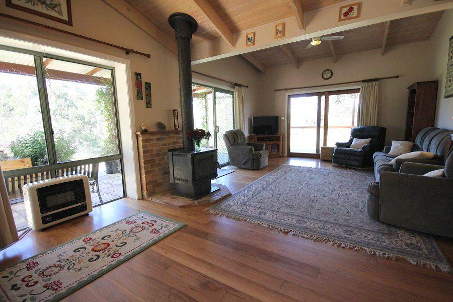 Fantastic opportunity to secure your own tranquil slice (13.5 acres) of magnificent Kiah tidal estuary glory with your own sandy beach and deep swimming & fishing holes. Immaculate 3 bedroom home, spacious throughout & elevated to enjoy the majestic rural outlook featuring open living out to tiled patio/verandah and house length under roof deck, raked ceilings throughout, polished floors, dining, fully appointed country kitchen & walk-in pantry adjoining rear covered patio, ensuite to master, BIRs & spacious main bathroom. Divided into 4 paddocks (alluvial soil), other improvements include 9m x 6m Colorbond garage/workshop, double carport, good fencing, 2 dams, cattle yards (incl. crush & ramp), mixed fruit trees and enclosed vegie garden & only a 3 minute drive to general store & 12 minutes to Eden. Live the Dream.