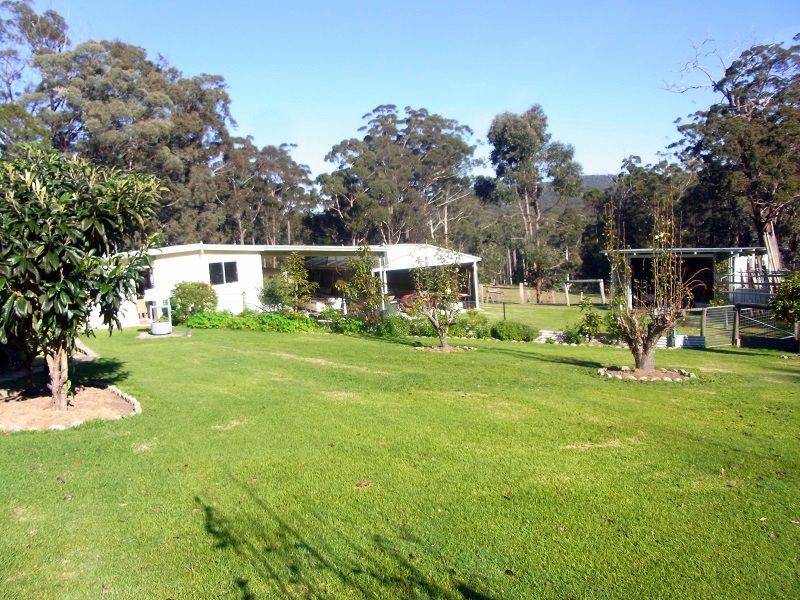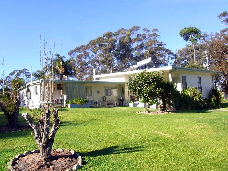 Heavenly 2 acre approx. (7850m2) property tucked away in a private setting with sealed road access, town water and only a 5 minute drive to Edens main street and beach. Spacious 4 bedroom home boasting large master bedroom with WIR and sitting area opening onto patio plus huge ensuite including spa. Large lounge with S/C & reverse cycle air con out to gorgeous verandah, open kitchen/dining, bathroom/laundry. Impressive grounds and gardens with several fenced paddocks, 28 mixed fruit & nut trees, shade house, vegie garden, old stables, chook pen. Complete with L/U garage, generous workshop & 2 double carport areas ideal for boat, caravan etc and general storage. A real little oasis.