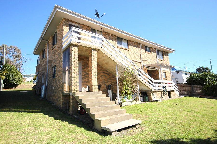 Featuring beaut N/E water views across Twofold Bay and brilliantly located close to Eden's main street (300m) spacious double brick three bedroom home with self contained one bedroom unit. Well presented throughout upstairs comprises three large bedrooms (master with BIR), smart kitchen, formal dining, good sized living out to sunroom and main bathroom. Downstairs includes self contained unit with ensuite, laundry, two utility rooms and L/U garage/workshop. Set on an easy care fully established block. Quality construction, great position and heaps of flexibility.